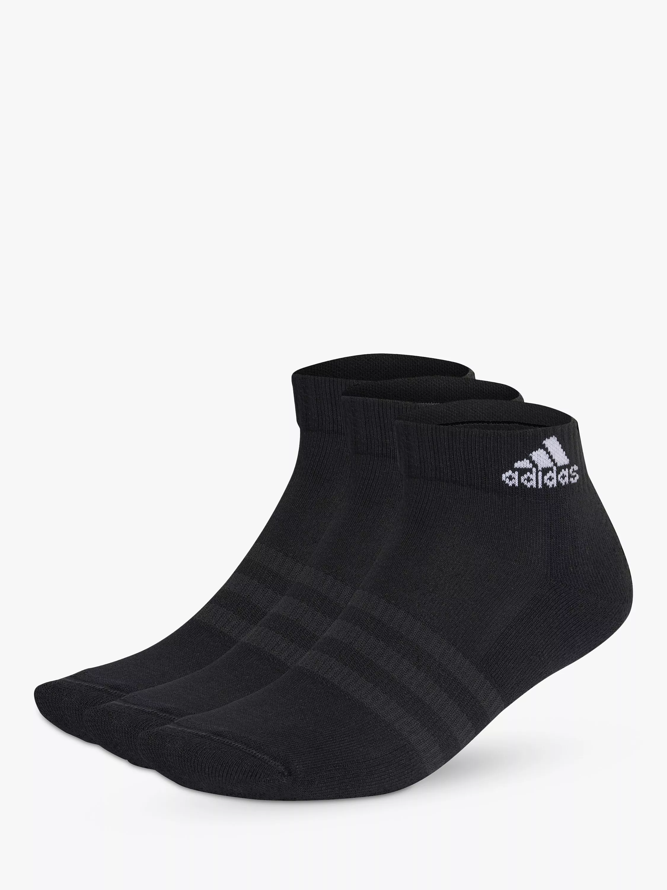 Cushioned for all-day comfort, this trio of ankle socks pampers feet where they need it most. The cotton-rich knit fabric has built-in arch support for a snug fit and clean adidas branding gives them a sporty look.