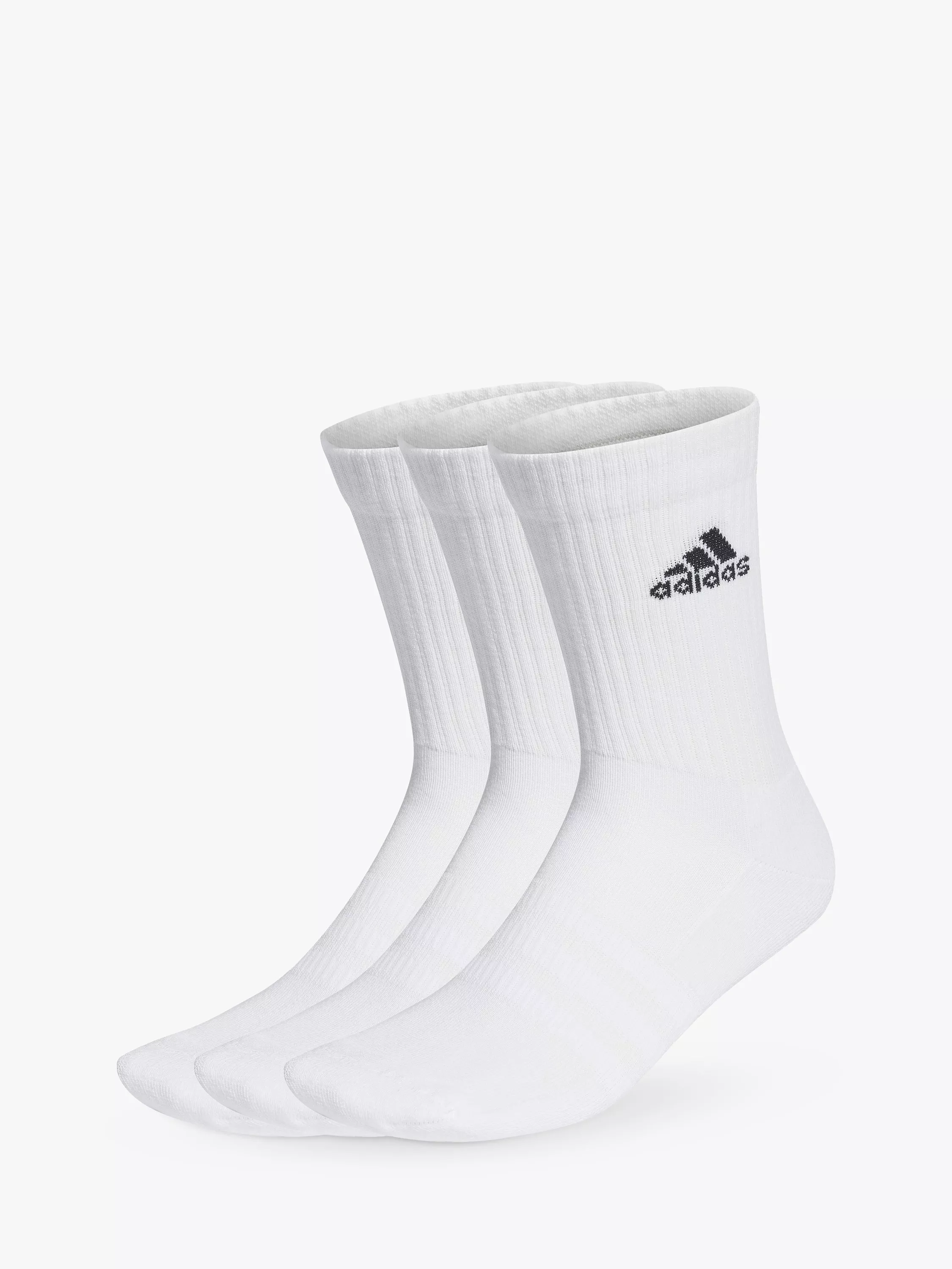 A strong athletic look meets foot-pampering softness. This trio of cotton-rich crew socks offers heel-to-toe cushioning for all-day comfort. Knit-in arch support and a smooth toe seam add to the snug fit and feel. The iconic 3-Stripes deliver instant adidas style.