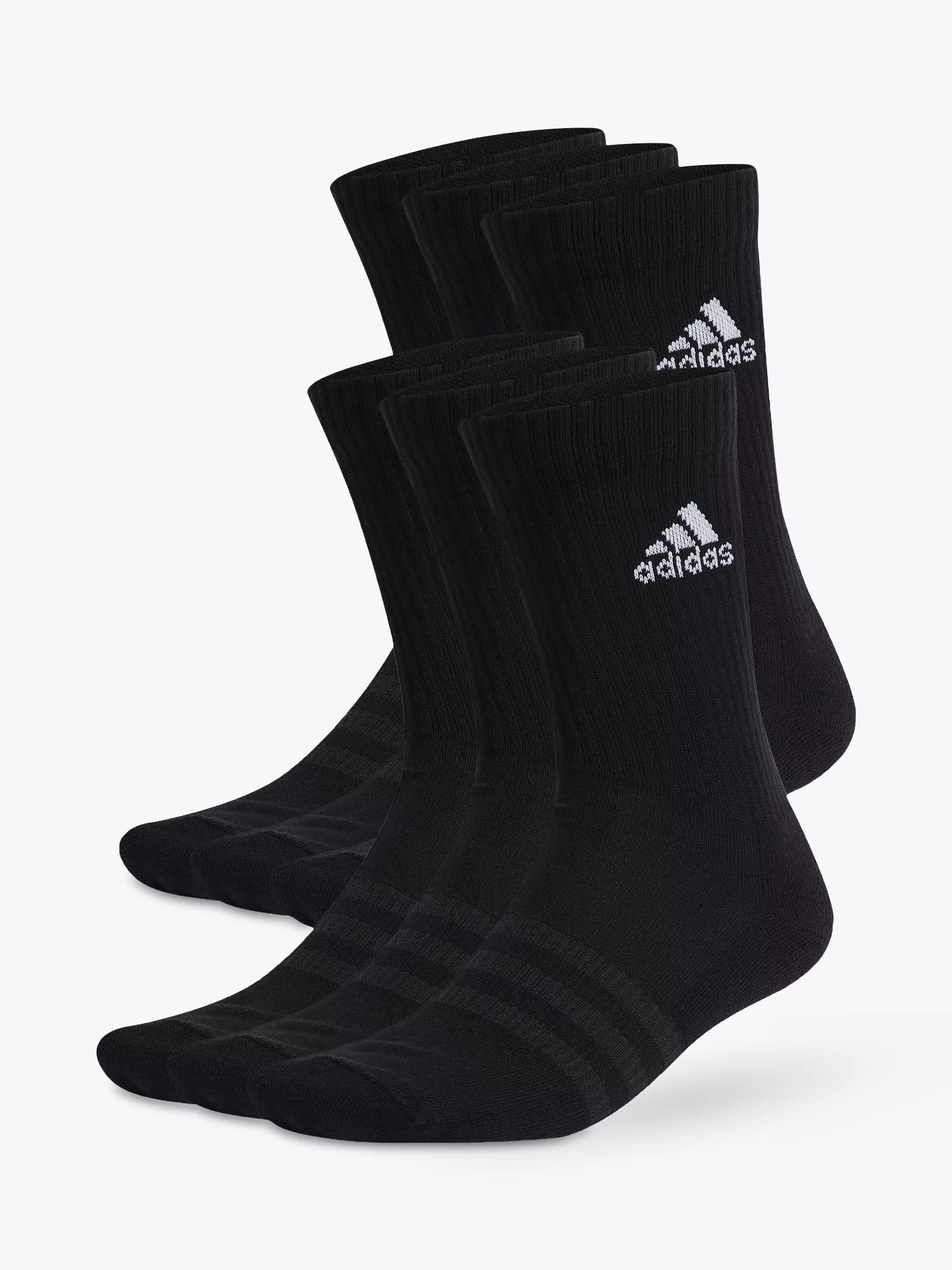 A strong athletic look meets foot-pampering softness. This trio of cotton-rich crew socks offers heel-to-toe cushioning for all-day comfort. Knit-in arch support and a smooth toe seam add to the snug fit and feel. The iconic 3-Stripes deliver instant adidas style.