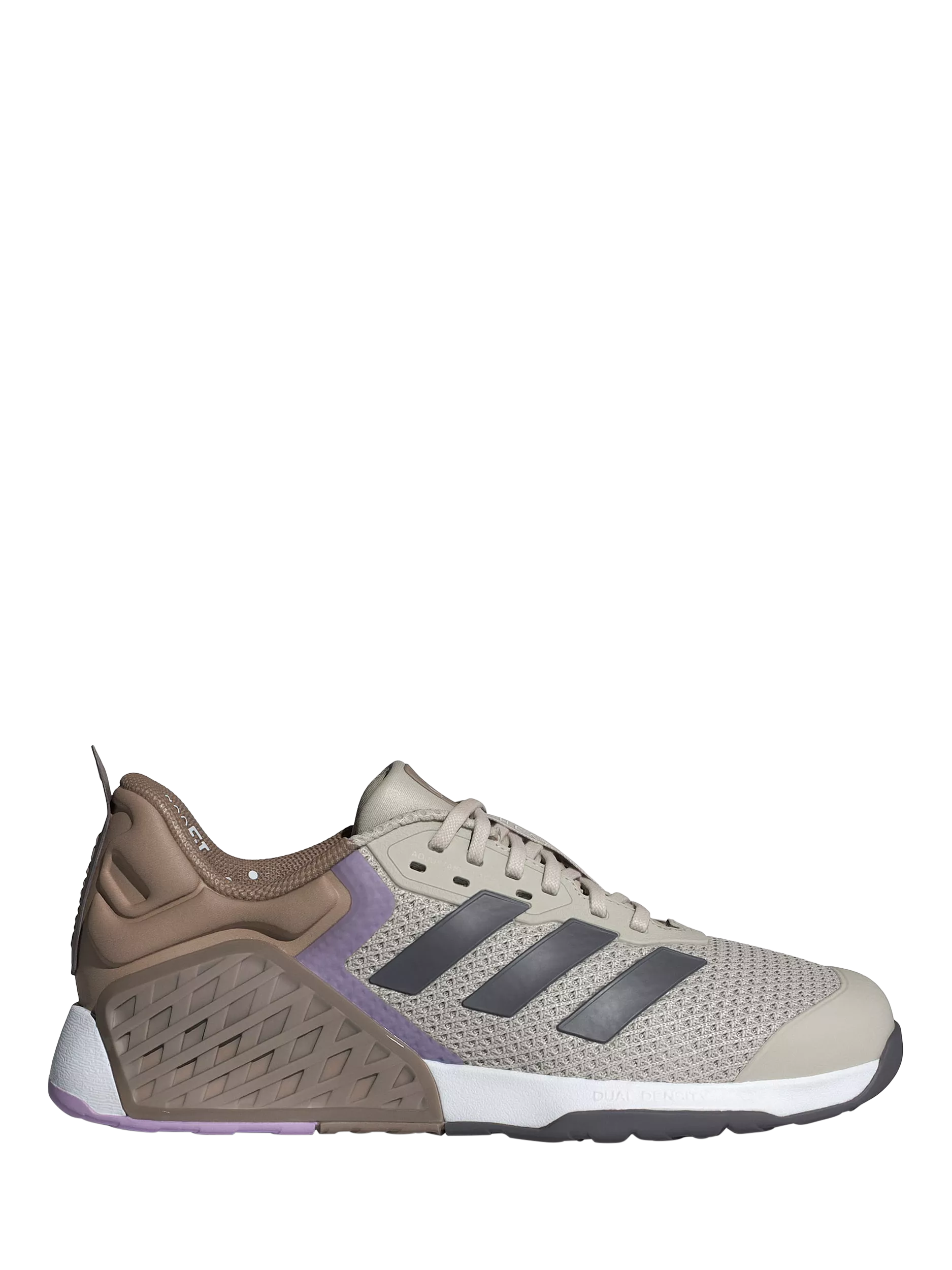 Meet the Dropset 3 W, a training shoe designed for women who aim to become stronger and healthier. Crafted with a wide fit for strength training, these shoes are made from textile and rubber materials, ensuring durability and comfort. The dual-density midsole is stiffer in the heel and softer in the forefoot, providing stability and support during workouts. The Heat.Rdy technology keeps you cool while Traxion offers optimal traction.