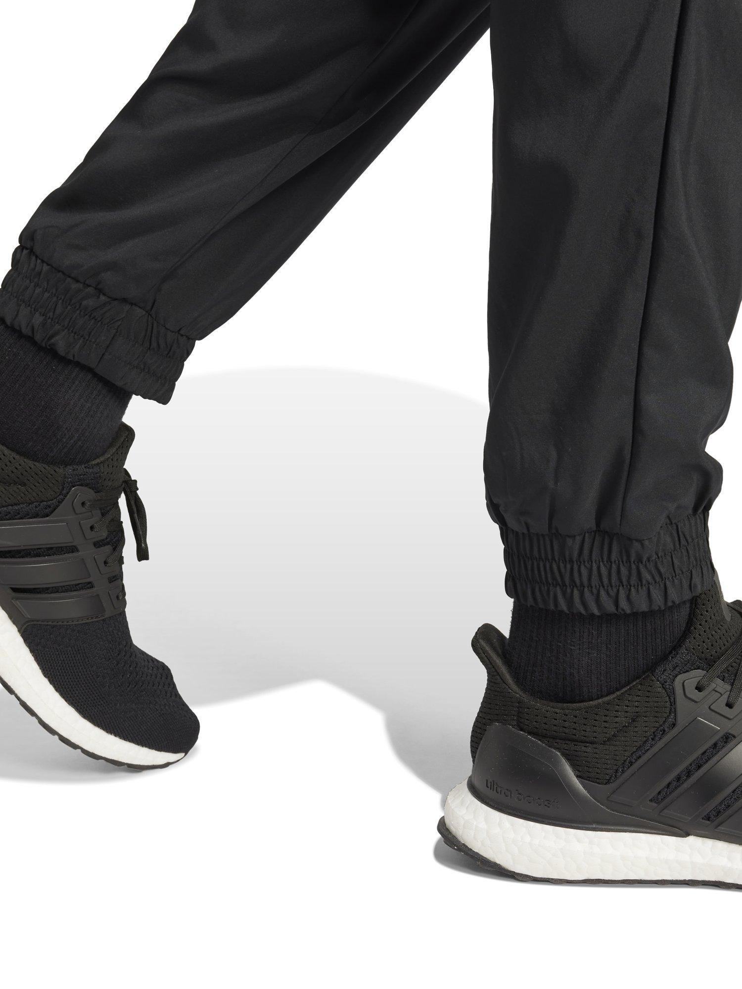 Introducing the Essentials Small Logo Stanford elasticated training joggers, a modern and versatile choice for the man who values style and comfort. Crafted entirely from recycled Polyethylene Terephthalate, these regular fit pants are a testament to adidas' commitment to sustainability. The woven construction ensures durability, while the embroidered three-bar logo adds a touch of classic adidas branding. These pants are designed for an easy, everyday look, with improved fits and fine-tuned details.