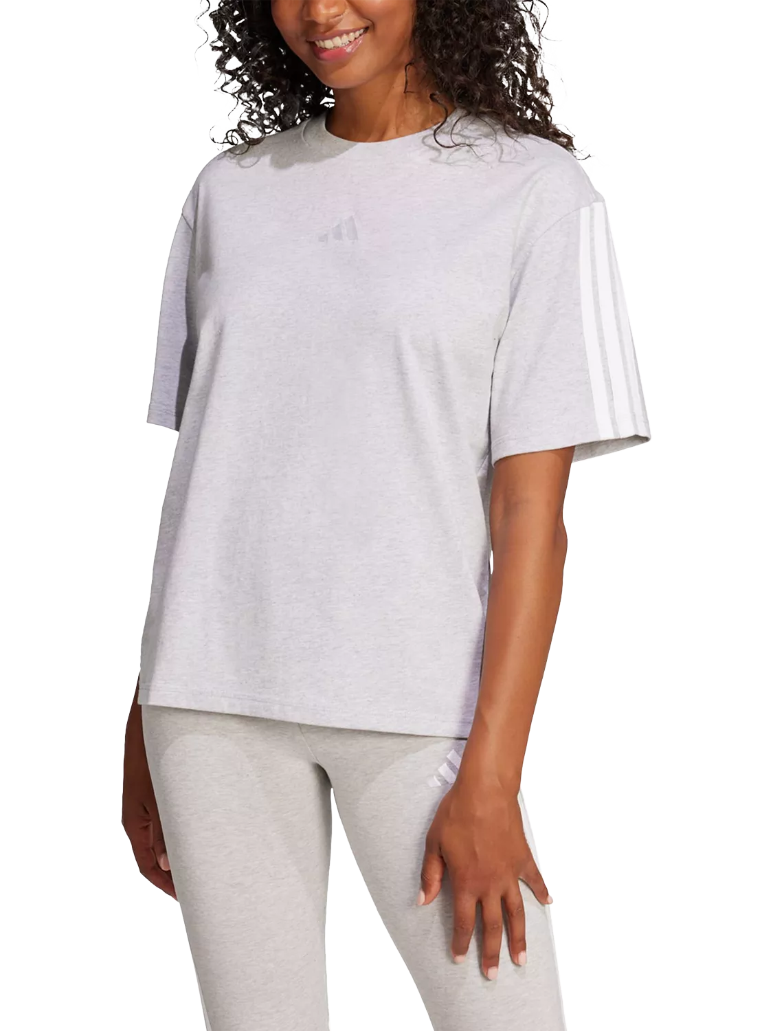 Introducing the Essentials 3-Stripes Boyfriend T-Shirt. The iconic three-stripe branding and small sportswear logo add a touch of classic adidas charm. Perfect for mixing and matching.