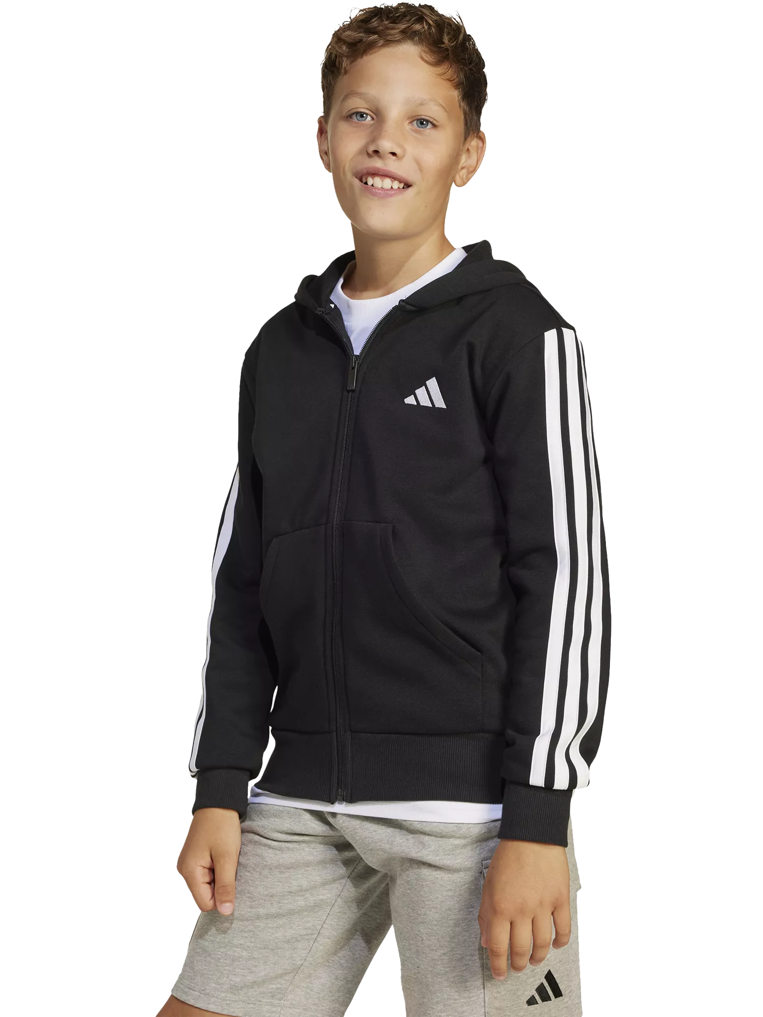 Introducing the adidas Essentials Full Zip Hoodie, a unisex piece that embodies modern design and clean, versatile styles. The regular fit, zippered design, and modern 3-stripes branding offer an updated fit for an easy, everyday look.