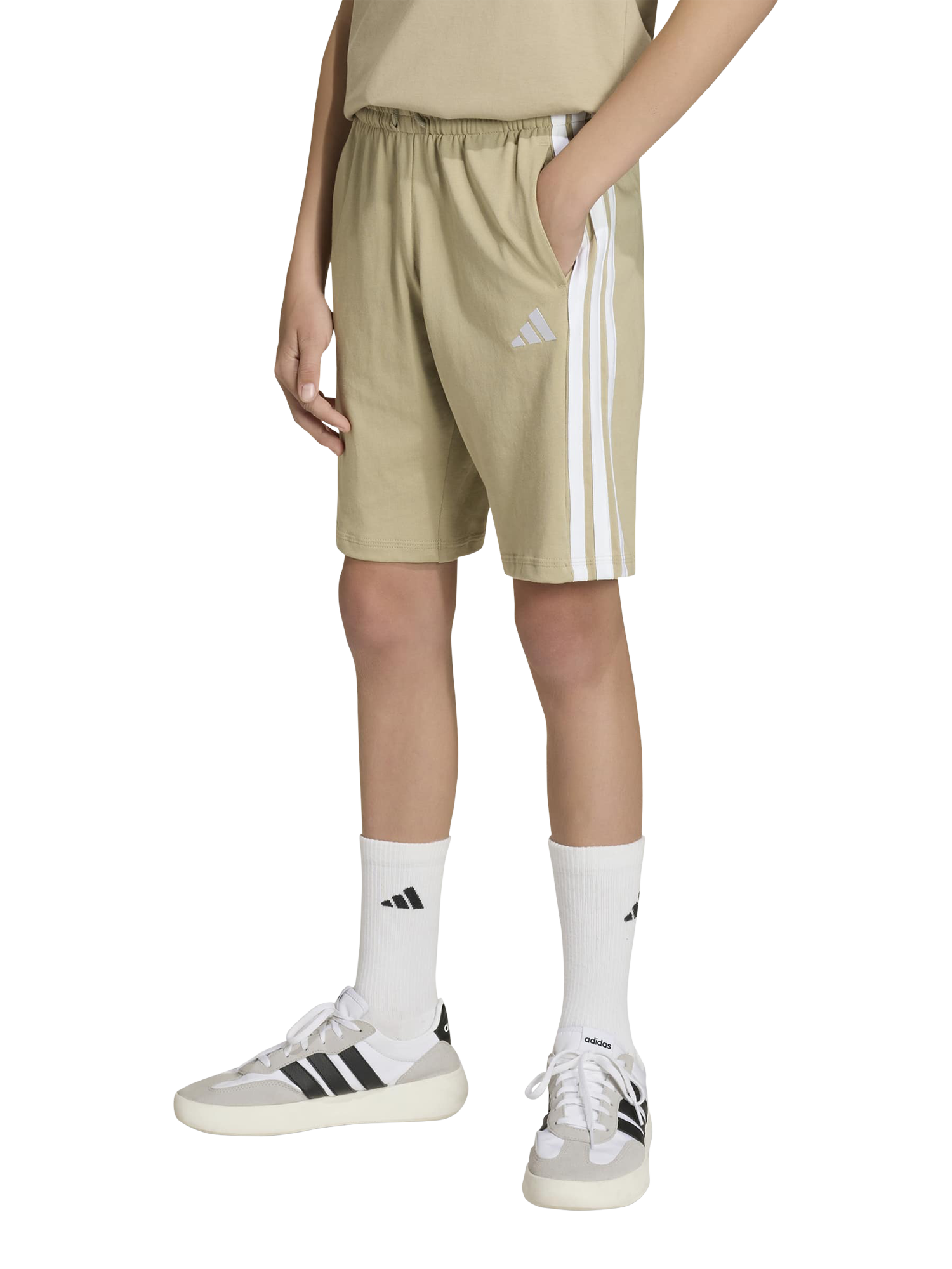 adidasKids' Essentials Drawstring Shorts, Beige/White