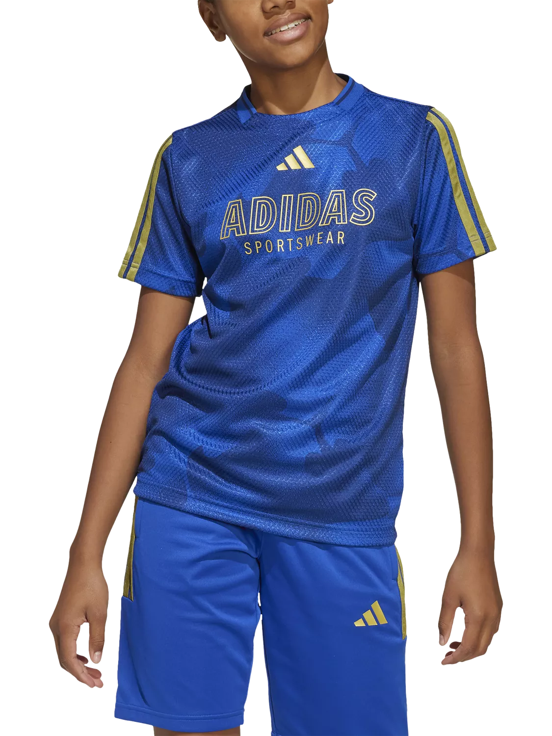 Express your love of the beautiful game in this juniors' adidas t-shirt. The soft knit build and casual style scores points on or off the pitch. Signature 3-Stripes and sporty graphics connect you to football heritage.