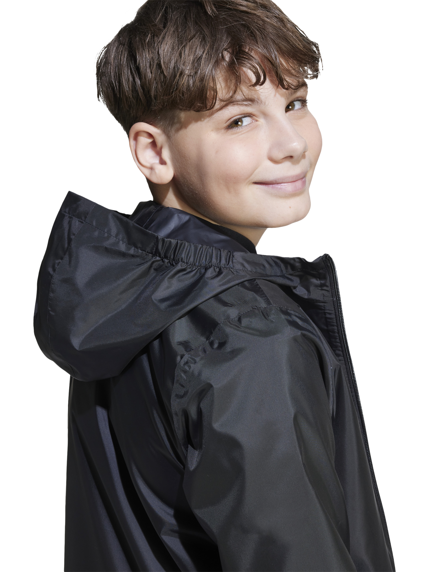 This rain jacket from adidas lets you embrace the great outdoors, whatever the weather. It's seam-sealed, waterproof and windproof to keep you warm and dry through it all. Reversed-entry pockets keep stuff safe and dry, too. A hood with gathered bindings offers a snug fit, so blustery conditions are no match for an adventurous spirit. CLIMAPROOF locks out weather and helps sweat escape for dry, comfortable and unrestricted performance.