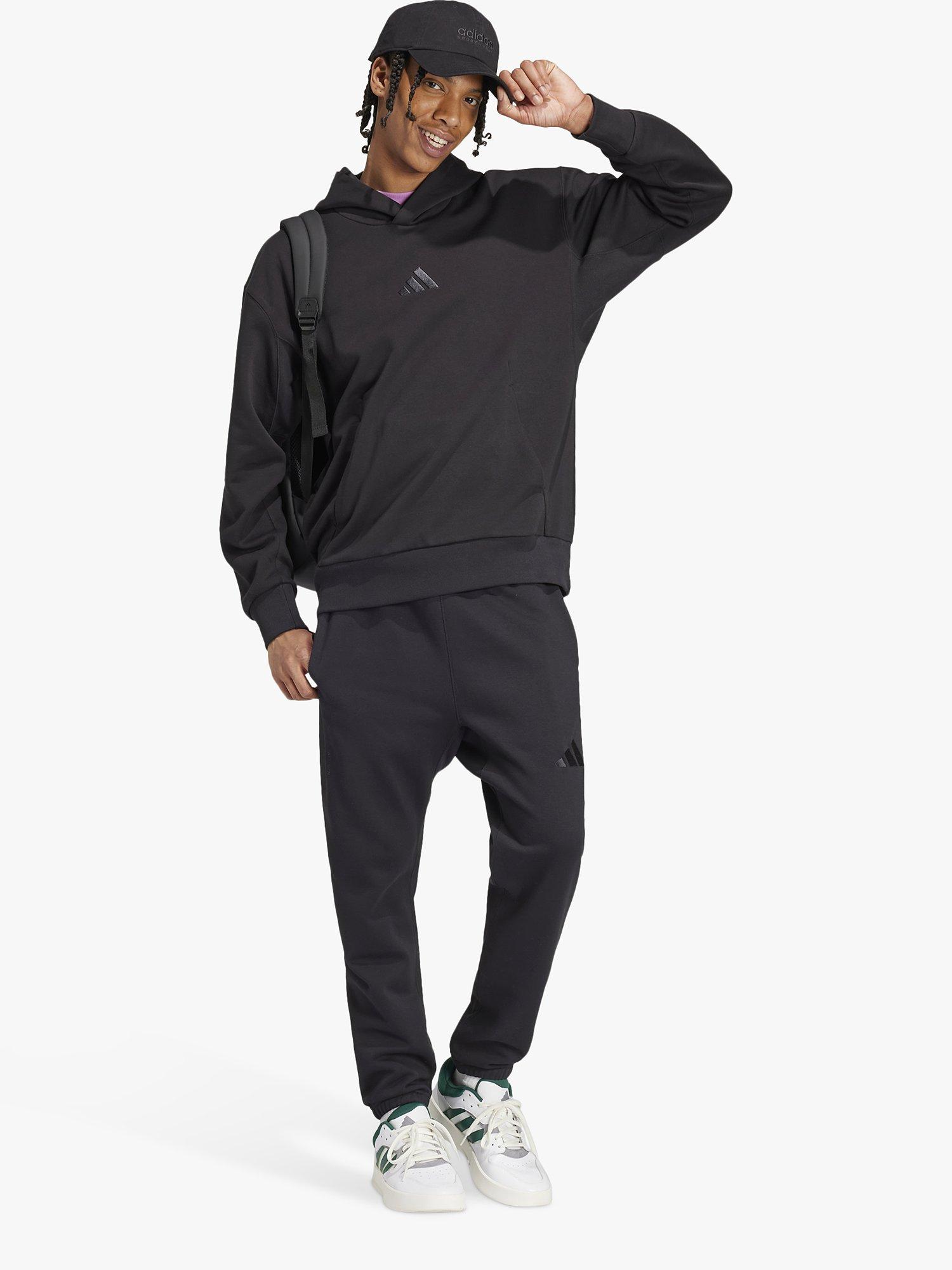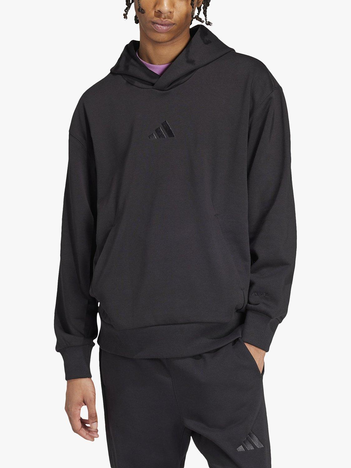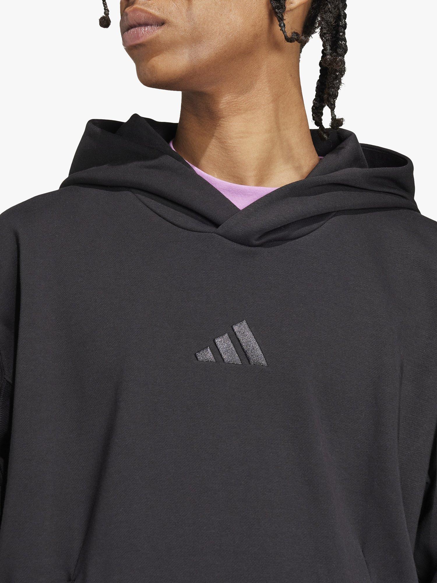 The All SZN Fleece Hoodie, designed for men, is your go-to piece for everyday wear. Made with a blend of Better Cotton and recycled Polyethylene Terephthalate, this loose-fitting hooded sweatshirt is as comfortable as it is sustainable. The tonal embroidered 3-bar logo on the chest adds a subtle touch of adidas branding. Ideal for layering or wearing on its own, it's a versatile addition to any wardrobe.