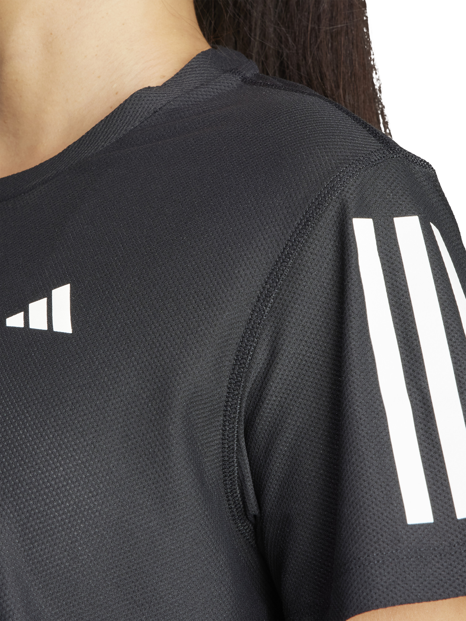 Hit the pavement with the Own the Run T-Shirt. Crafted with added stretch, this knit tee champions comfort. The AEROREADY moisture-wicking technology ensures dryness and comfort, while reflective logos and stripes ensure visibility during those early morning or late-night runs.