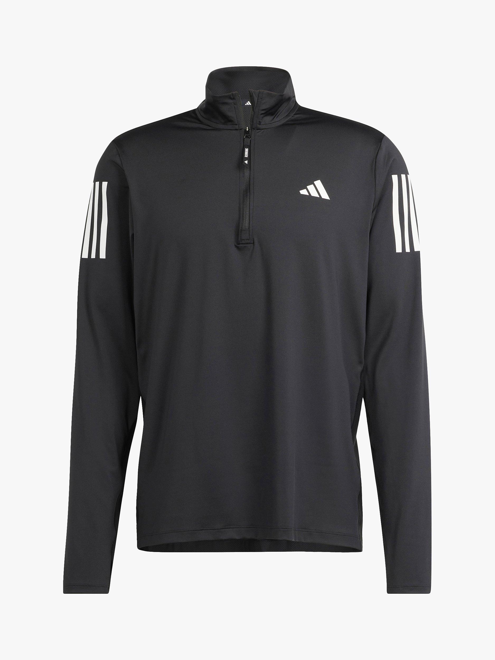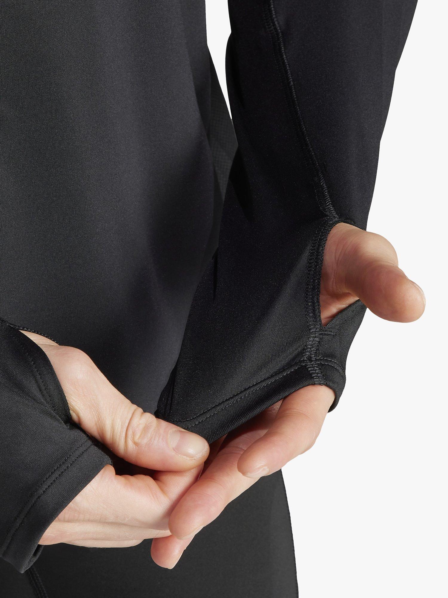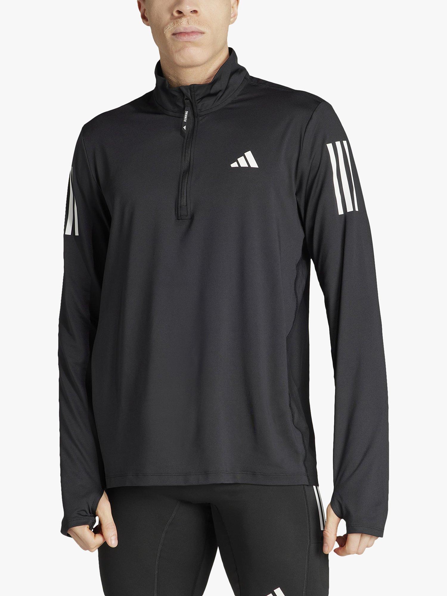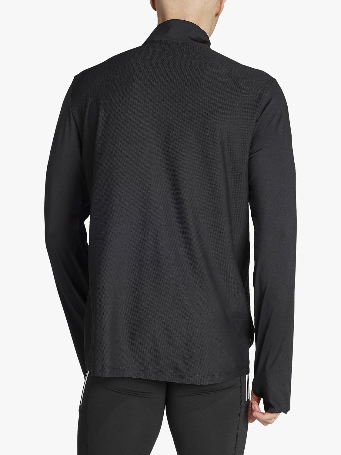 Push through each mile in this adidas running jacket. AEROREADY technology manages moisture so you'll stay comfortable when the intensity rises. Reflective details get you seen at dawn or dusk, while a half-zip and thumbholes dial in the right level of warmth. This product is made with at least 70% recycled materials.