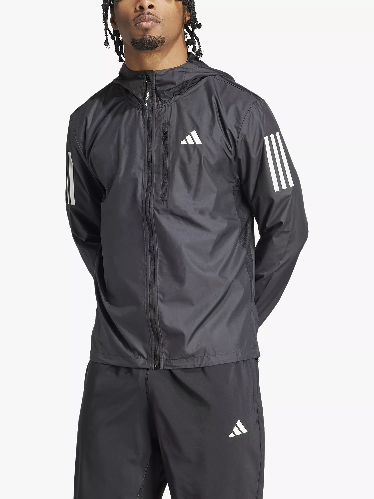 This adidas running jacket lets you log miles at any speed. WIND.RDY technology blocks out breezes so you can focus on your pace, not the weather. Reflective details help you be seen. Zip pockets securely stow essentials, leaving your hands free to power up hills and sprint intervals. This product is made with at least 70% recycled materials. By reusing materials that have already been created, we help to reduce waste and our reliance on finite resources and reduce the footprint of the products we make.