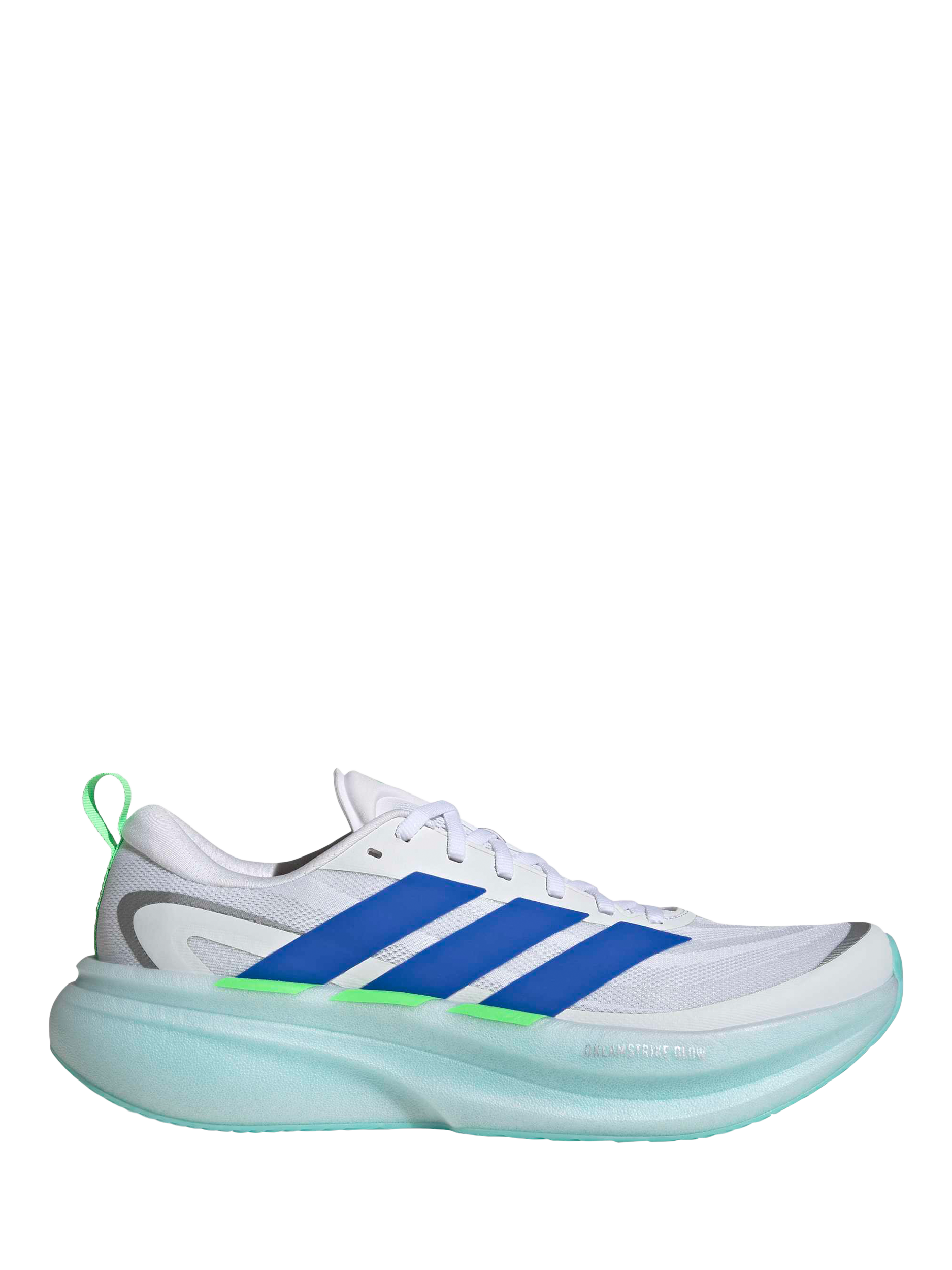 The SUPERNOVA GLIDE RUNNING SHOES offer an exceptional blend of comfort and performance for your daily runs. Featuring a lightweight mono-mesh upper, these shoes provide a snug fit with a cushioned tongue for added support. The full-length DREAMSTRIKE midsole delivers a soft, cushioned underfoot experience, while the high abrasion outsole ensures reliable traction in both dry and wet conditions. Reflective detailing on the heel adds a touch of visibility, making these shoes a versatile choice for any runner.
