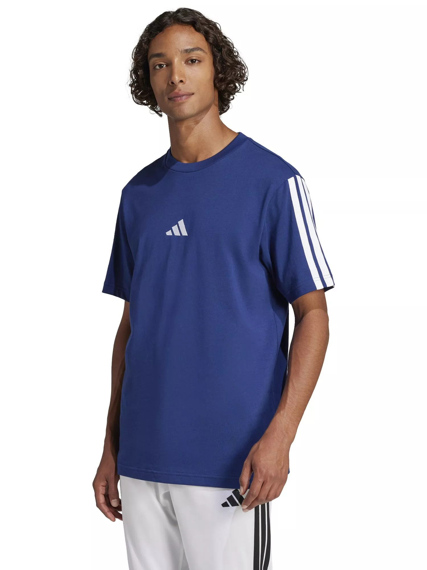 adidasThree Stripes Logo T-Shirt, Dark Blue/White