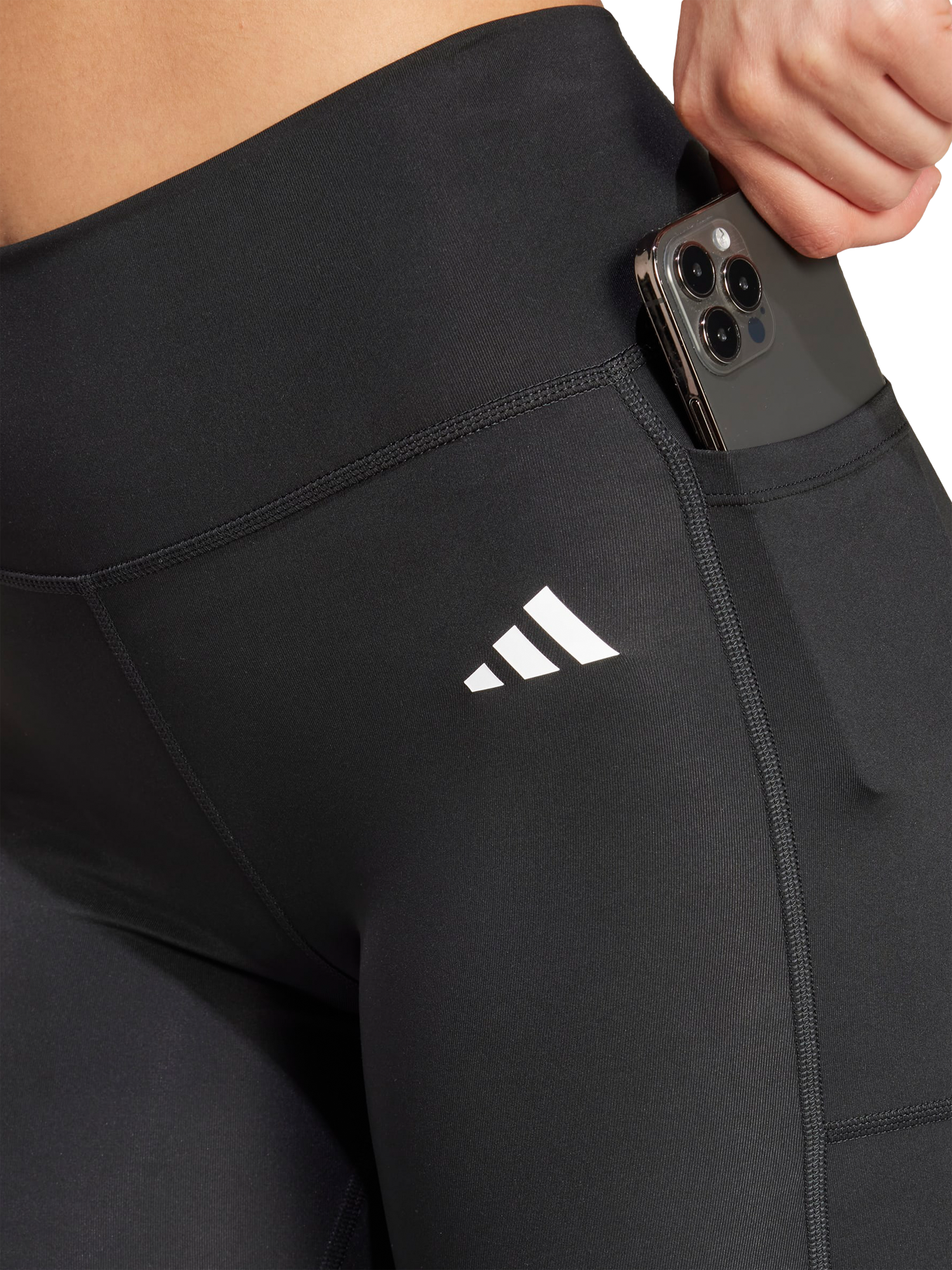 The sleek, stretchy fabric of these training leggings follows your every stride, squat and jump. Feel confident through high-intensity intervals or spin class, thanks to the stay-put waistband and bonded seams that prevent distracting roll-up. With adidas AEROREADY, you'll stay dry and focused on your goals. A stash pocket keeps your essentials close, so you can go straight from your workout to the rest of your day.