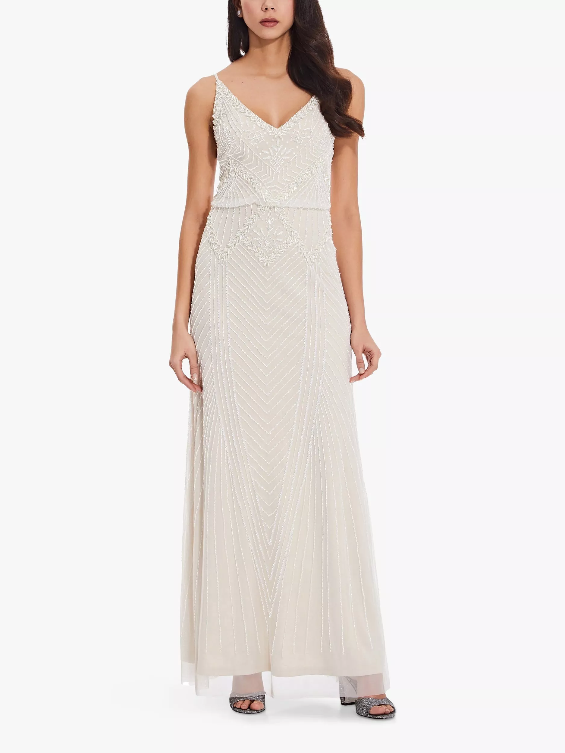 The gown is made from fluid and lightweight fabric that ensures it falls as glamorously as possible. It's covered in shimmering sequins and its plunging V neck is nothing short of attractive.