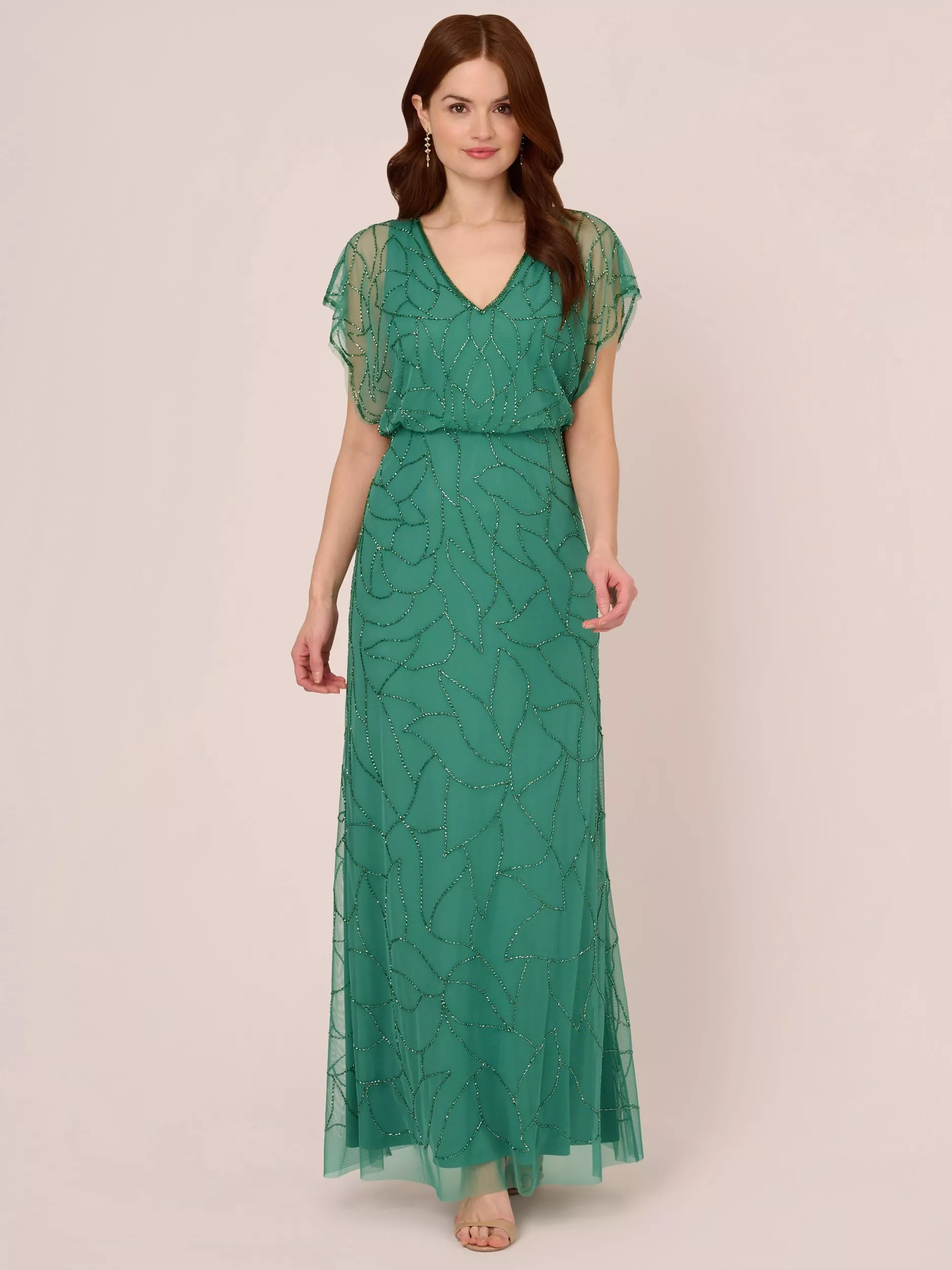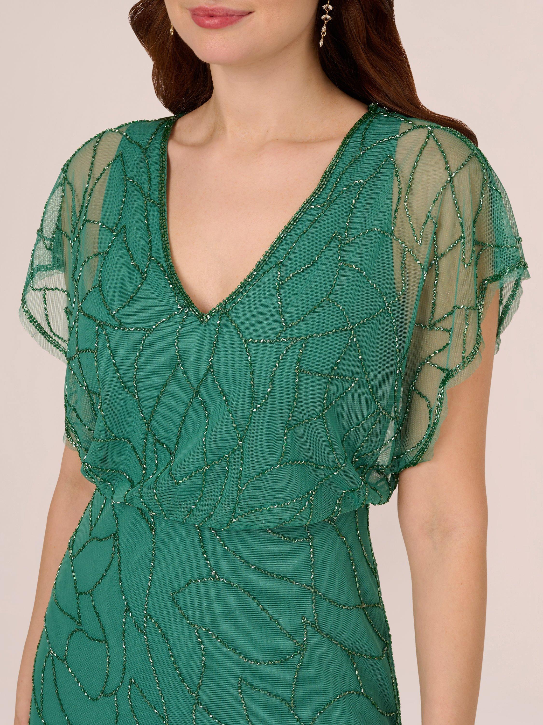 Adrianna PapellBeaded Blouson Maxi Dress, Jungle Green