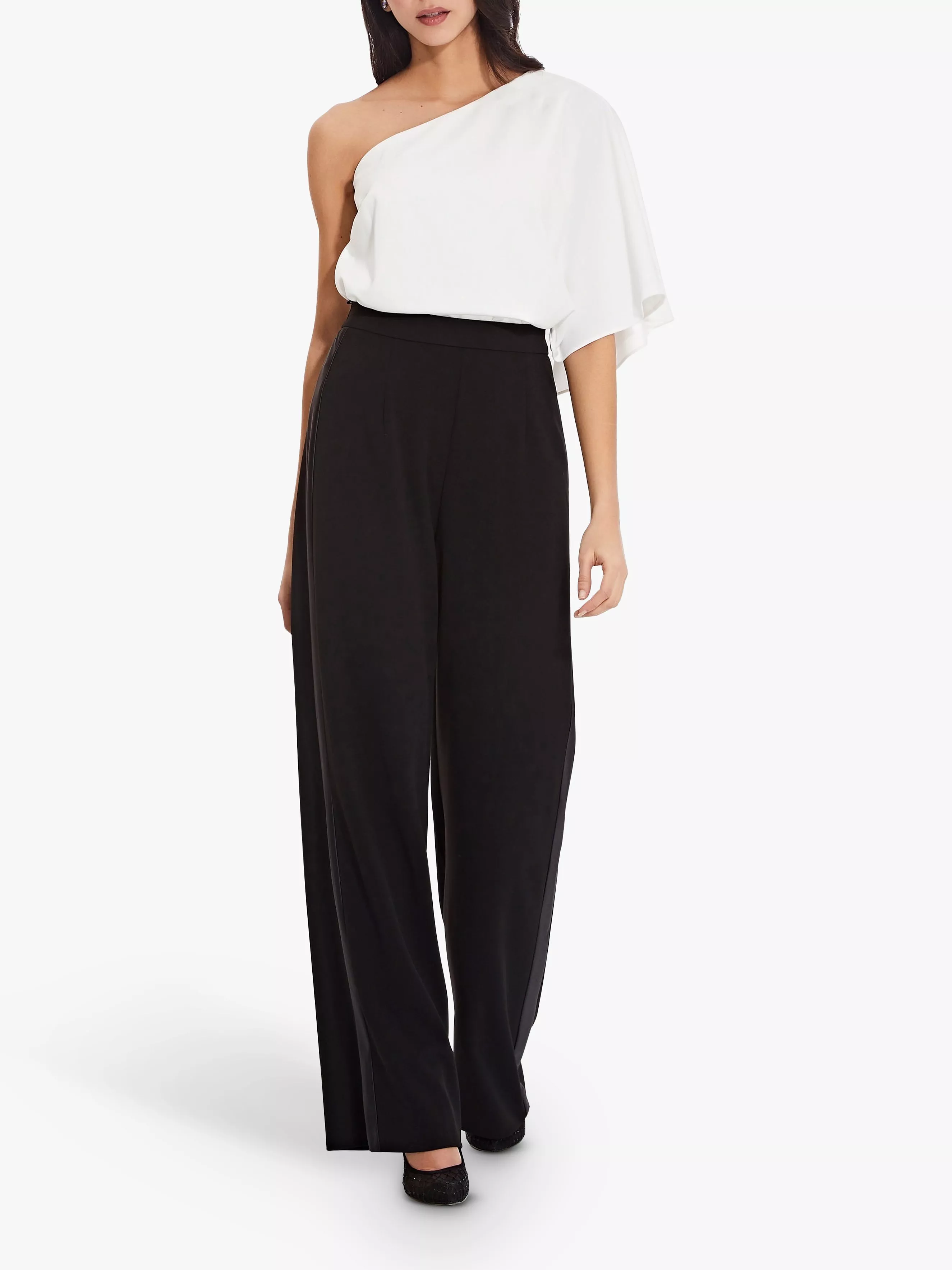 This elegant pair of tuxedo trousers from occasionwear experts Adrianna Papell feature a silky black band along the outer seam of each leg. A formal style with a fixed waistband and an elasticated back for comfort, the wide leg cut is slightly flared so it works perfectly with heels to elongate the leg. Add an eye-catching beaded top to complete your look.