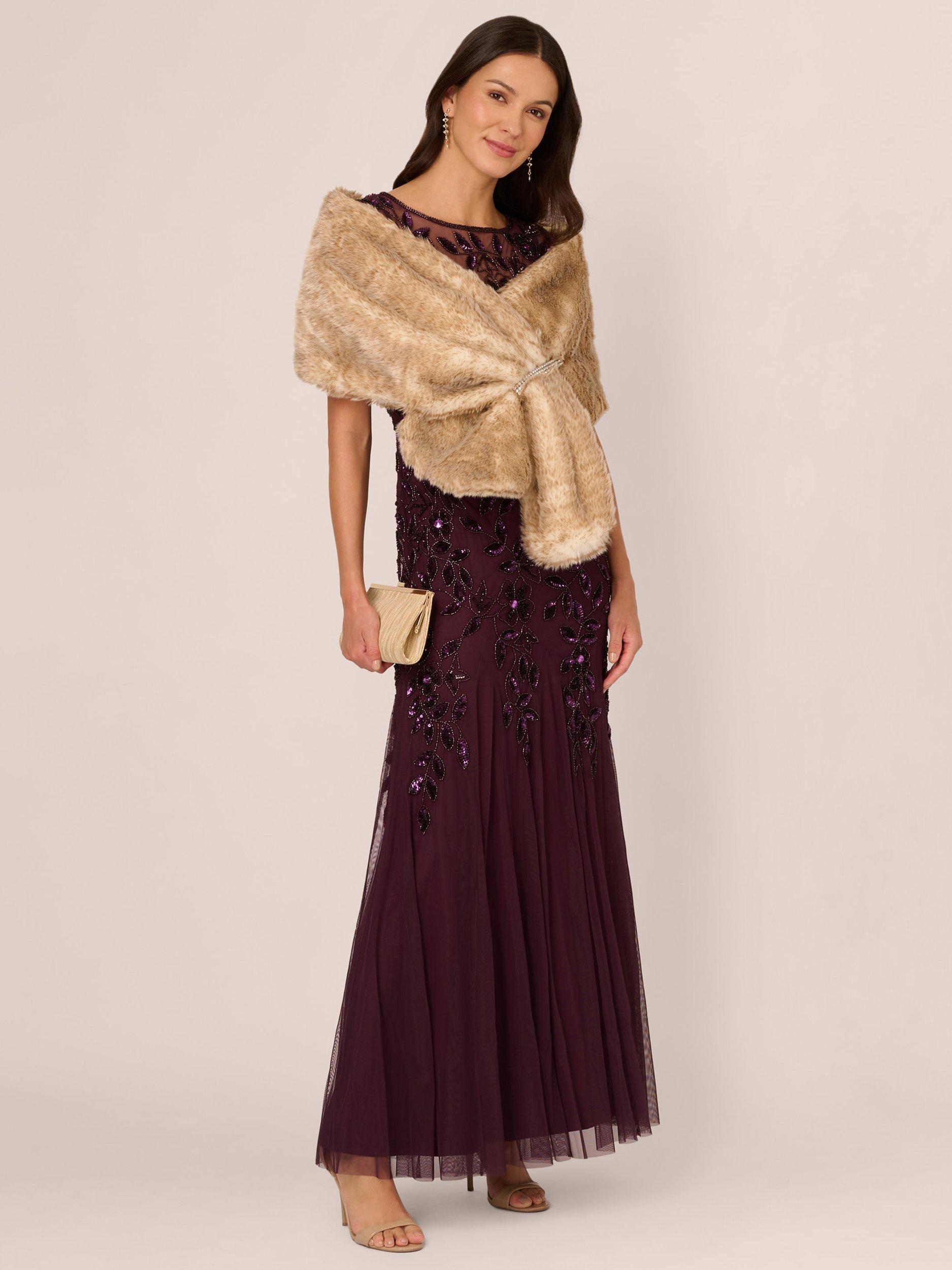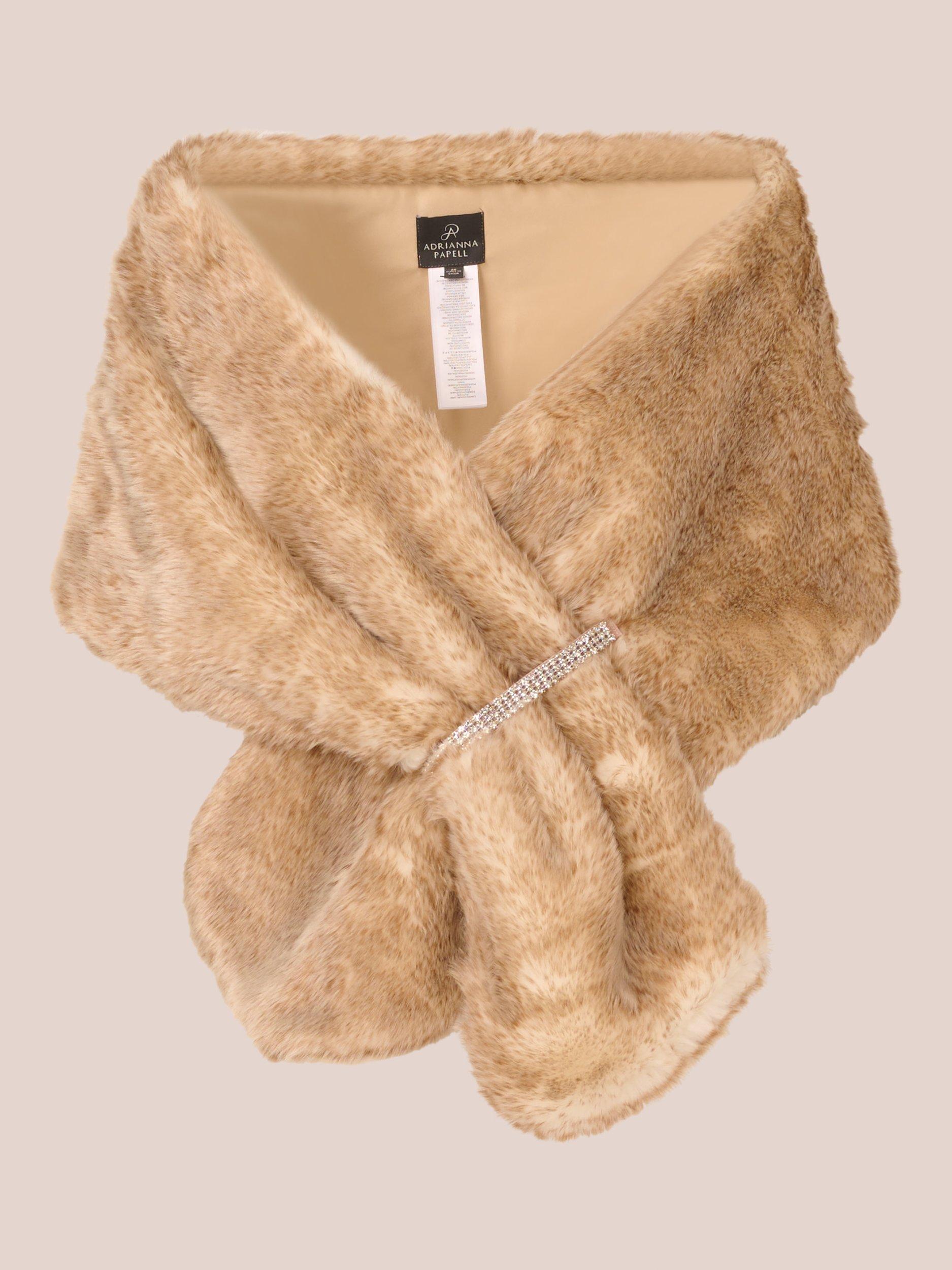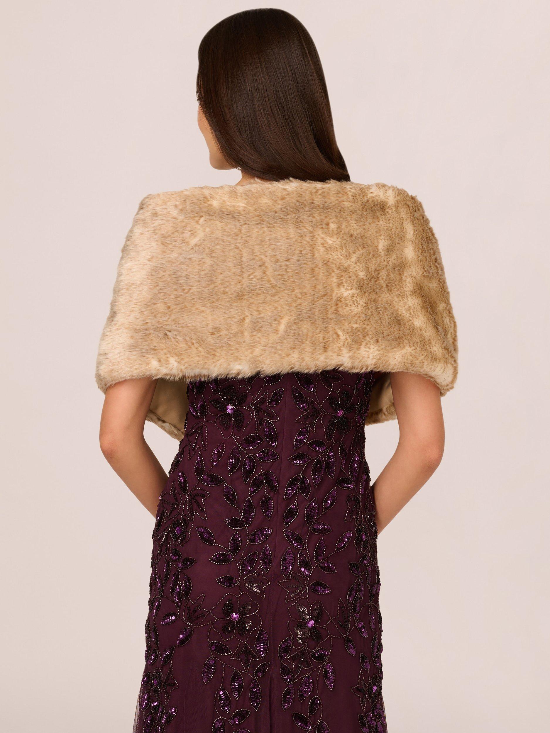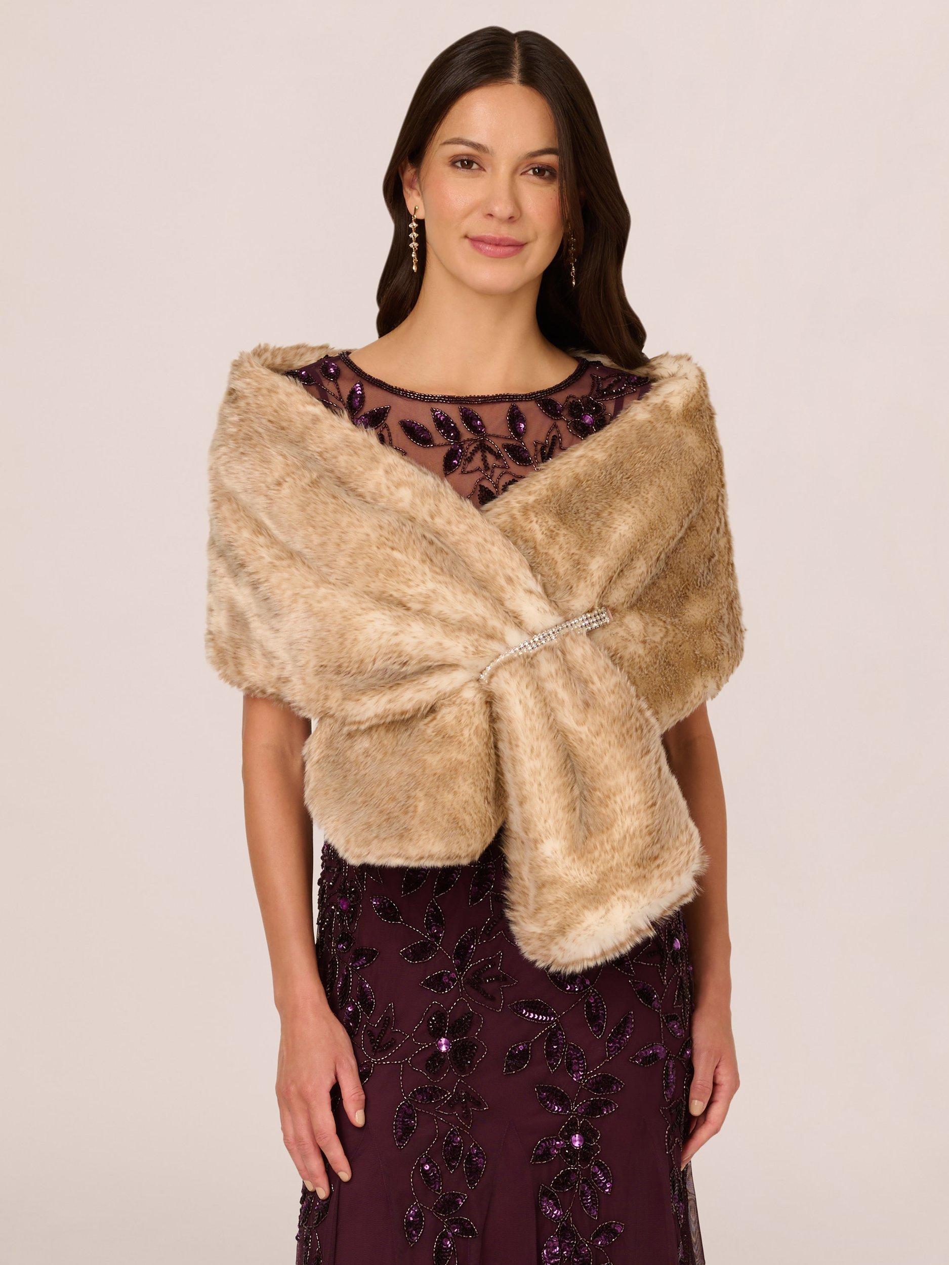 A short cape in faux fur that is as soft as soft gets. Add this shawl over evening looks and wedding outfits for an elegant way to layer your look. This glamorous capelet in faux fur features a deeper pile trim on the shawl collar and hem for extra warmth. Satin lining and a hidden hook closure at the front make this coverup exceptionally comfortable to wear, so you will feel as good as you look.