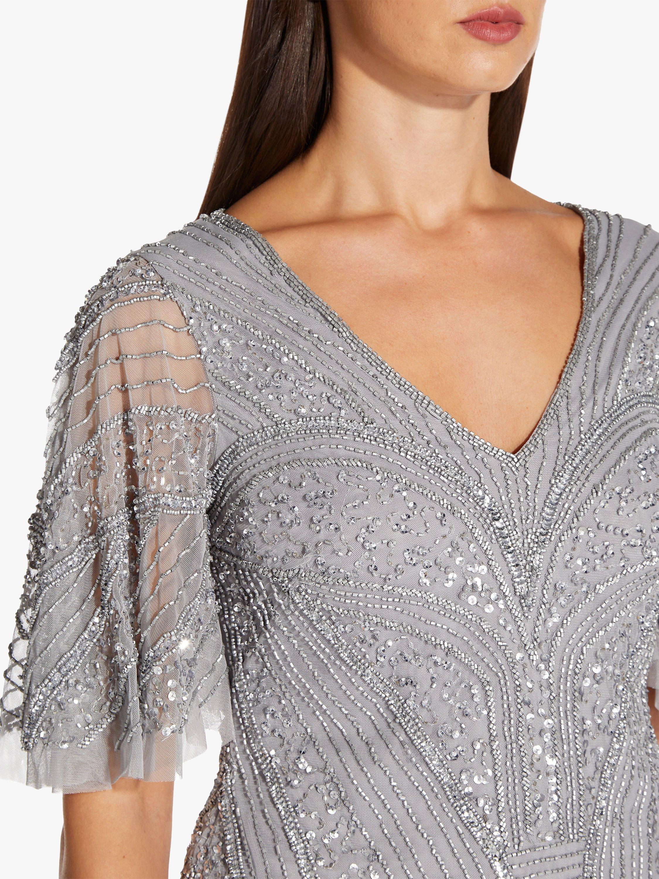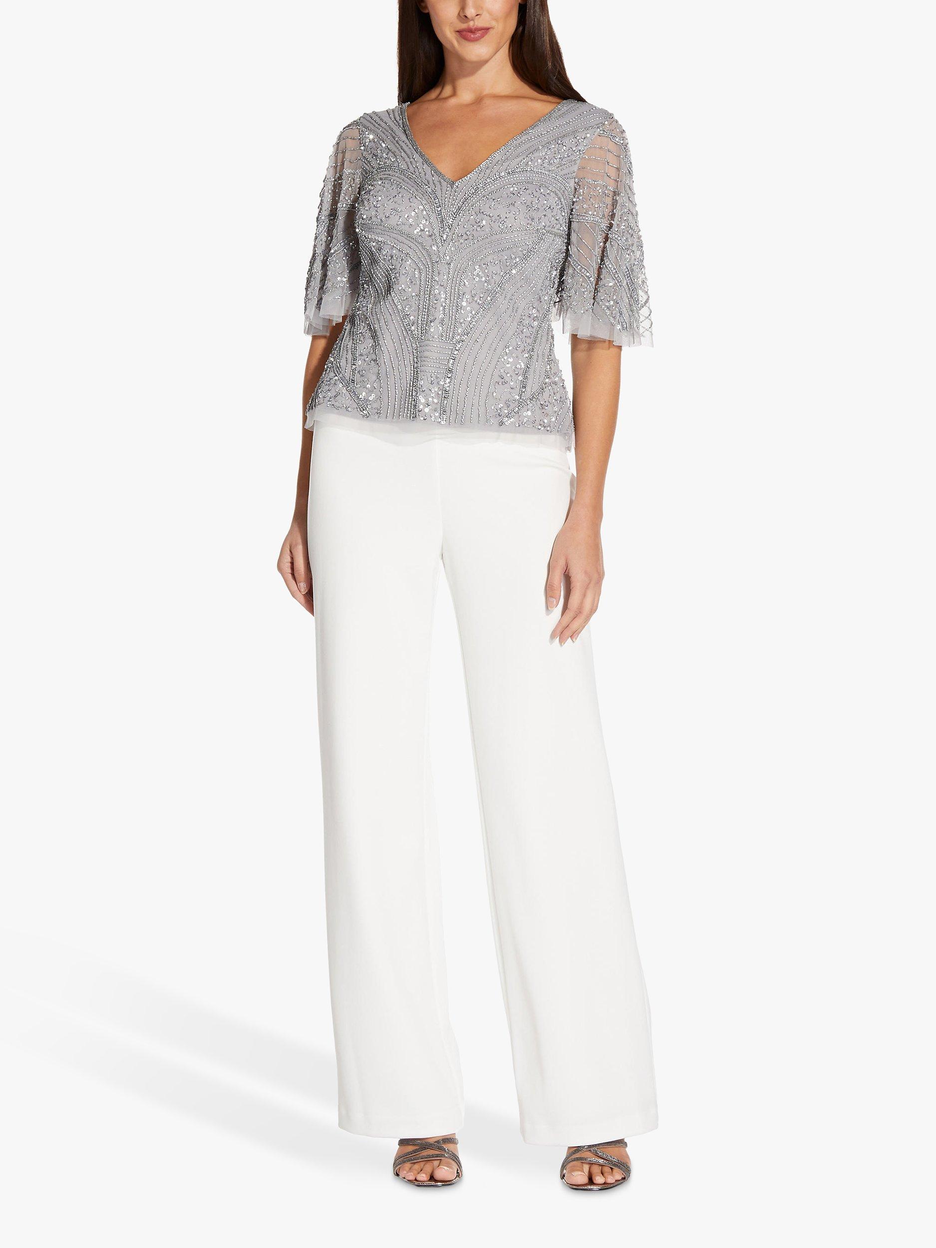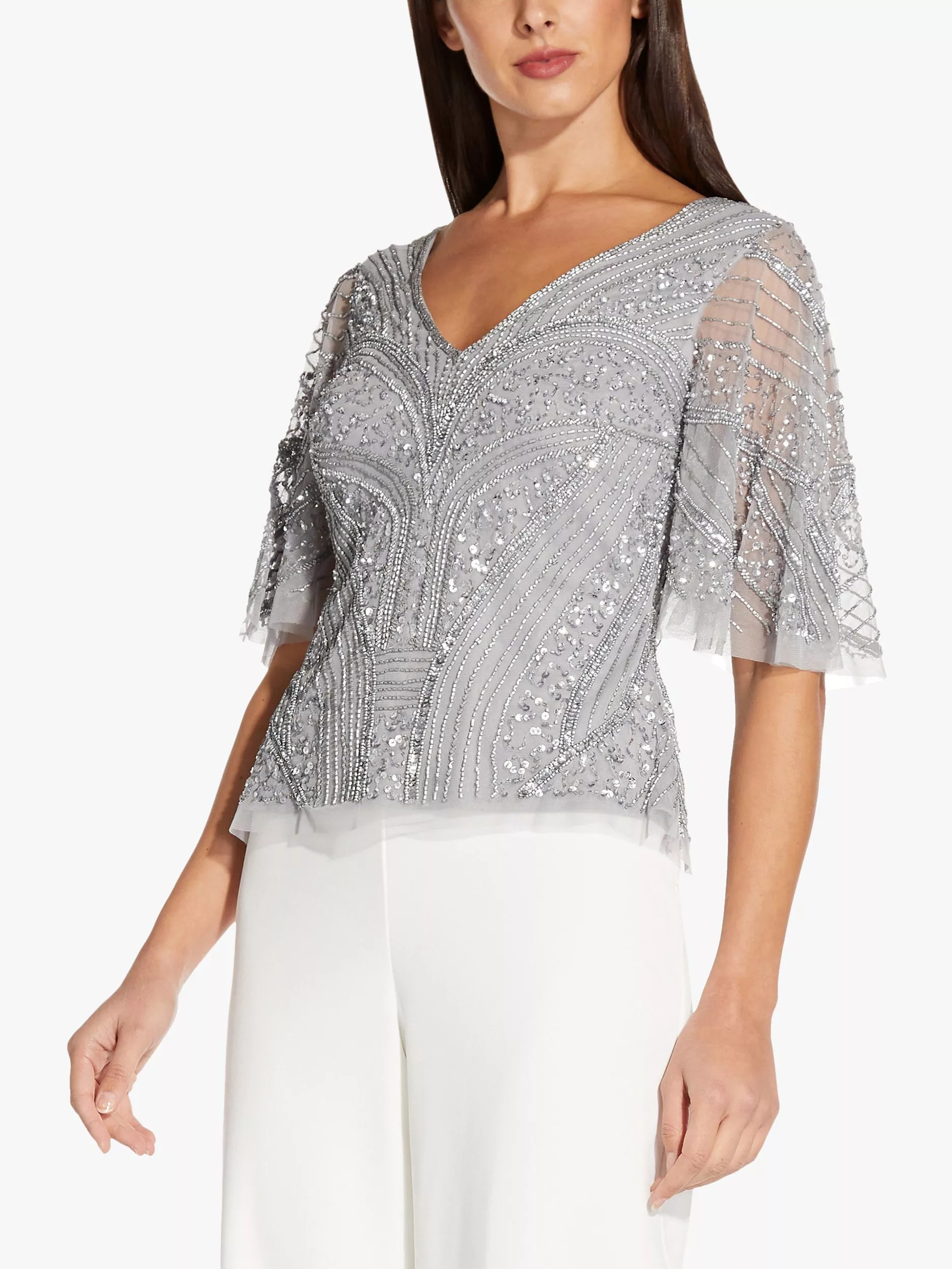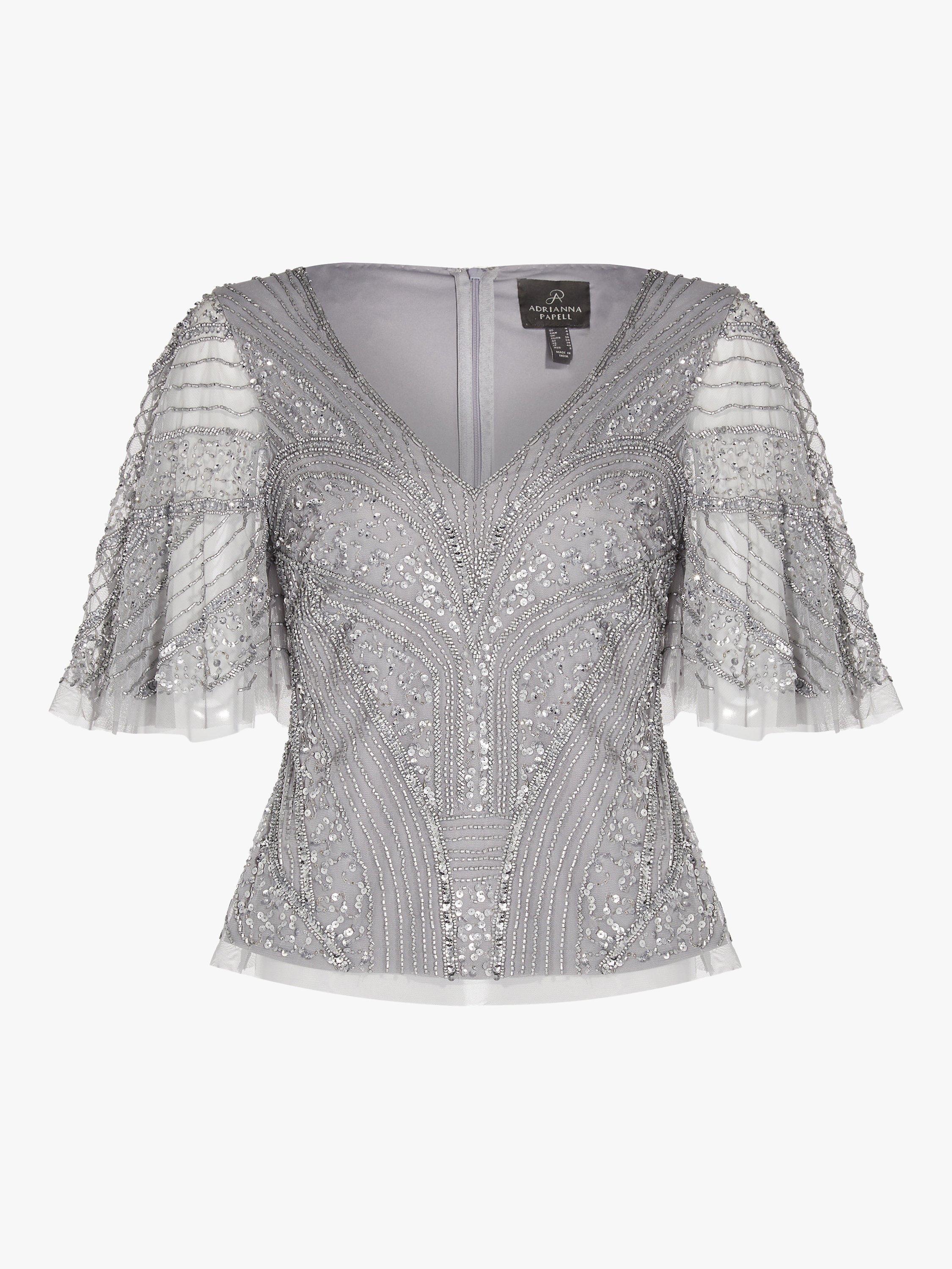 A stunning choice for day or night, this Adrianna Papell sequin top was designed to shine. With a flattering V-neckline, flutter sleeves and beautiful sequin and beaded detail throughout, this top has got you covered from parties to after-dark soirées, wear with sleek tailoring and your best heels.