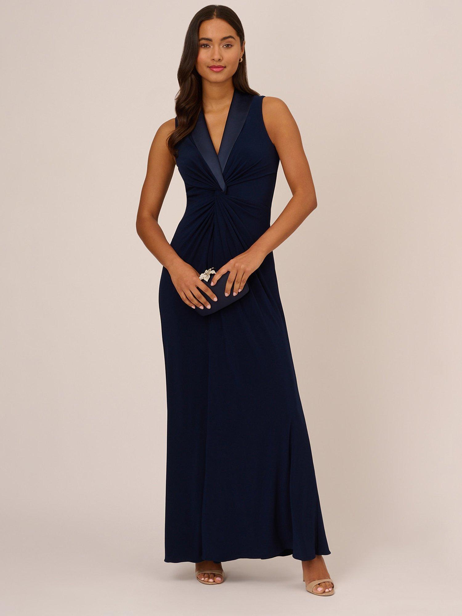 Entirely flattering with its A-line shape, this floor-length dress from Adrianna Papell is crafted from a blend of fabrics. With a universally flattering v-neckline, this sleeveless style is free of unnecessary embellishments.