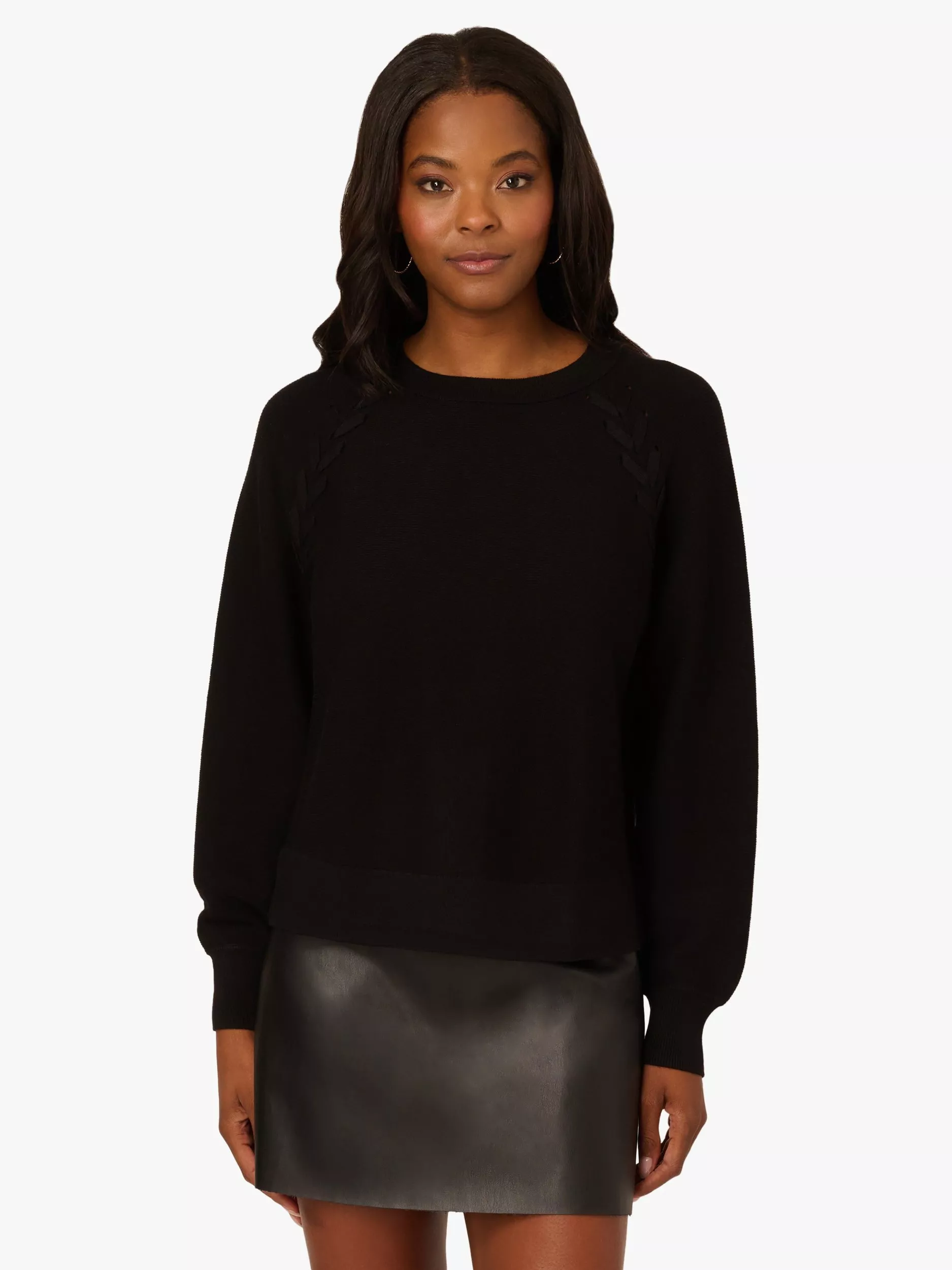 Cozy with a modern edge, this pullover sweater is a fresh take on everyday comfort. Crafted from a soft knit fabric with a relaxed fit, it features slouchy raglan shoulders and long bishop sleeves that add gentle volume. Lace up details reinforce the shoulder seams, lending a touch of texture and structure. A versatile essential, this sweater is perfect paired with denim for weekend looks or layered under a coat during cooler weather.