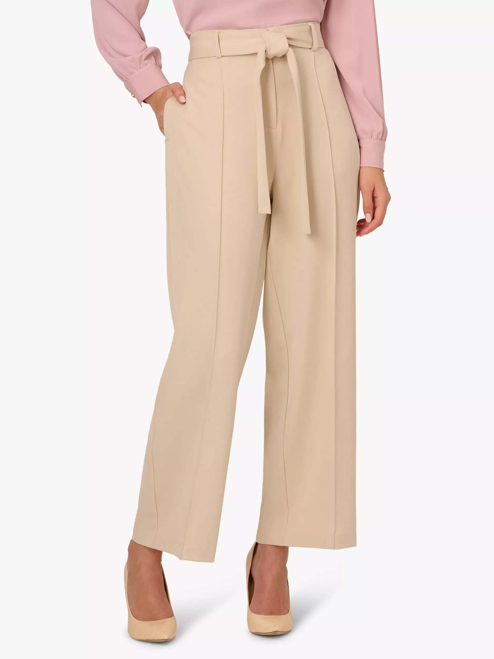 A wide leg cut, and a tie belt give these slacks their updated look. The woven twill construction and back elastic waist keep this trouser breezy and super comfortable to wear. Seams down the front of leg create a little extra structure in the silhouette. A zipper fly closure and faux back pockets finish the design. Refresh your everyday look with these smart, versatile trouser that give you tons of options for mixing and matching.