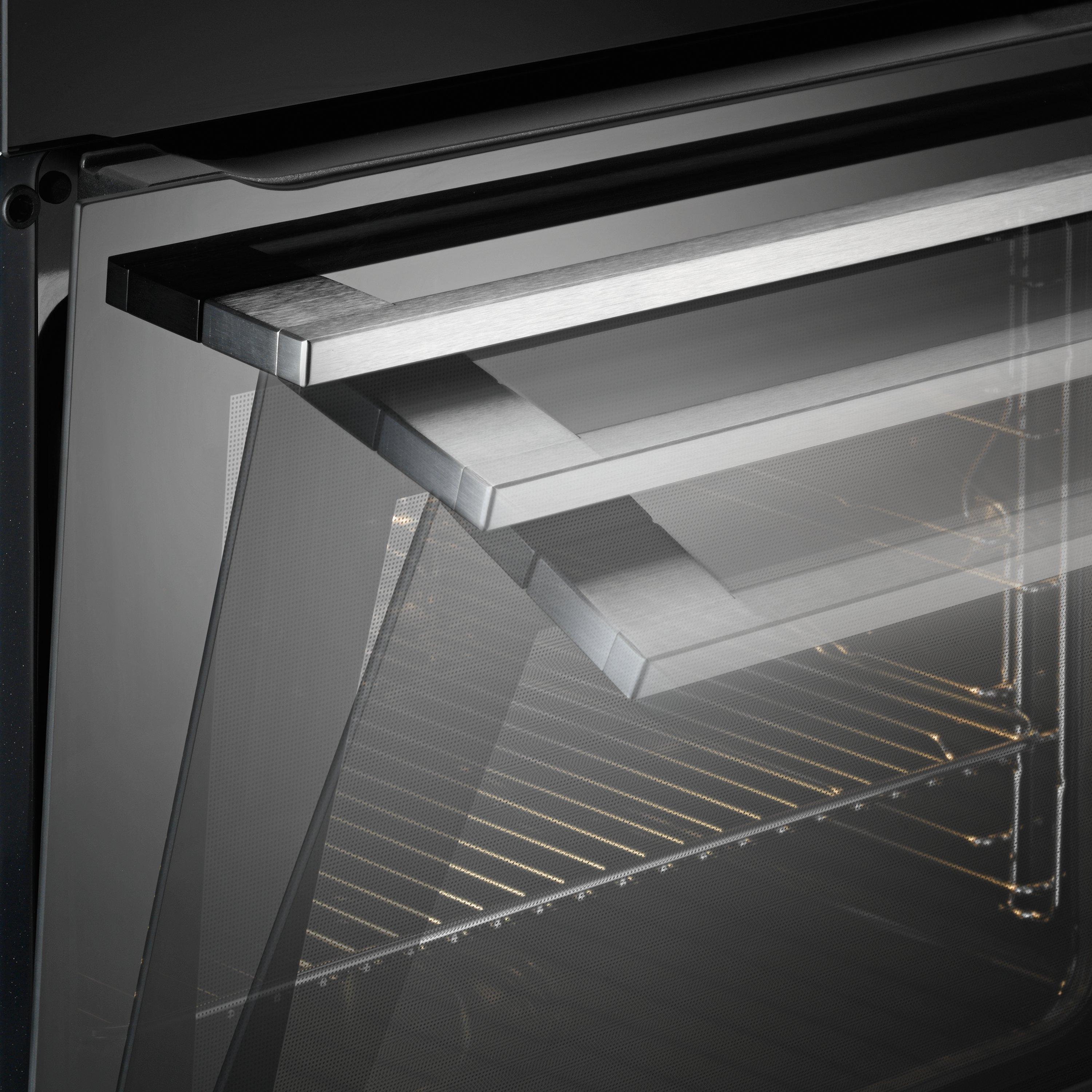 The pyro-proof telescopic runners in this oven make it easier and safer to access and handle the dishes you prepare. As well as accessibility within the oven, the Soft Closing Door technology ensures that the door always shuts without a bang.