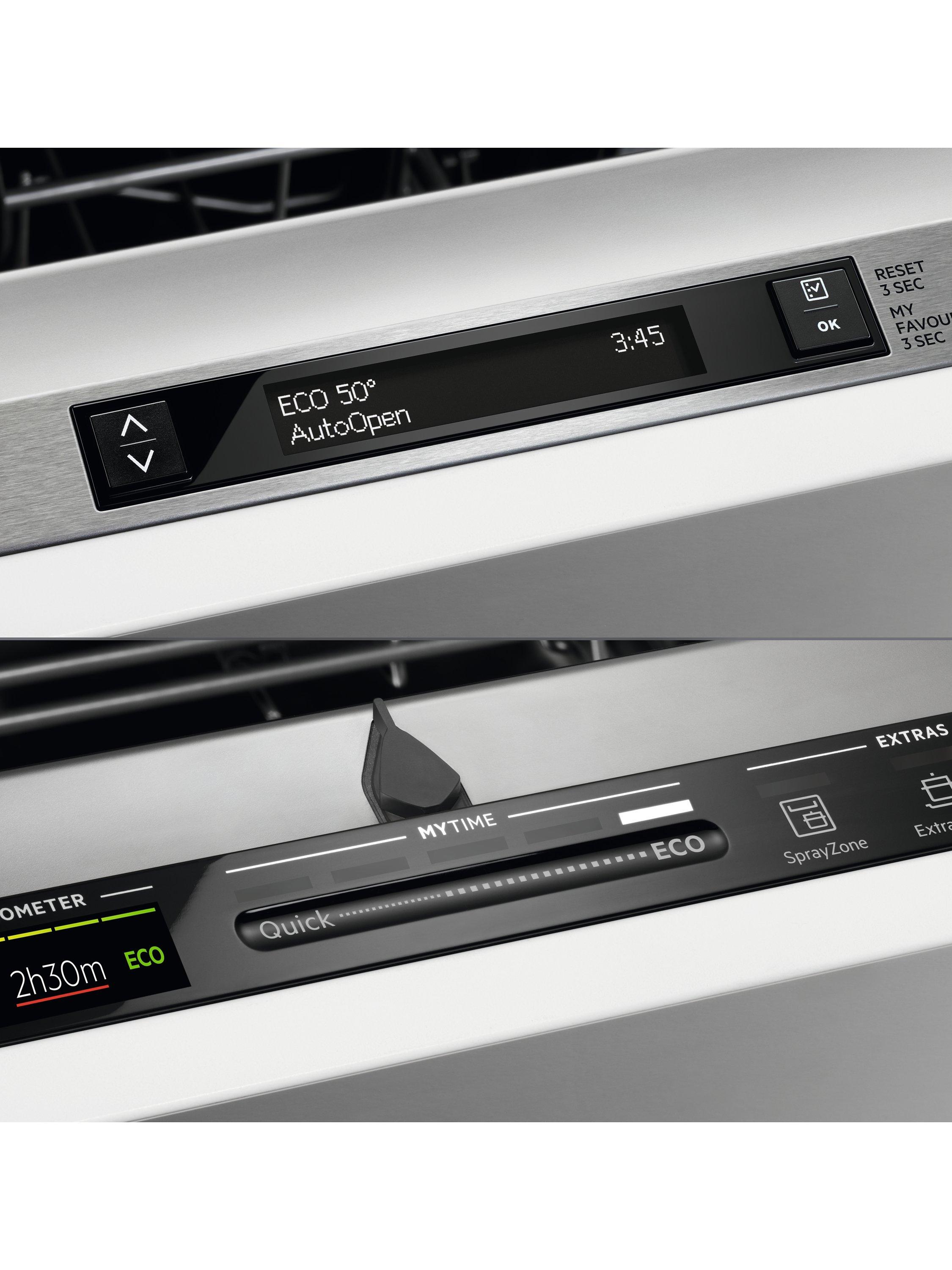 Super efficient, super quiet, and super handy when you're facing a mountain of washing up. AEG has ensured the post-dinner clean up is a cinch courtesy of the clever features they've included in this dishwasher. The speedy 30 minute quick wash leaves everything sparkling - handy when you've got guests coming over and need dishes clean in a hurry - and the adjustable upper basket helps accommodate for any large plates or wine glasses too, perfect for post-party washing. You'll also love the how eco-friendly it is. Sensors detect how dirty your dishes are and automatically adjusts the settings, so only the right amount of water and energy is used. And when everything’s clean, the door will automatically open to let in a natural flow of air, for gentler and quicker cooling.