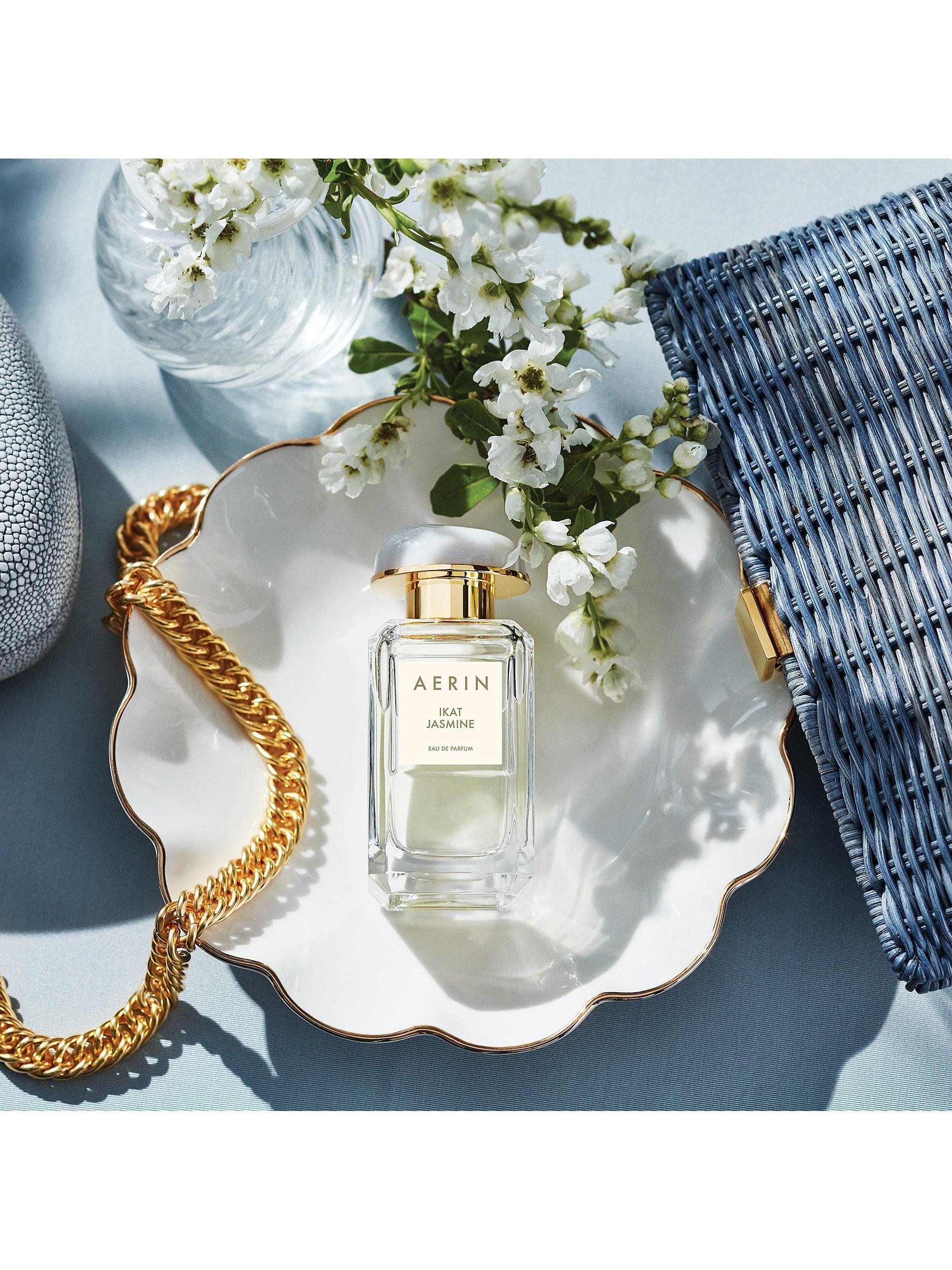 AERIN’s Fragrance Collection is a wardrobe of distinctive perfumes inspired by Aerin’s own travels, experiences and memories. Ikat Jasmine is a crisp floral jasmine perfume inspired by the casual elegance of combining Aerin’s favourite colours - blue and white.