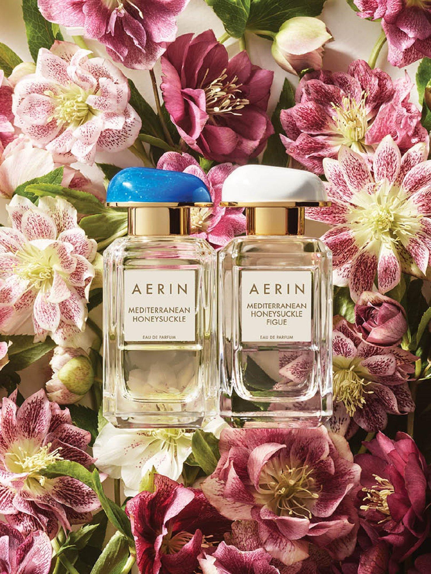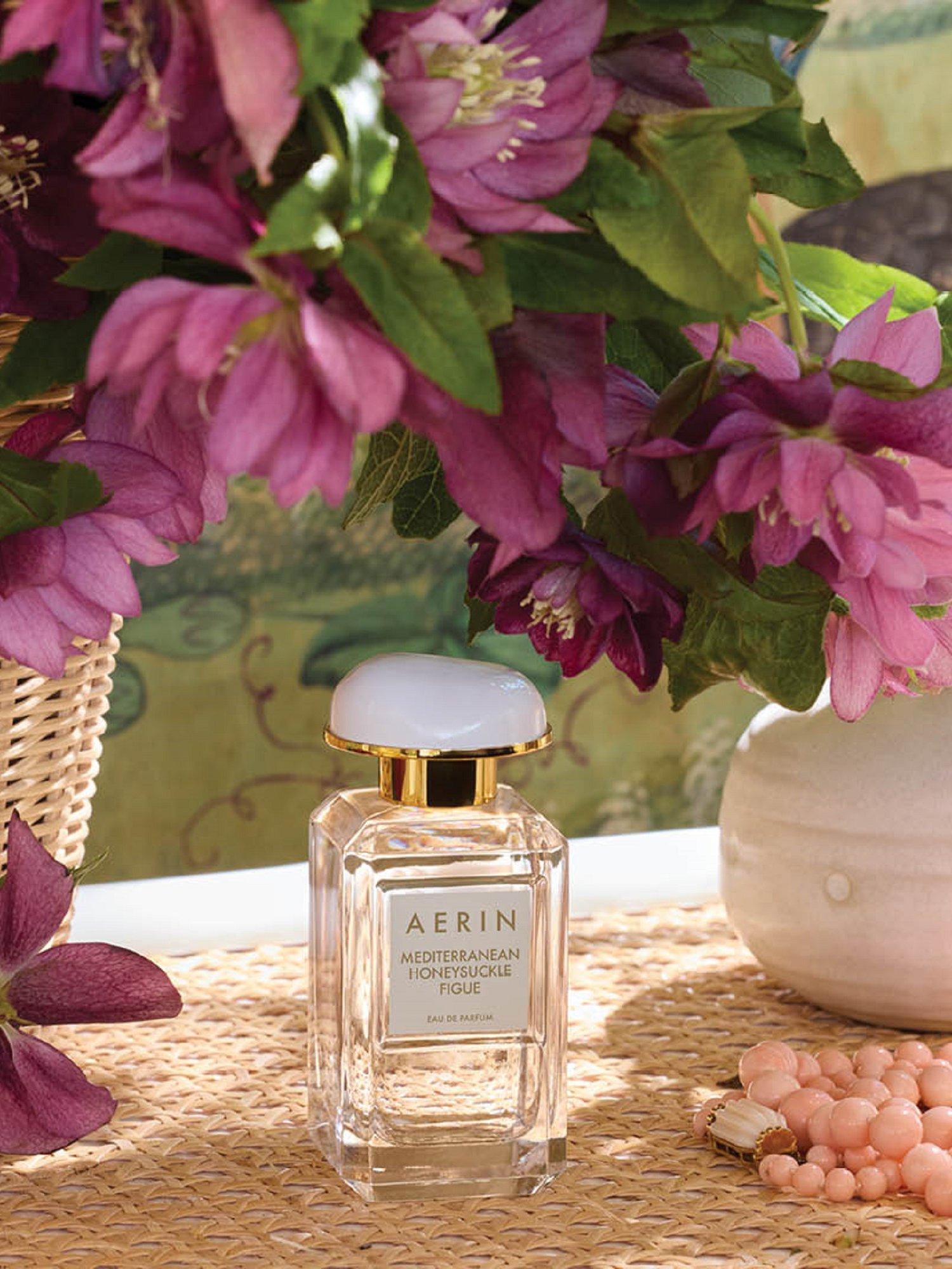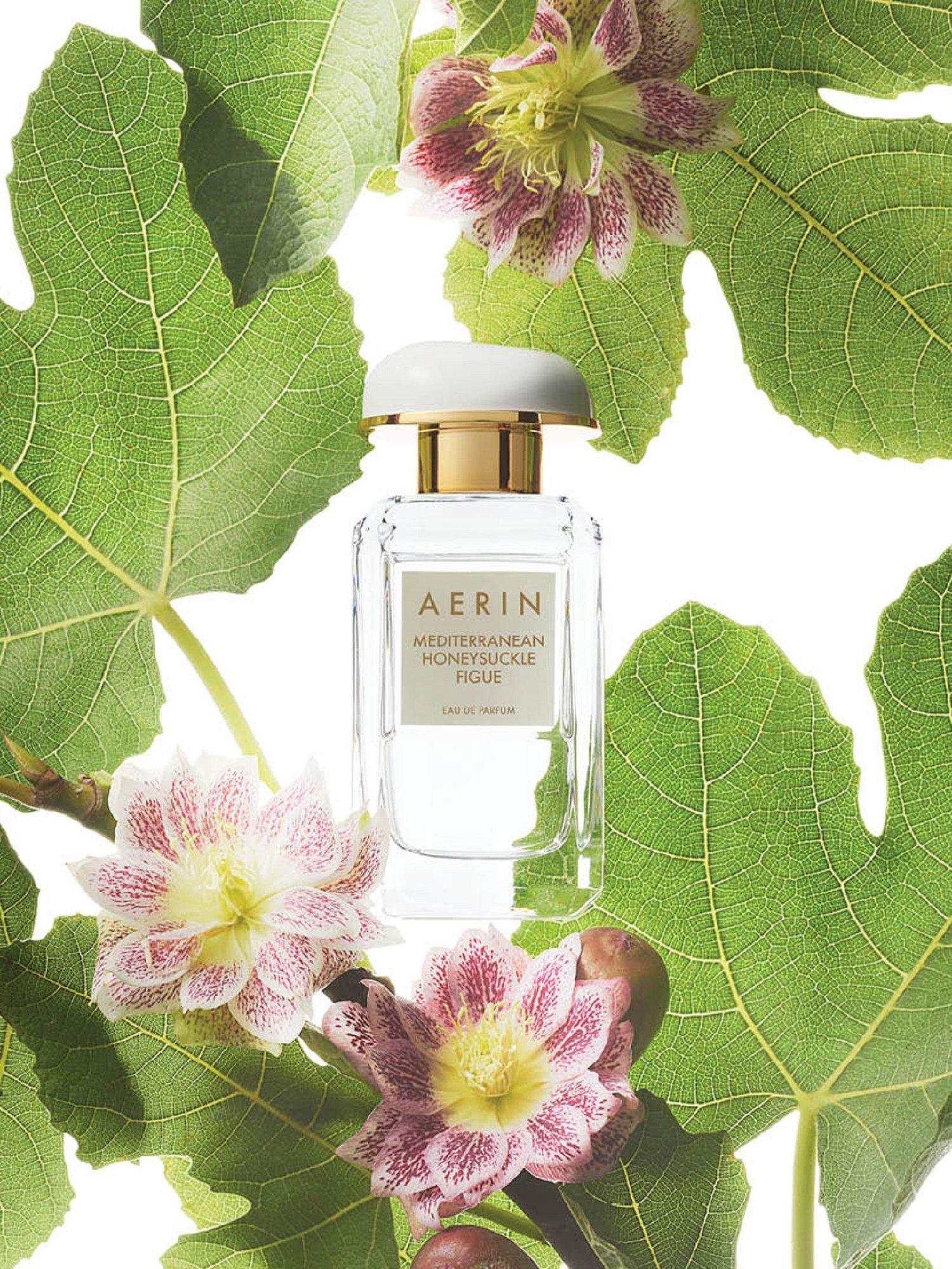 The fragrance collection: AERIN's Fragrance Collection is a wardrobe of distinctive perfumes inspired by Aerin's own travels, experiences and memories. Mediterranean Honeysuckle Figue is a fruity solar fragrance inspired by the warmth of a leisurely summer day.