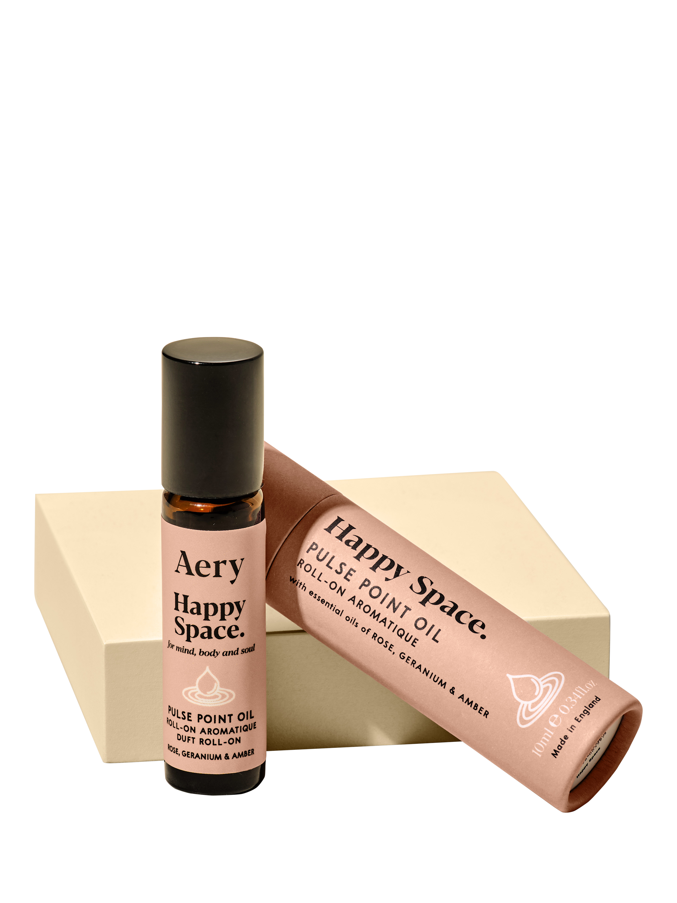 Pocket-sized positivity. This Happy Space mood roller blends rose, geranium, and amber for an instant lift. Roll onto pulse points for a daily dose of calm—perfect for on-the-go moments of wellbeing and balance.