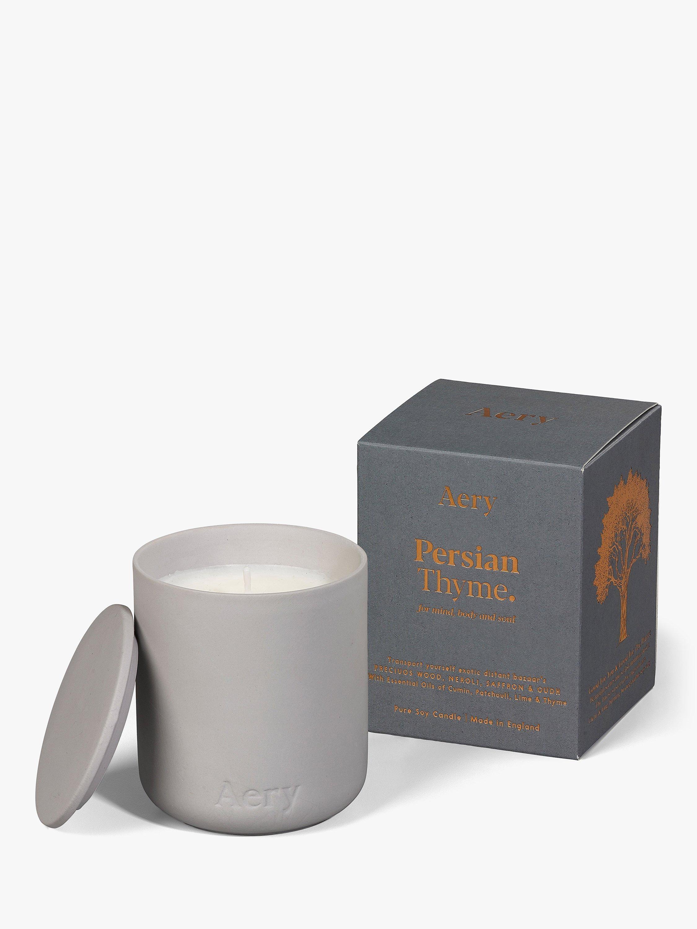 Made using soy wax, the Aery Persian Thyme Scented Candle reveals the spicy scents of neroli and saffron layered with a base of luxurious oudh.