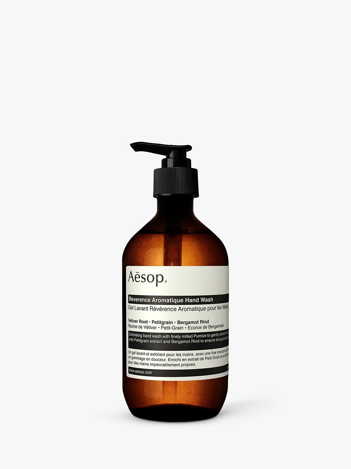 Reverence Aromatique Hand Wash contains a fine grade of milled Pumice, offering a mild and refreshing exfoliation, while the antiseptic properties of Bergamot Rind purify the skin.