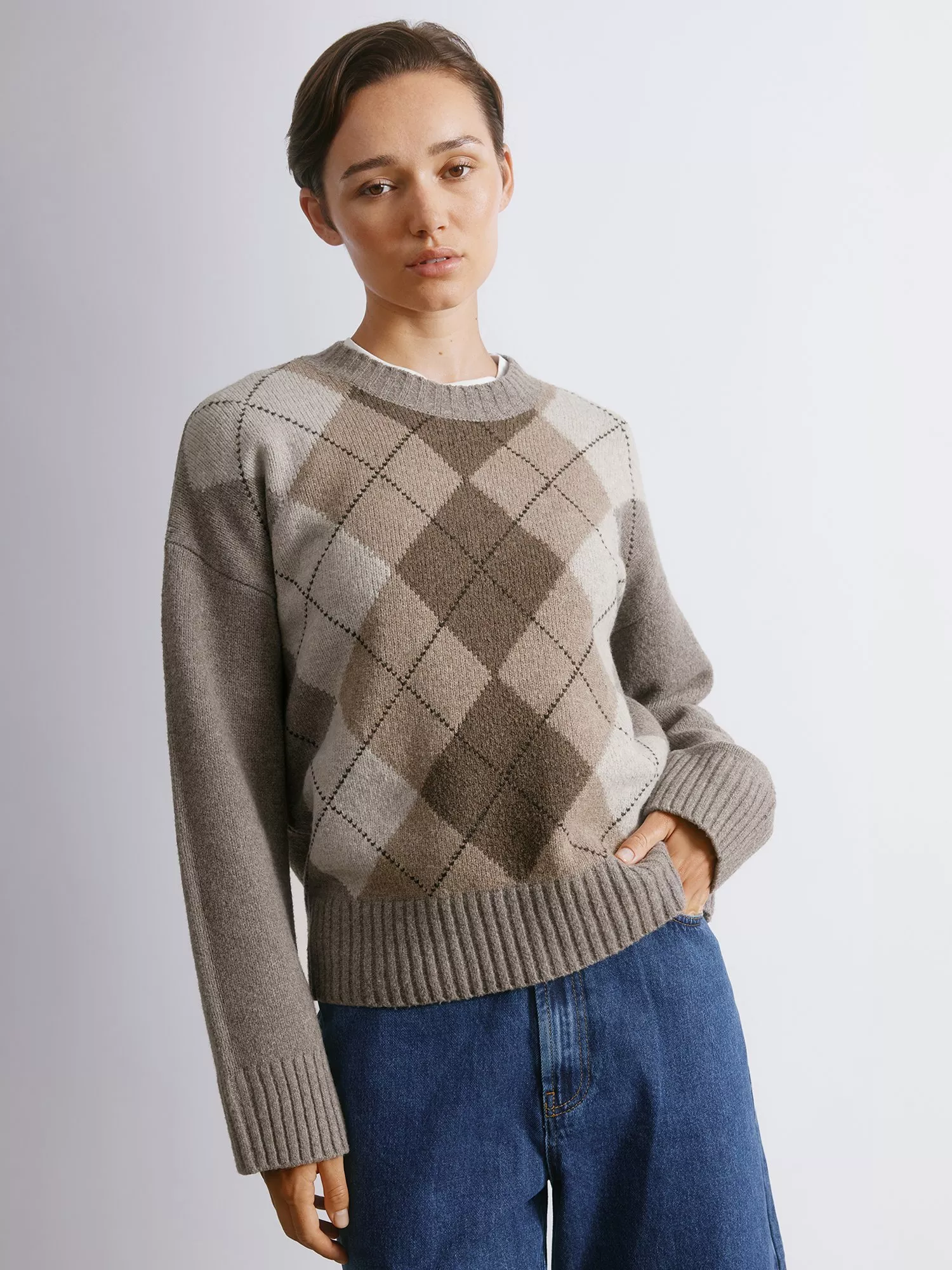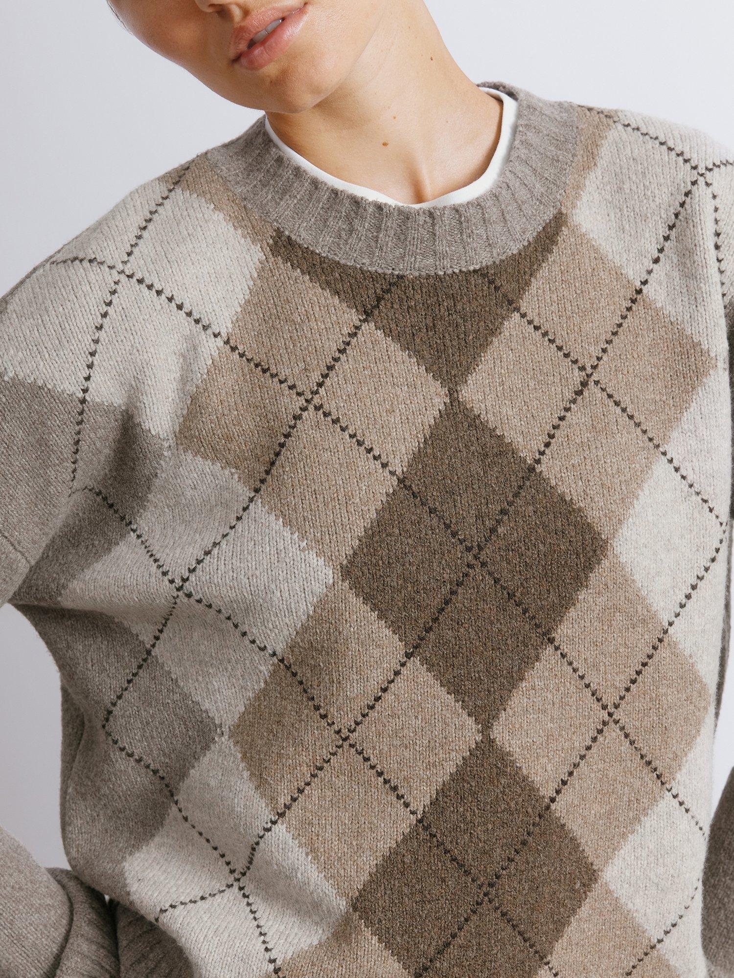 Indulge in ultimate comfort with our Argyle Jumper. The rich, ribbed design at the neck, hem, and cuffs exudes luxury while keeping you warm. Embrace sophistication with this premium addition to your wardrobe.