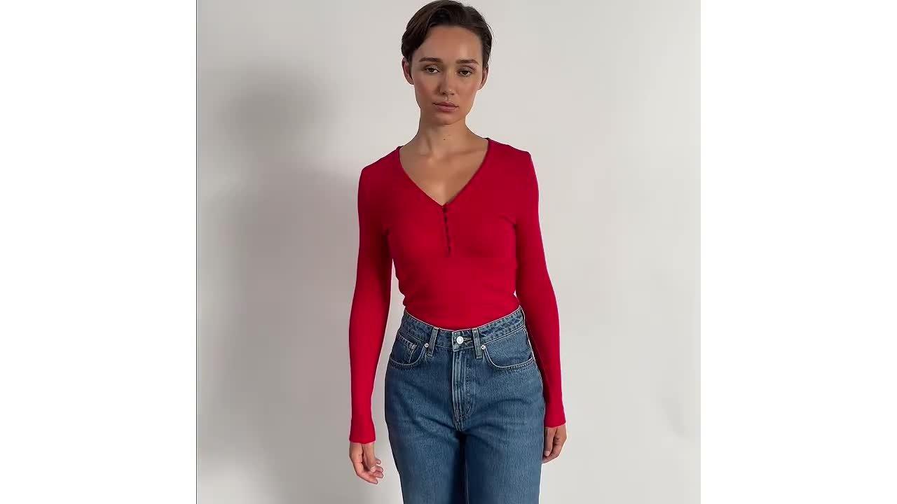 This ribbed button top is crafted from a cotton blend, featuring a slim fit, a flattering V-neckline, and matching tonal buttons for a polished look.
