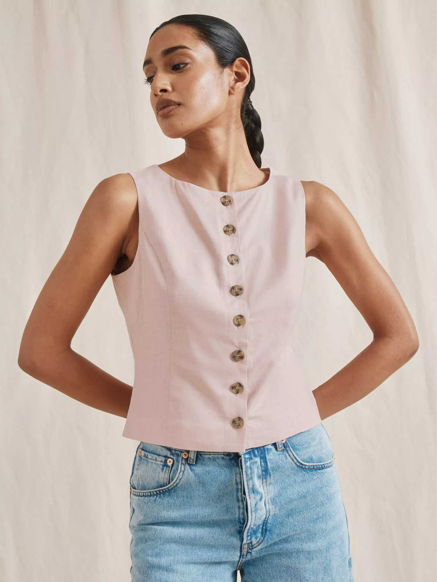 This chic shell top is the ideal summer top. The button closure adds convenience and style to your wardrobe. This piece is fully lined for comfort and quality.
