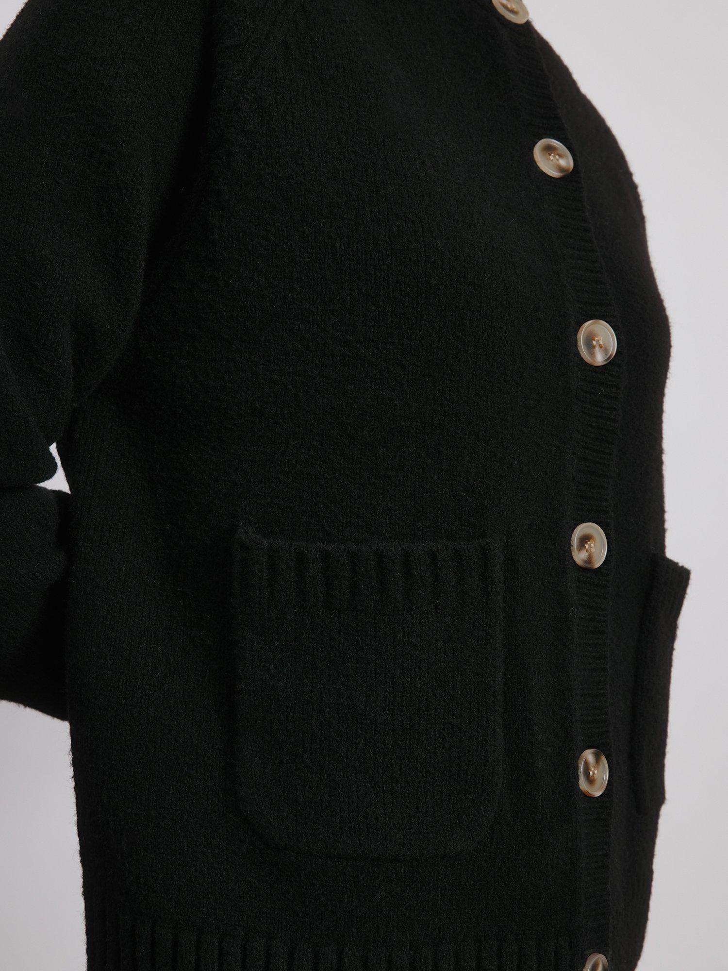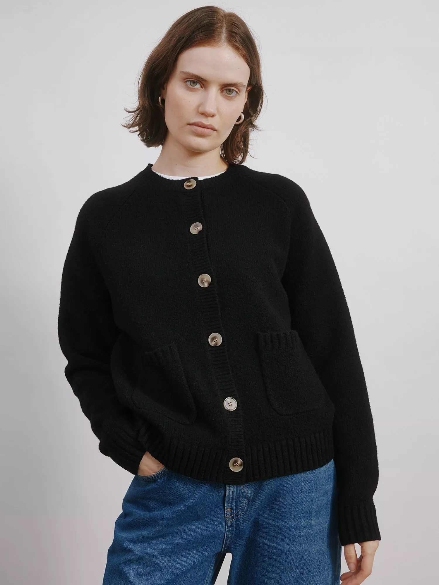 This cosy pocket crew cardigan is the perfect addition to your wardrobe, providing both warmth and comfort with its wool blend material. The deep rib cuffs and hem, paired with horn-effect buttons and patch pockets, create a timeless and elevated design. A must-have for any functional and versatile wardrobe.