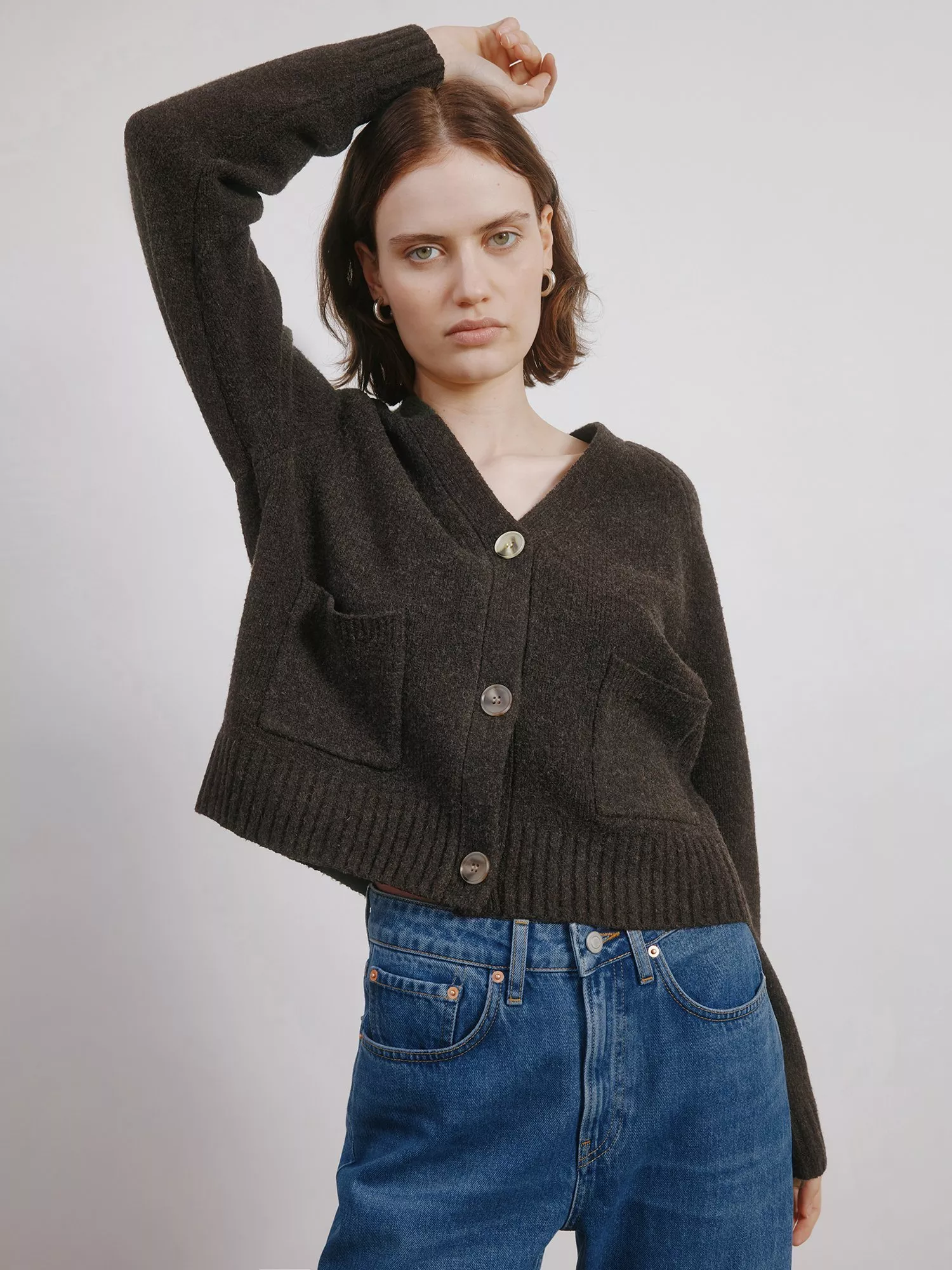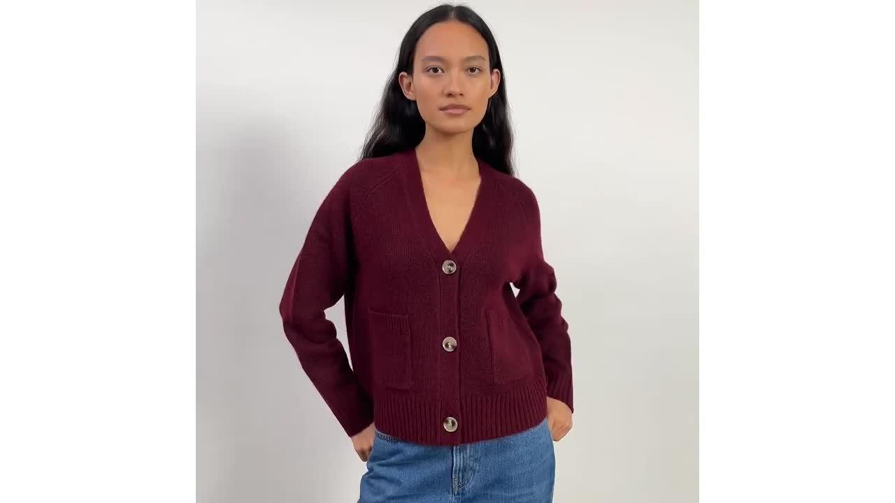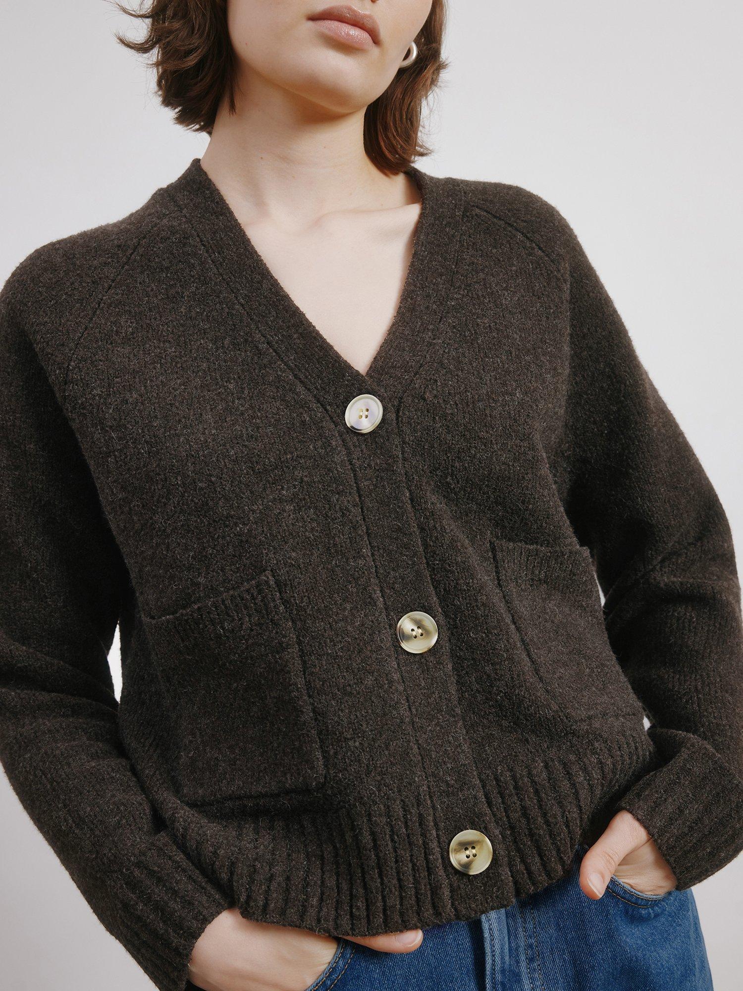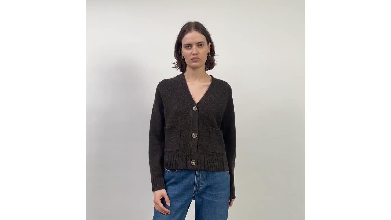 A cardigan in a relaxed fit. Designed with a V neck that can be worn on its own or layered. Featuring raglan sleeves and patch pockets with rib hem and cuff detailing.