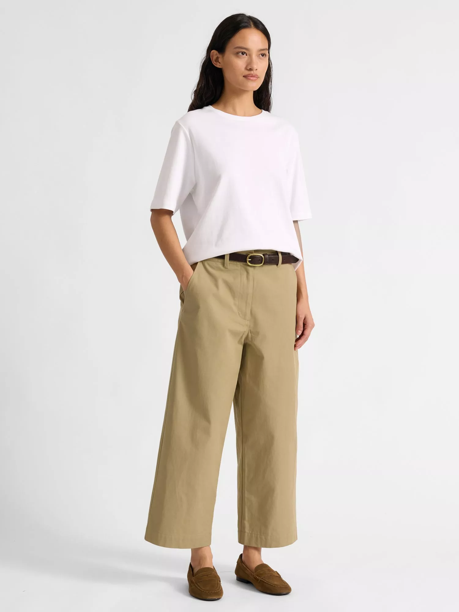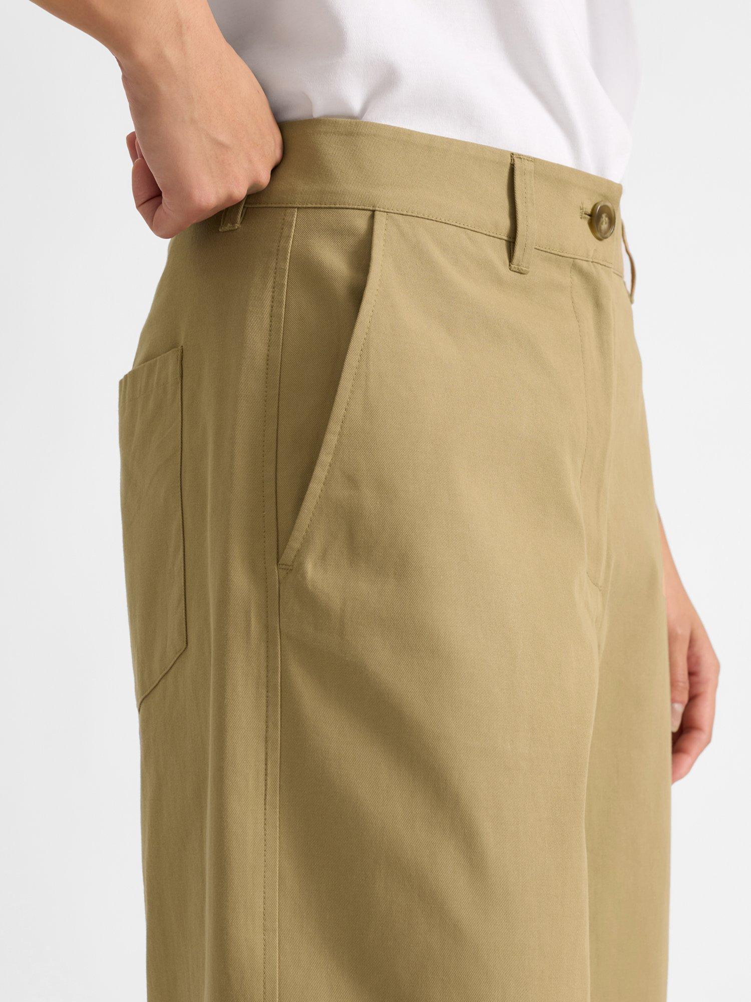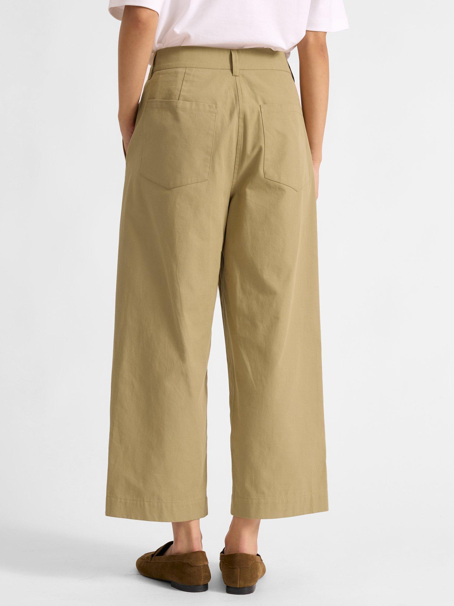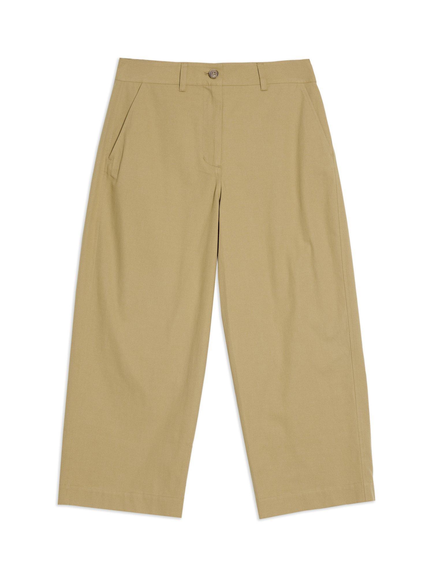 A pair of flared barrel-leg chinos by Albaray with an organic cotton base. They sit mid rise with a button and zip fastening and a cropped length.