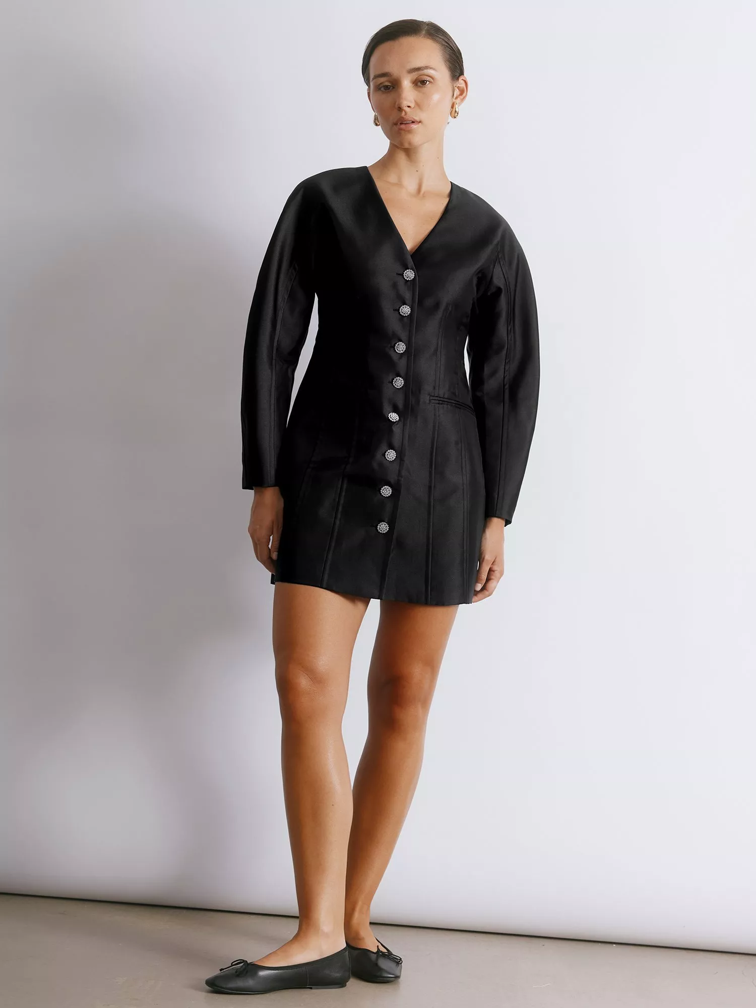 Embodying minimalism with maximum impact, this dress is a contemporary wardrobe addition. Constructed from a crisp taffeta, the fitted silhouette is defined by the voluminous cocoon sleeves and adorned with crystal flower buttons.