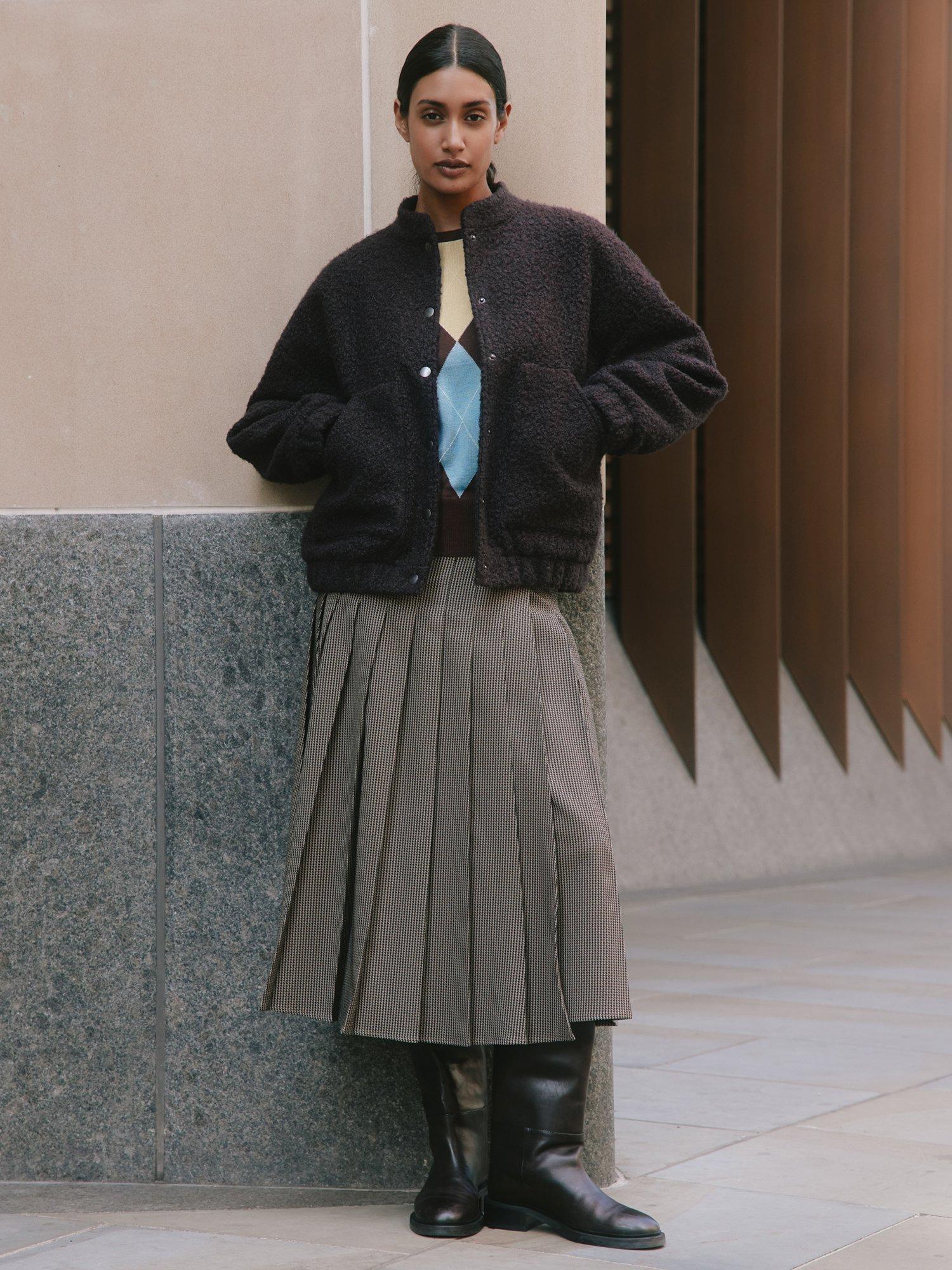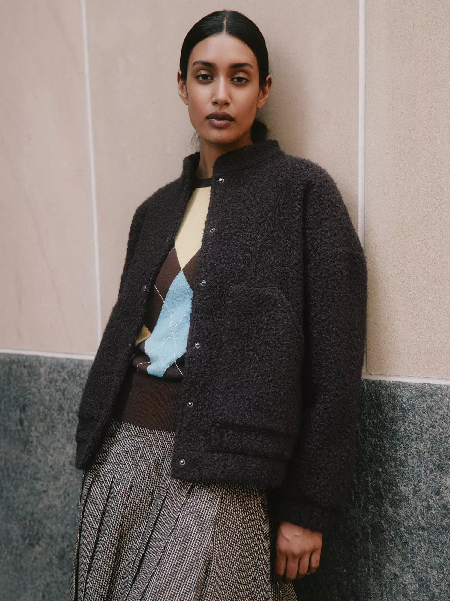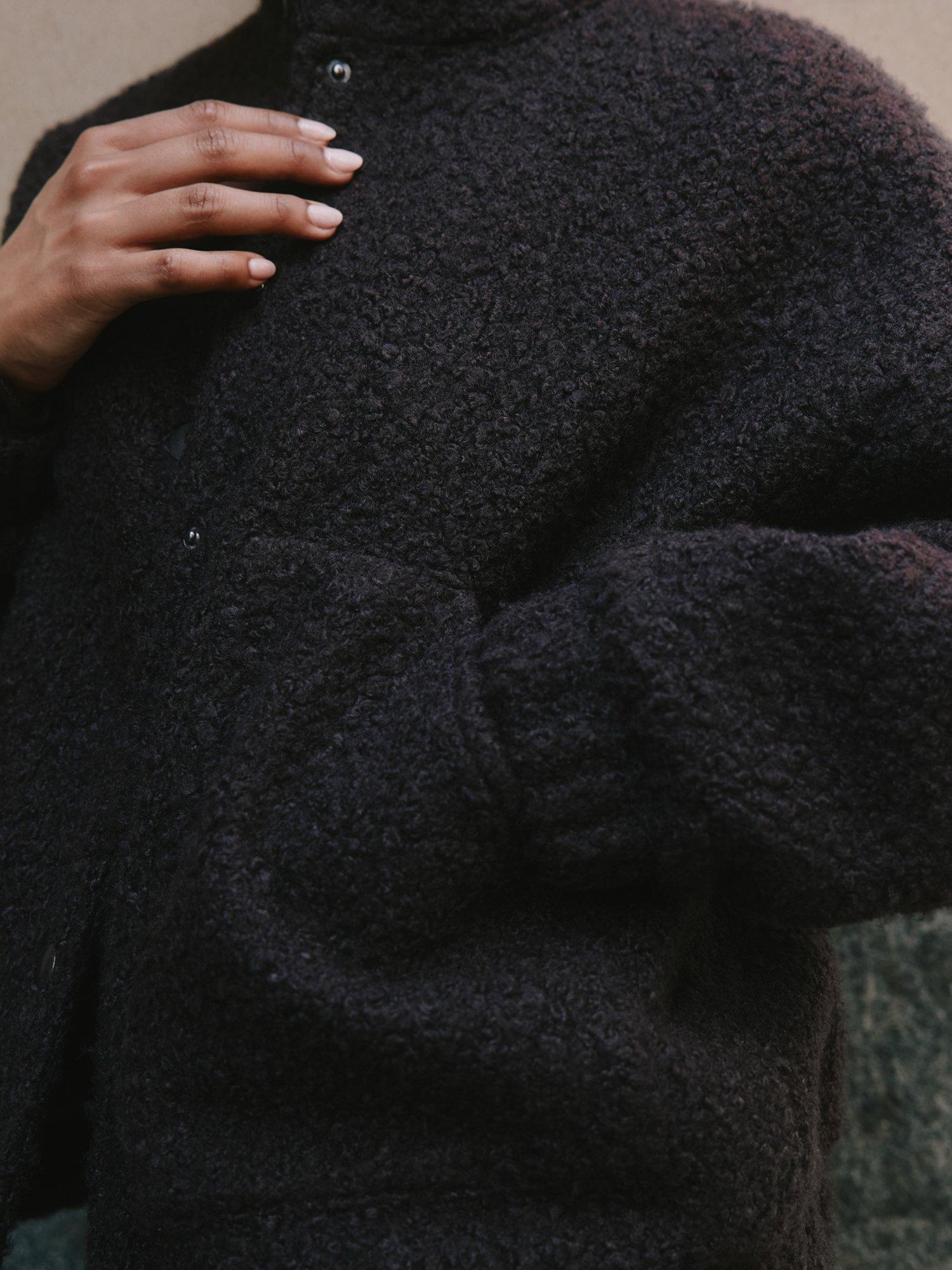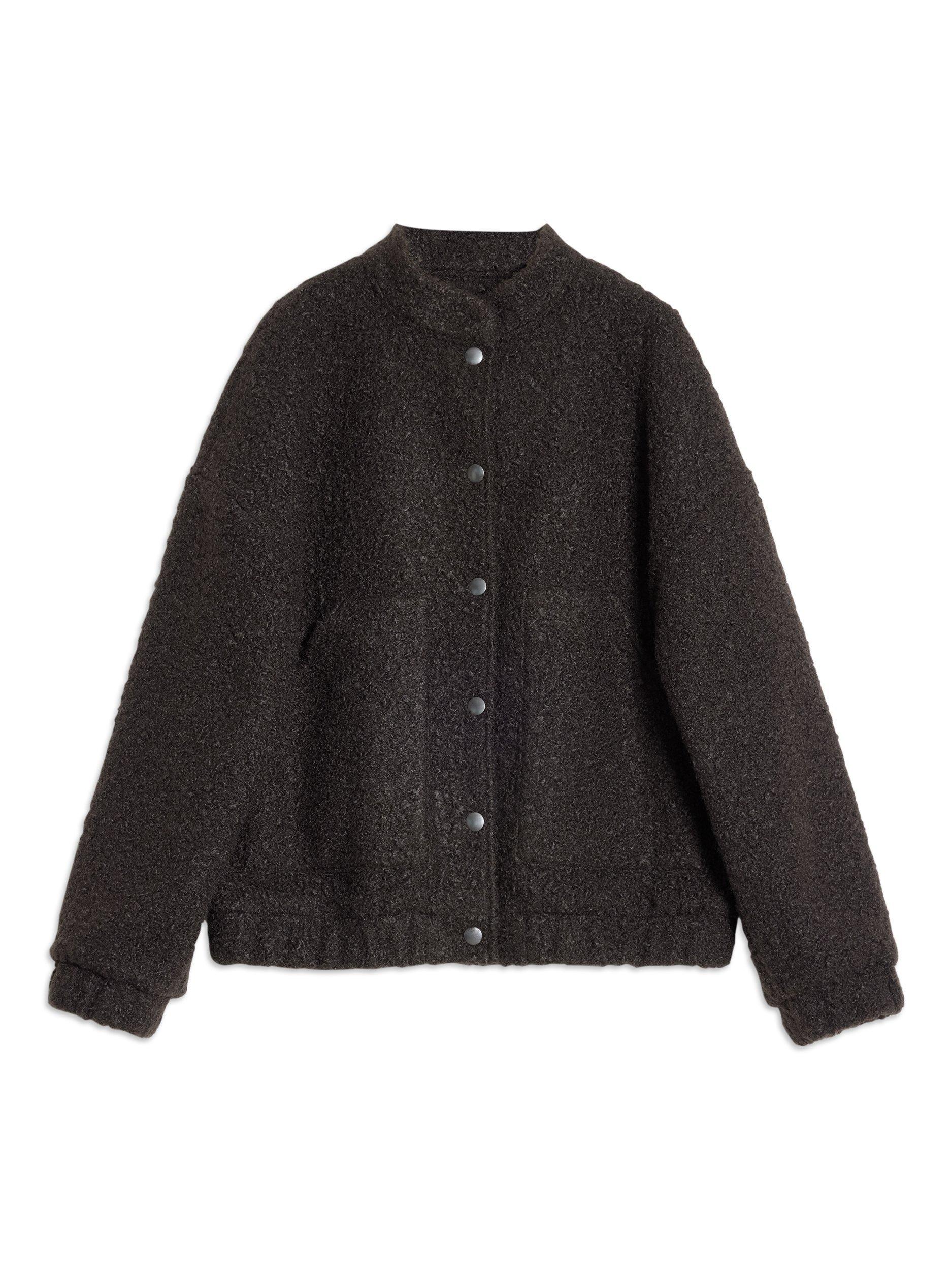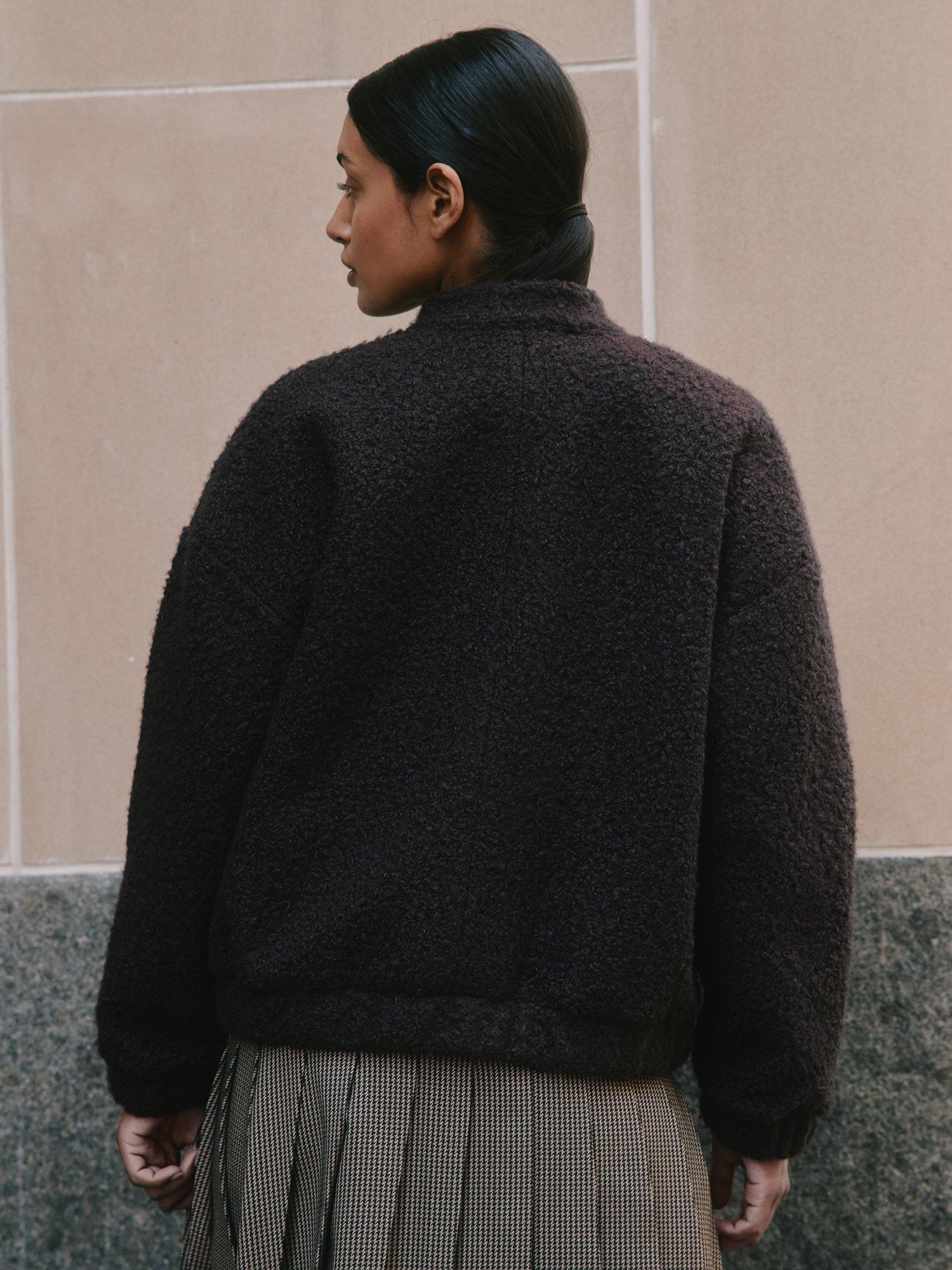 Stay stylish and warm with the Curly Bomber Jacket. This jacket features a convenient funnel neck, easy zip closure, and practical jet pockets to add a modern touch to any outfit. Don't compromise on style or functionality; this jacket has it all.