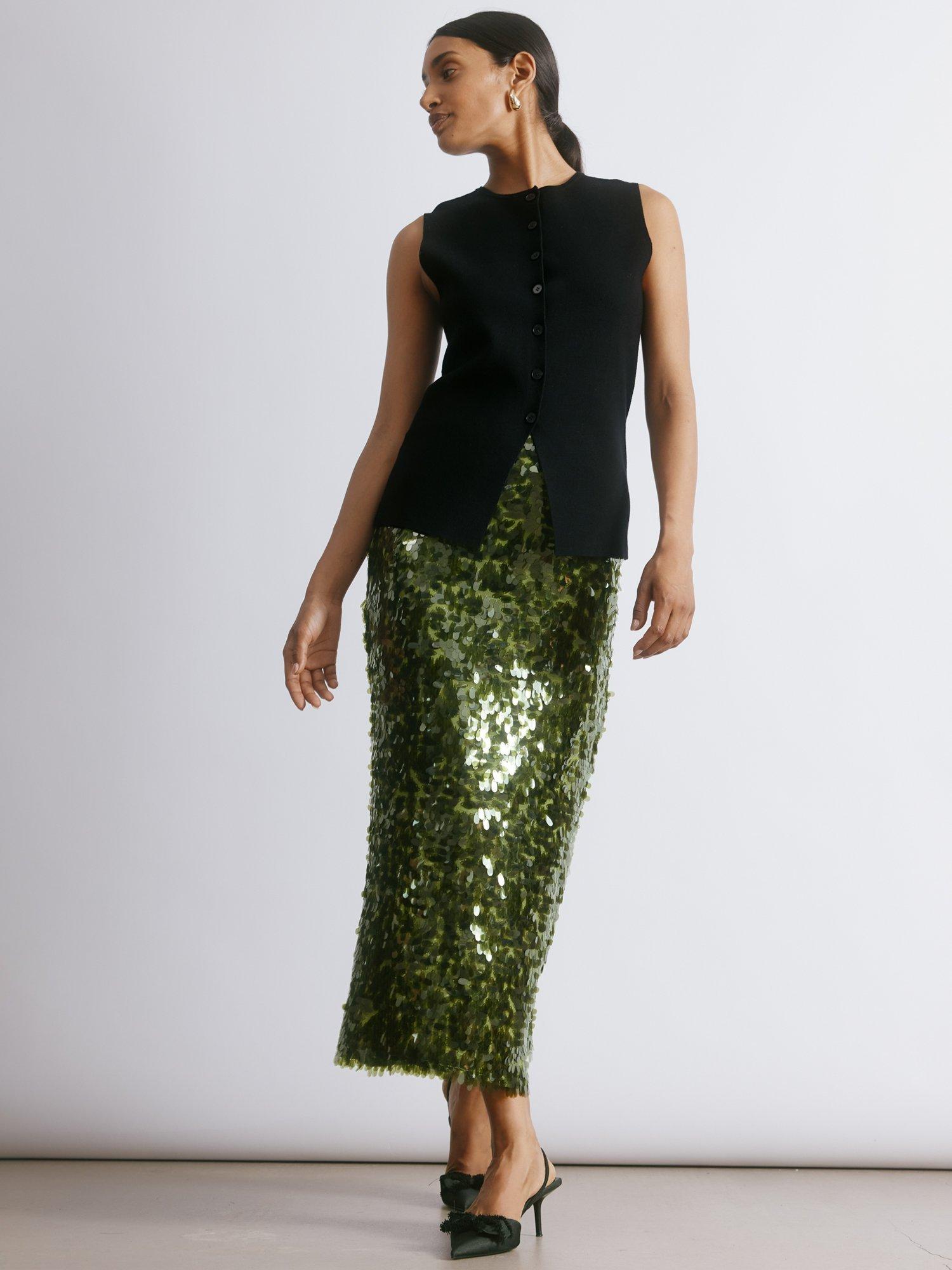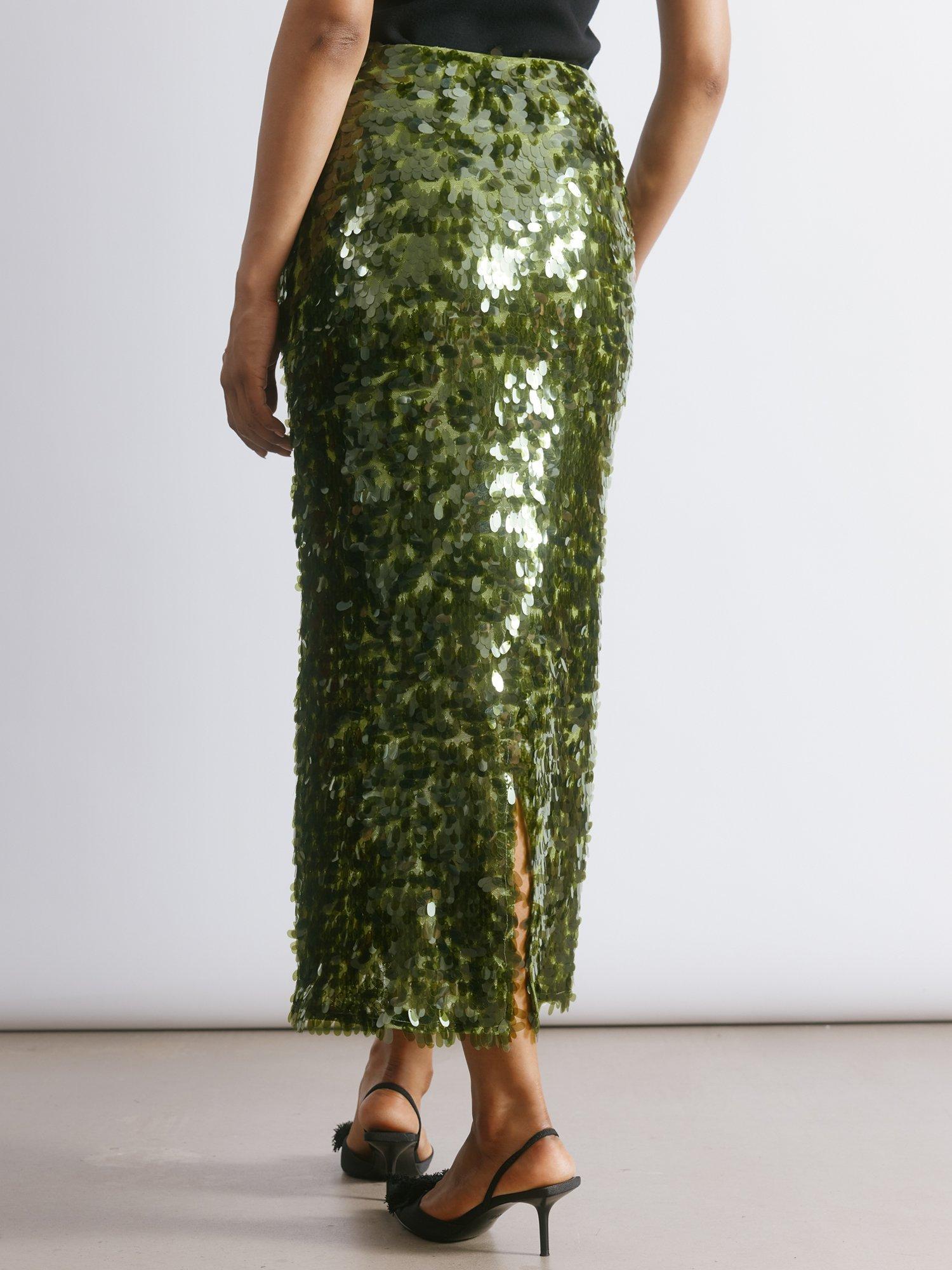 Midi by design - a skirt by Albaray. Carved to a straight silhouette, it's designed with all-over sequin embellishment. Secured by a zip closure.