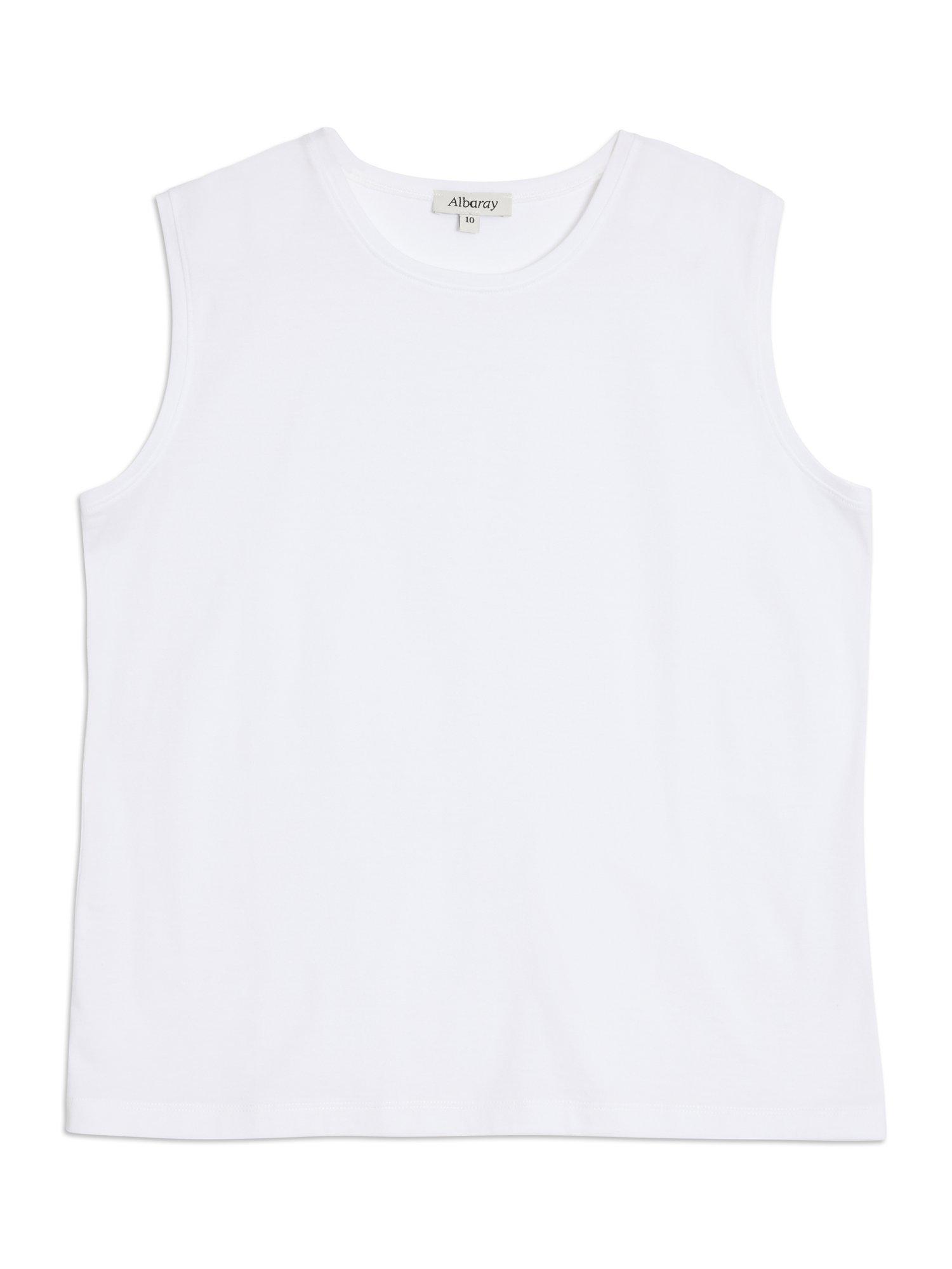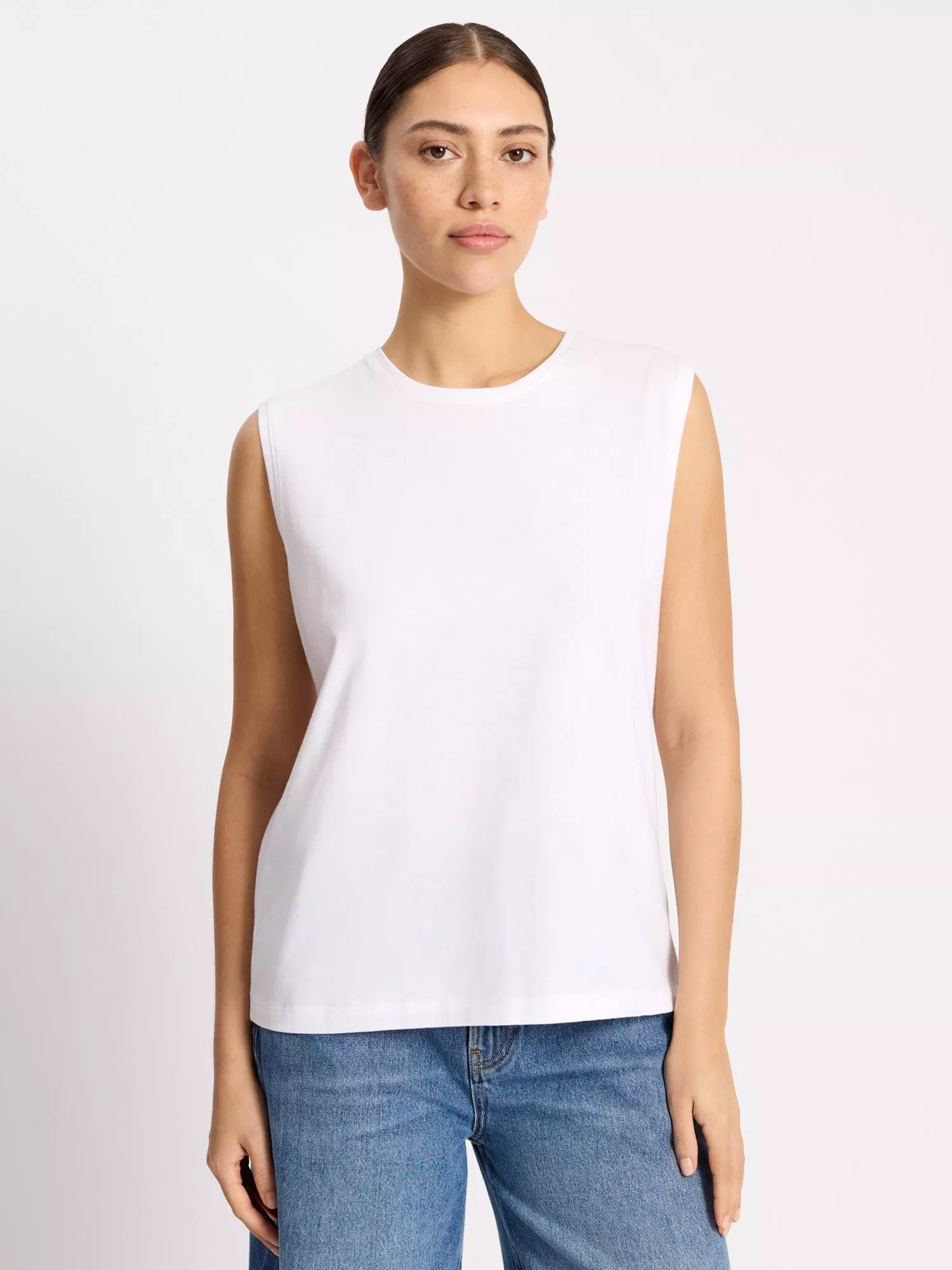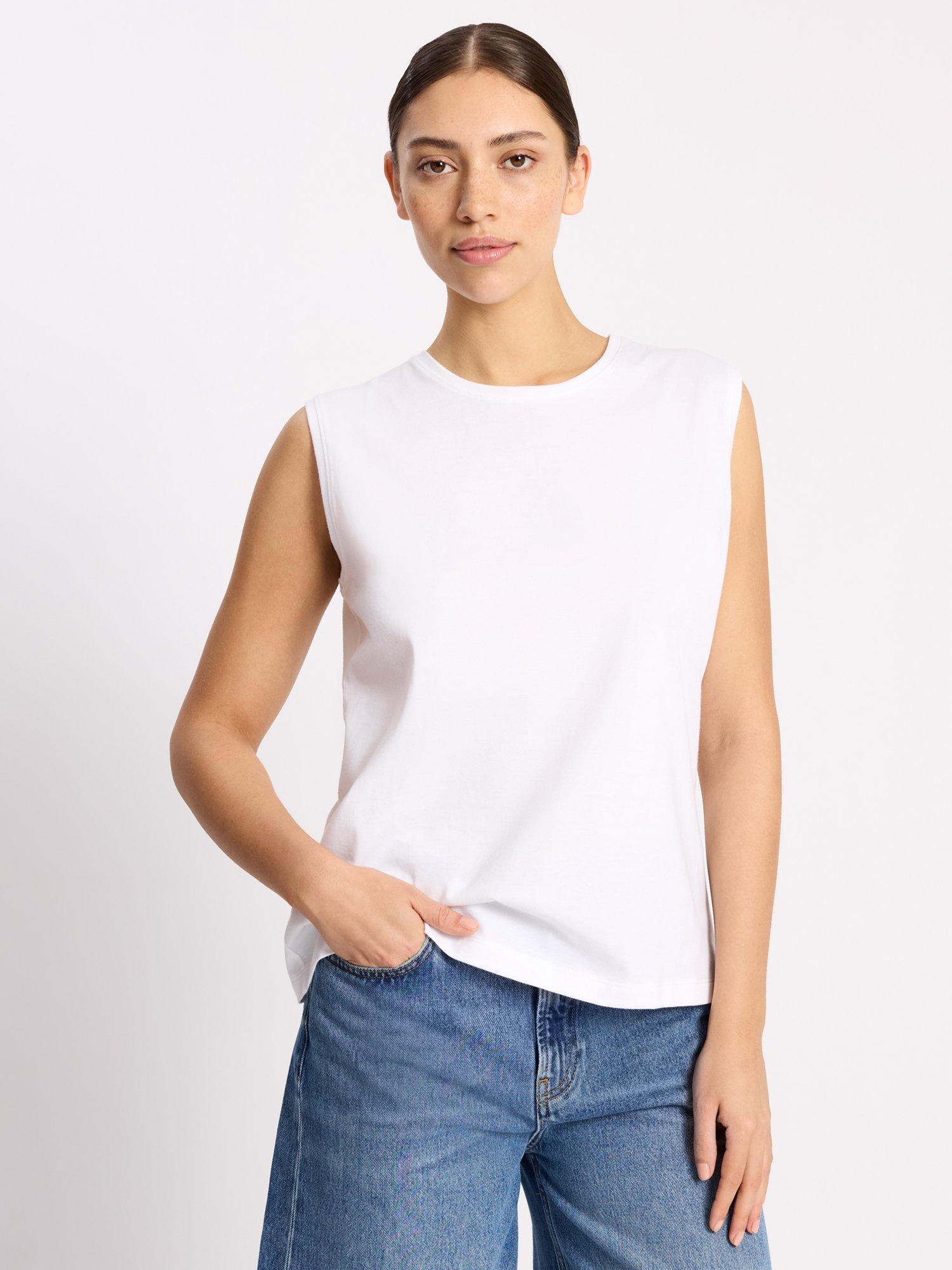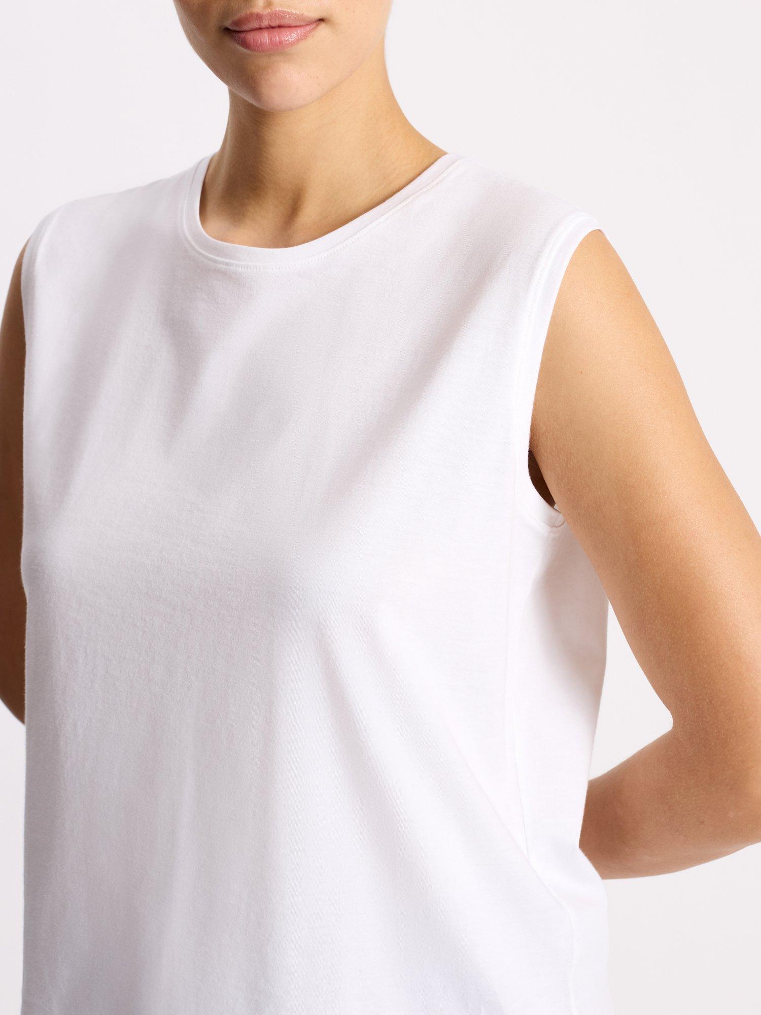 A sleeveless tank top designed with a slightly extended shoulder. Crafted from the softest, cotton, it is a timeless wardrobe staple.