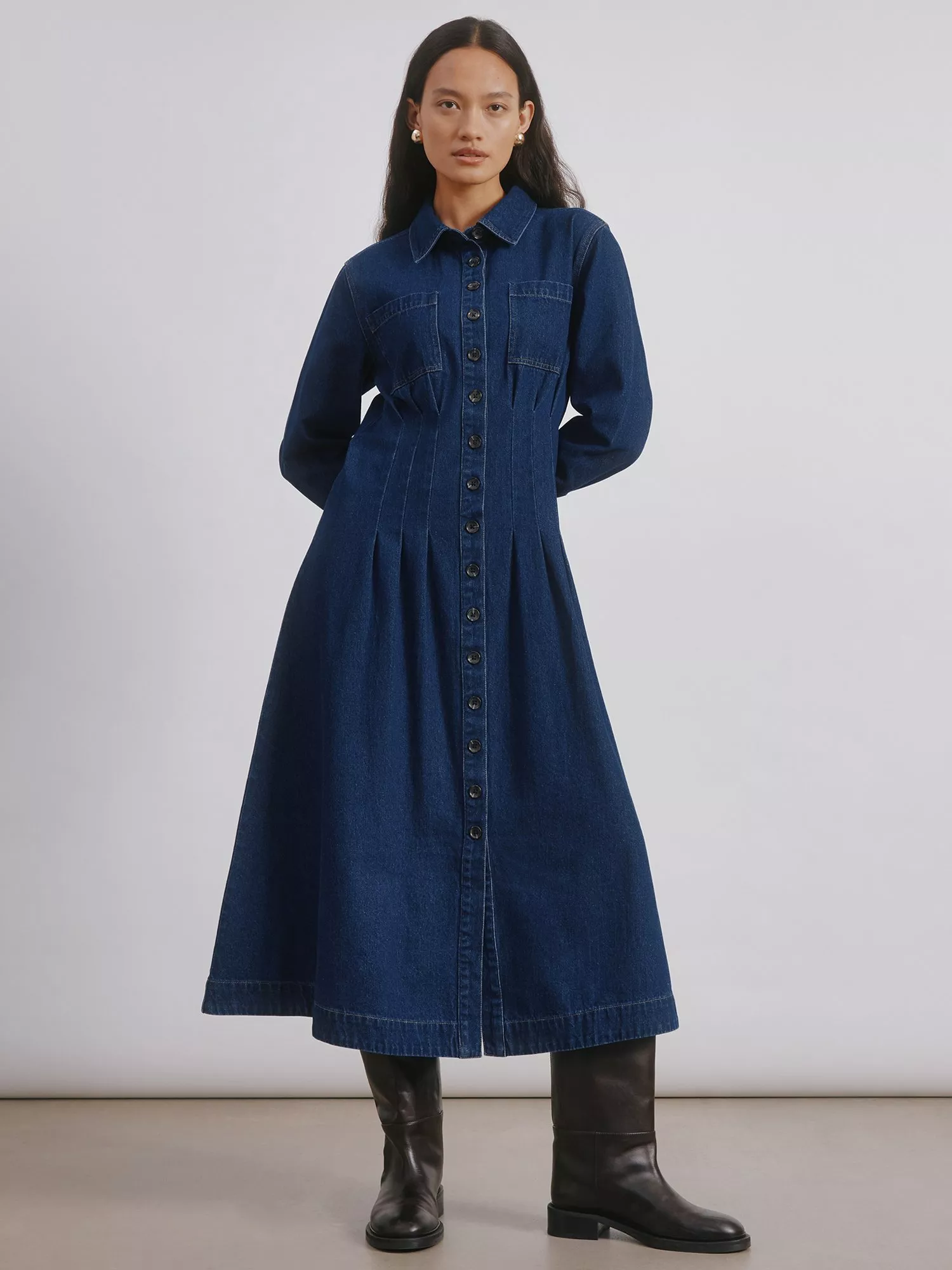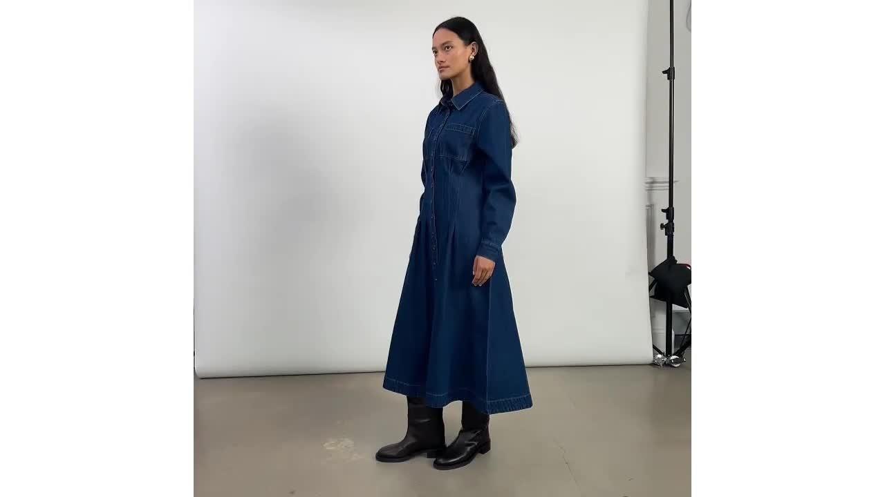 This stylish Denim Fitted Midi Dress offers a figure-enhancing design with its flattering cinched waistline. Complete with practical breast pockets and sophisticated horn-effect buttons, it combines comfort with timeless appeal for your everyday wardrobe.