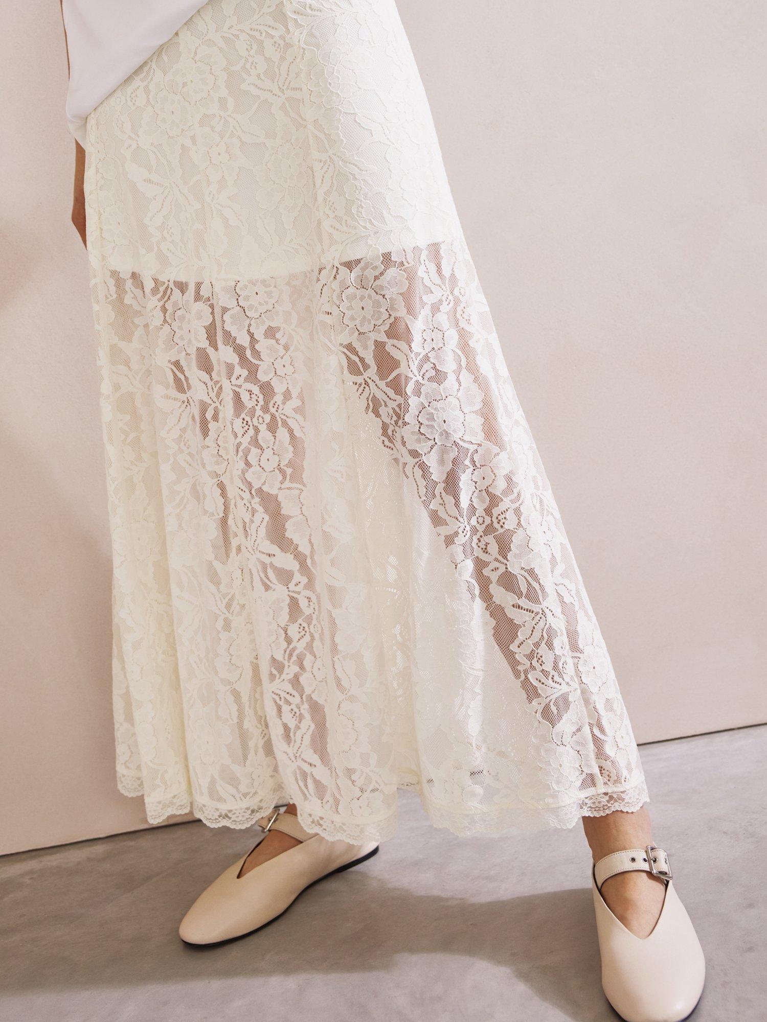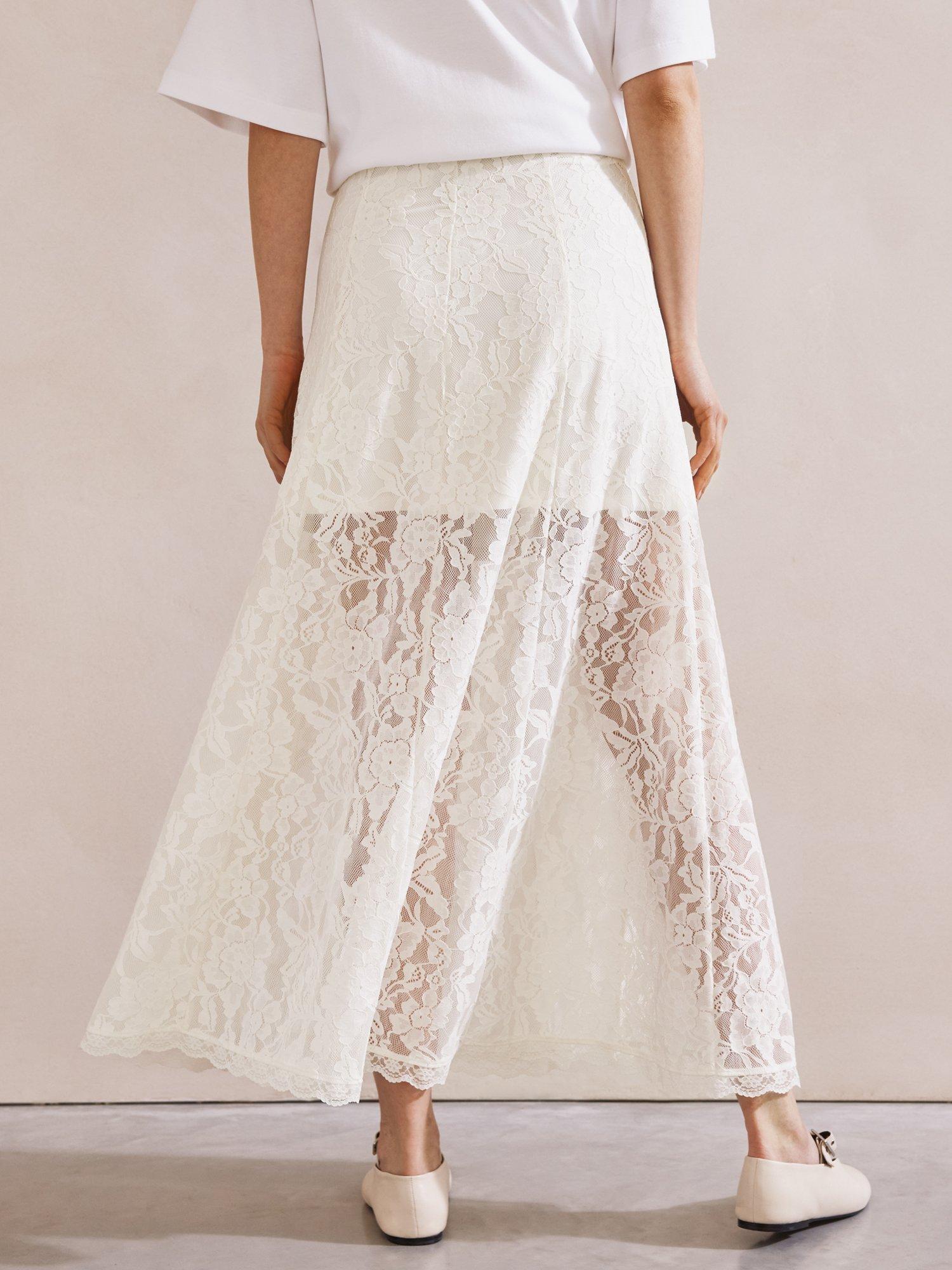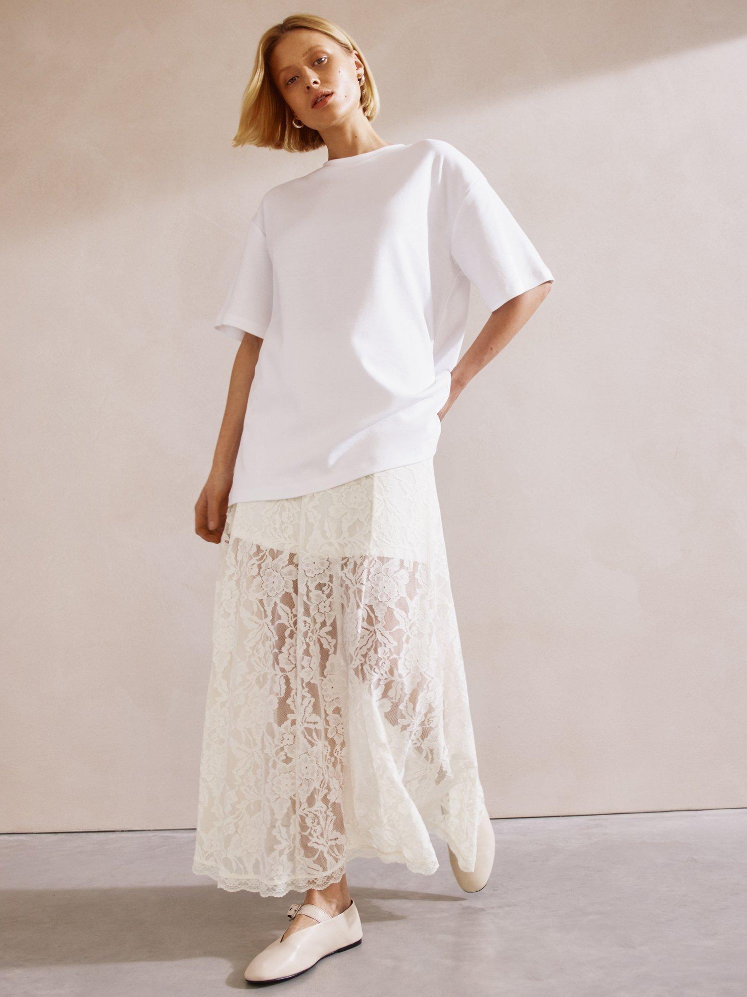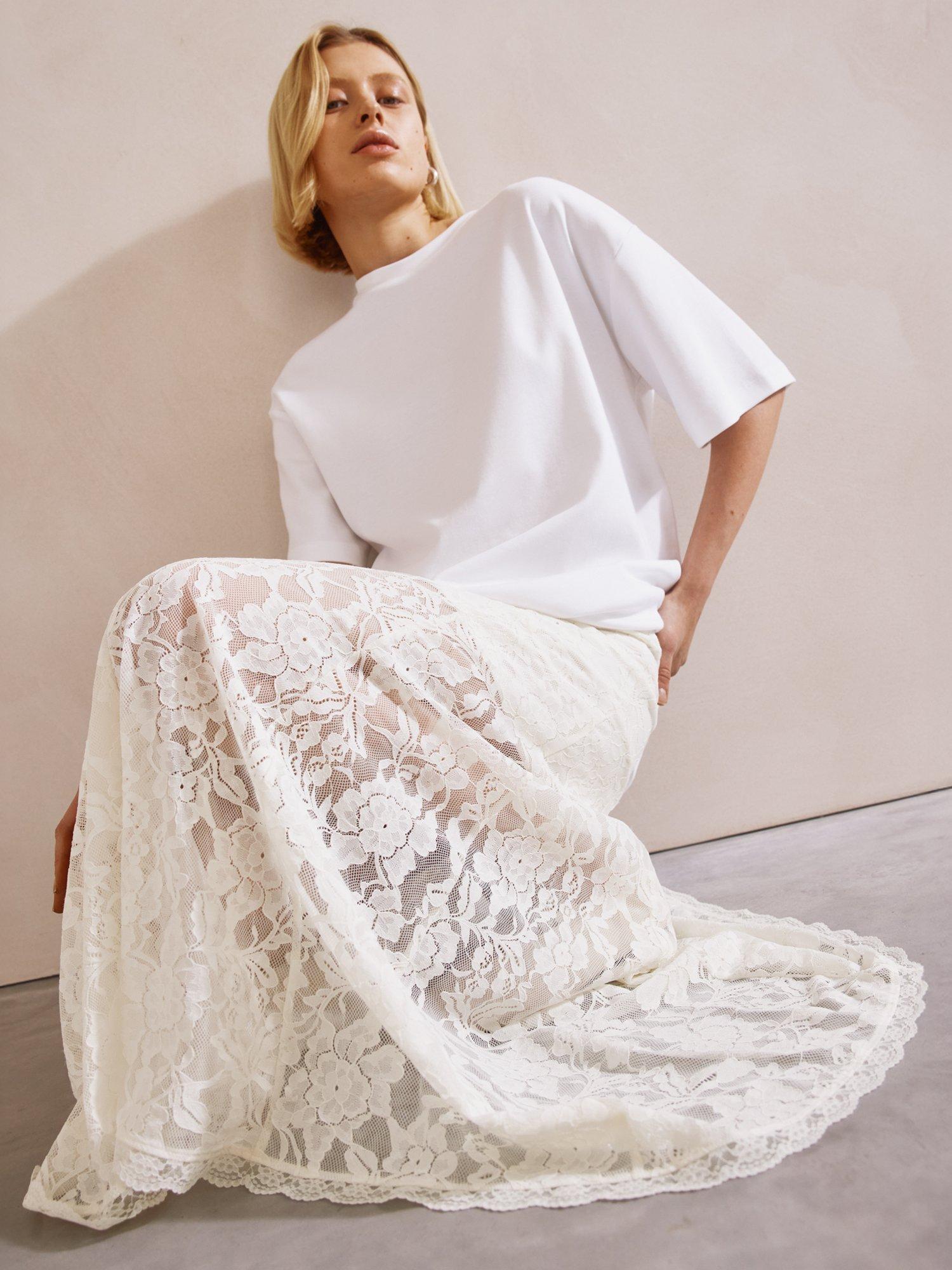 Shaped to an A-line profile, this skirt from Albaray features a full-length lace overlay on top of a mini lining. An easy addition to your warm-weather wardrobe, try pairing with a boxy fit tee.
