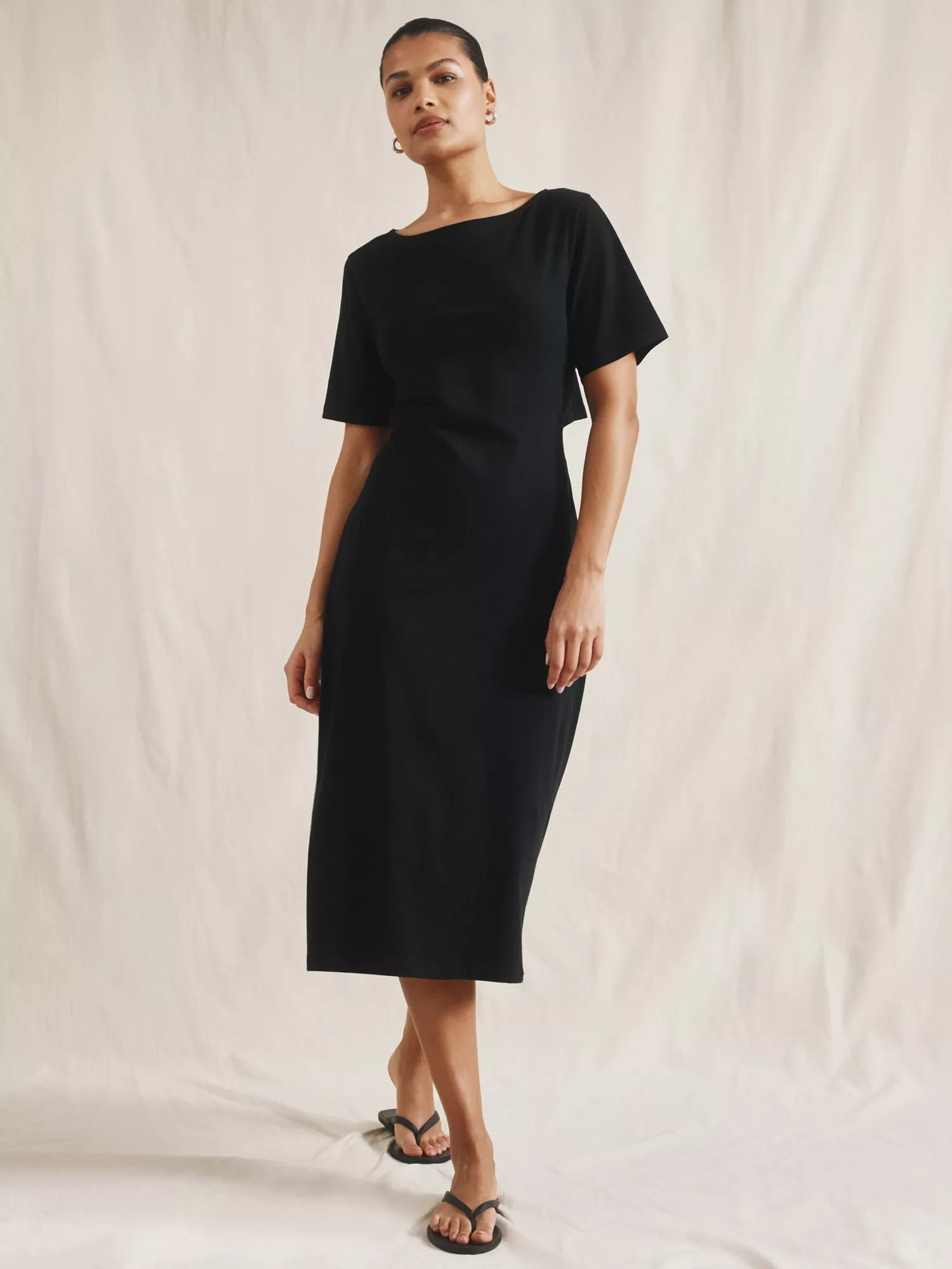 A jersey dress designed with an open back detail. Crafted from the softest Greek cotton, this sleeveless dress has an elegant slash neck and a soft elasticated waist. Wear with sandals or trainers for a relaxed everyday look or dress up with a heel for a night out.