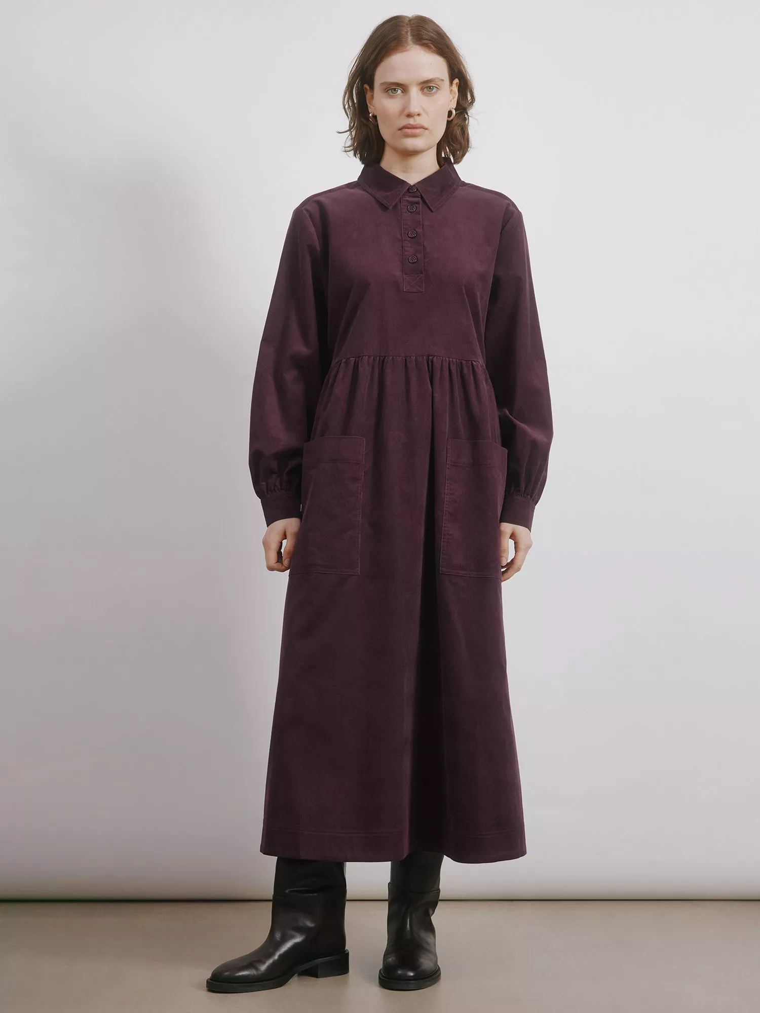 A long-sleeved midi dress crafted from the softest cord. Featuring a collar and button placket, flattering empire waist detail and front patch pockets.