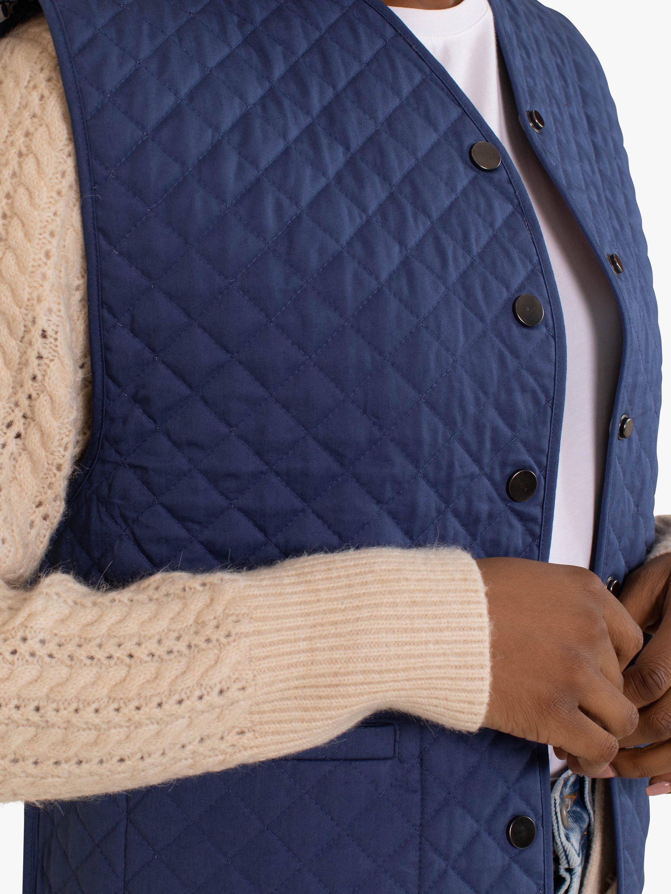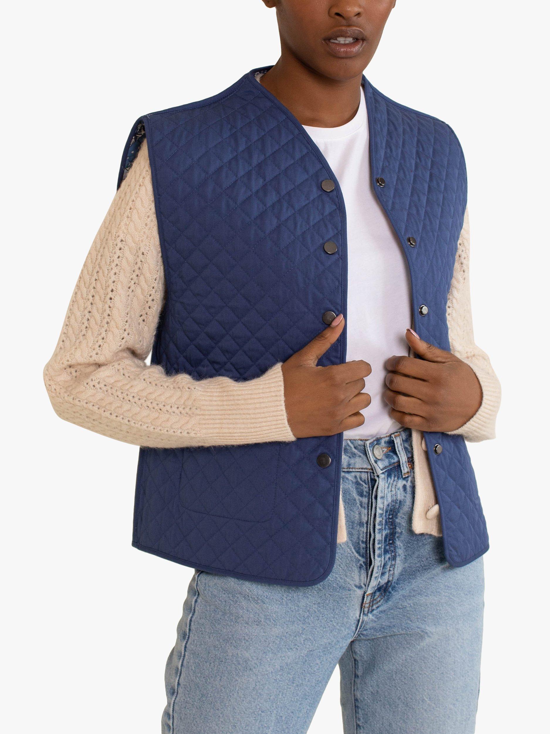 In a sleeveless silhouette that's great for layering, this reversible quilted gilet by Albaray sits at the hips for practical coverage.