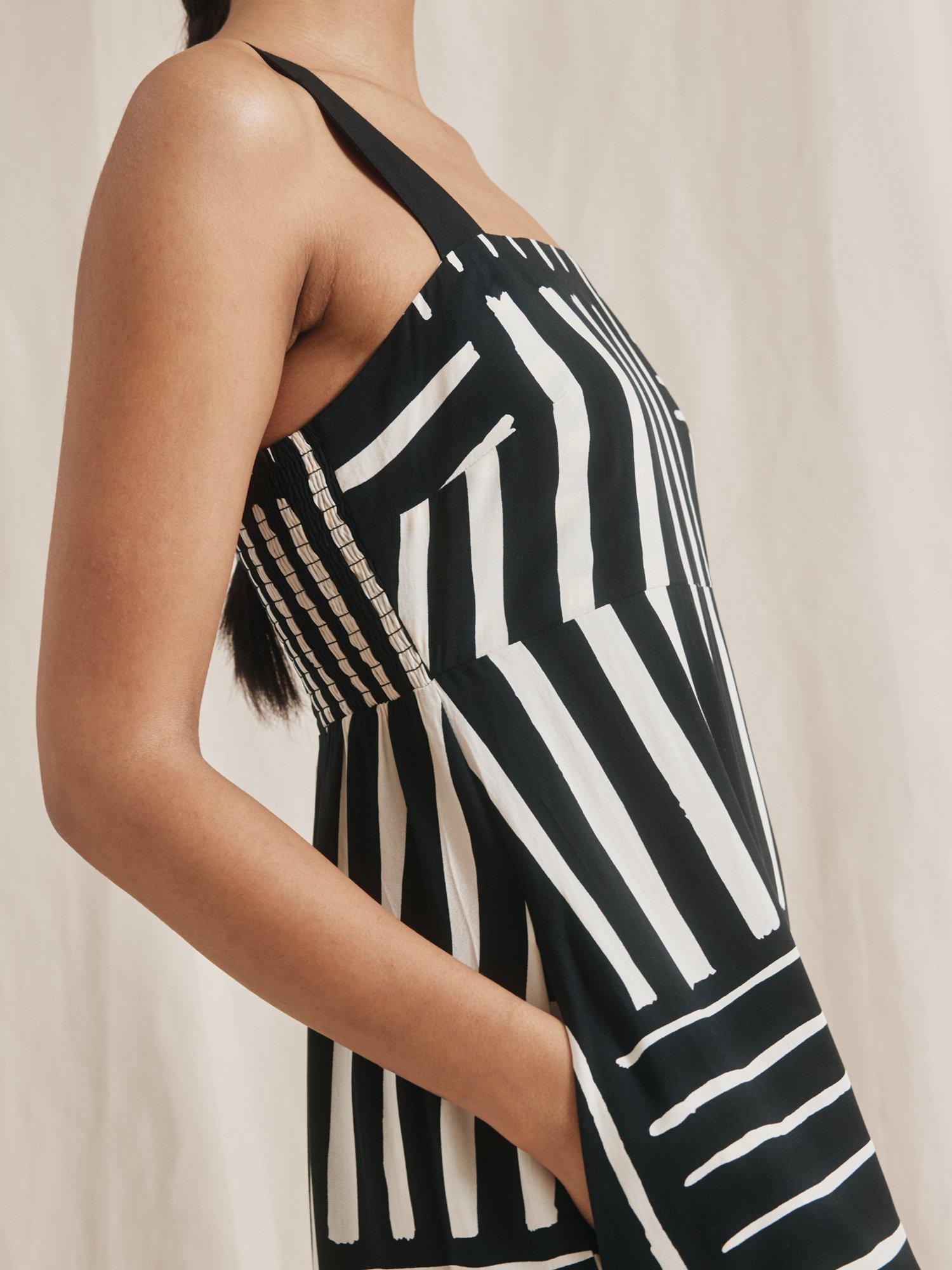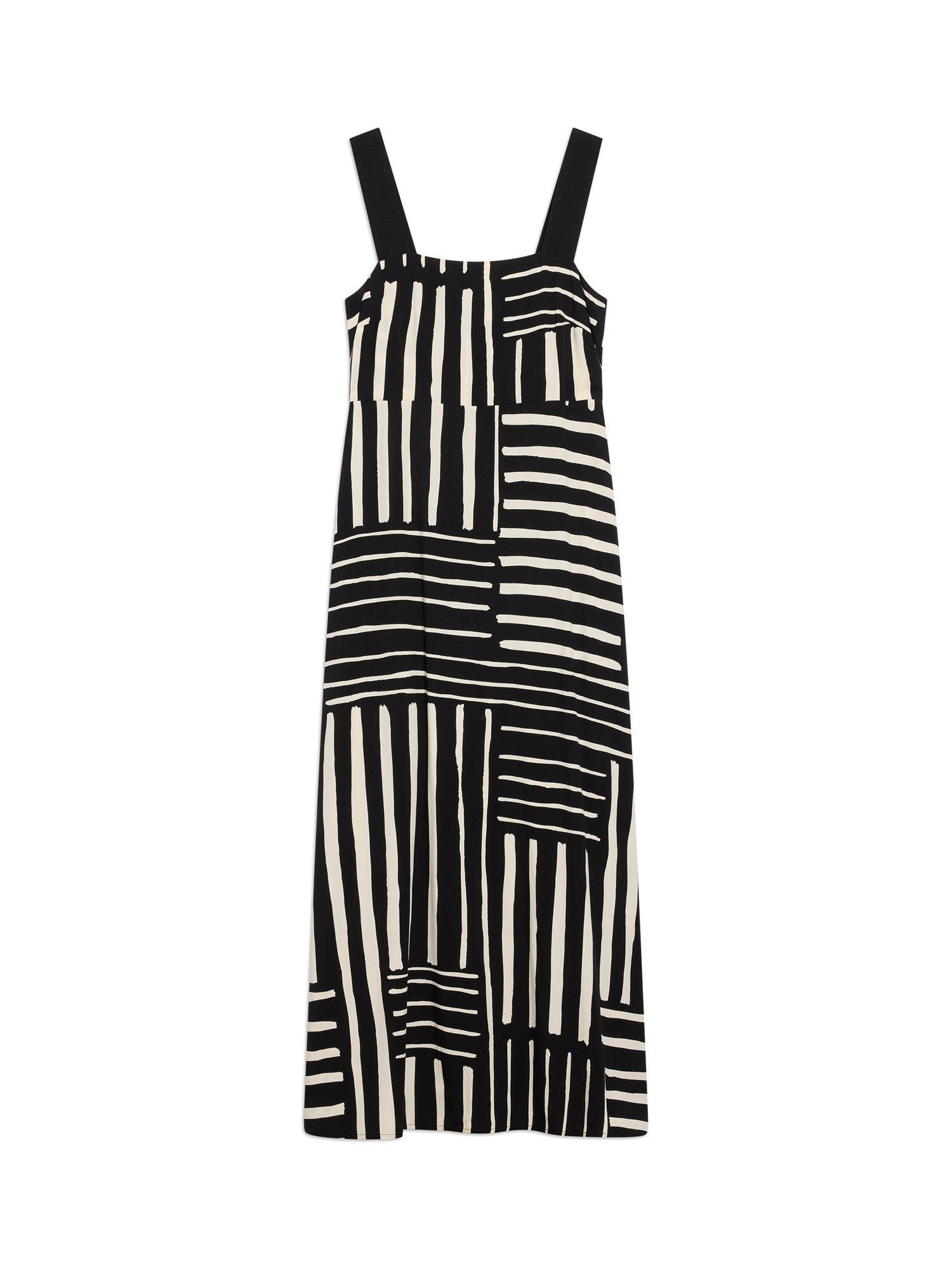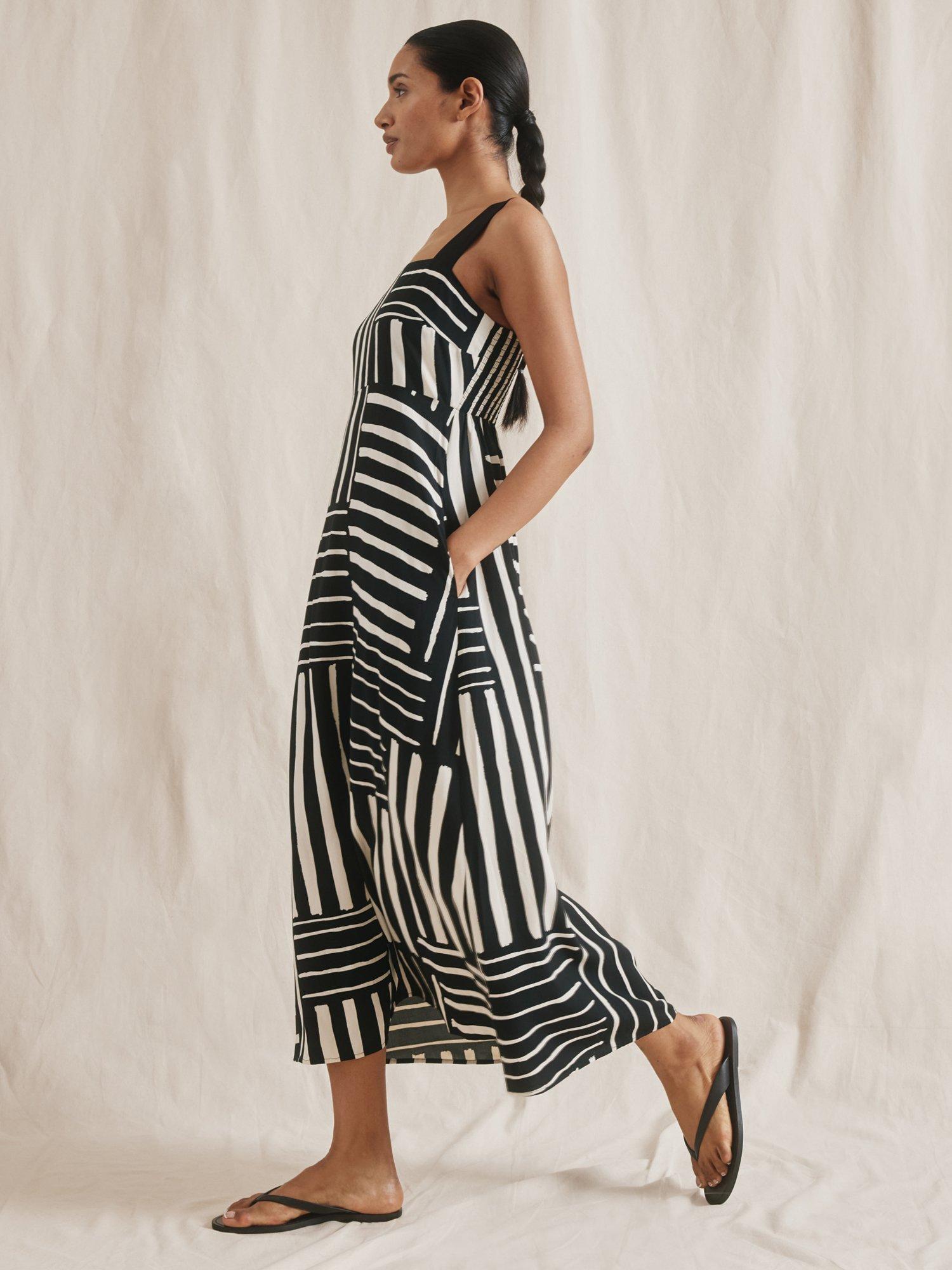This beautiful sundress features a patchwork stripe design, a square neckline, and wide straps that can be adjusted for the perfect fit. The shirred back ensures a comfortable and flattering look, while the soft A-line shape creates a simple yet elegant silhouette. Plus, it even has side pockets for added convenience.