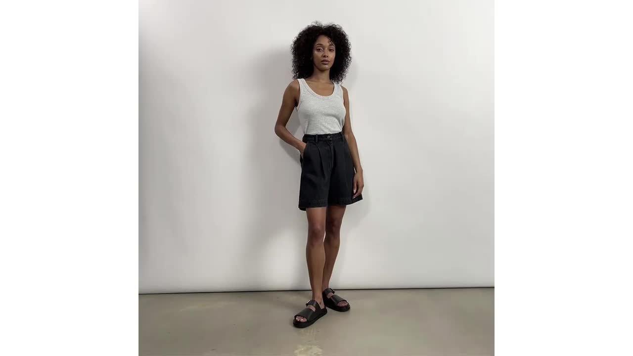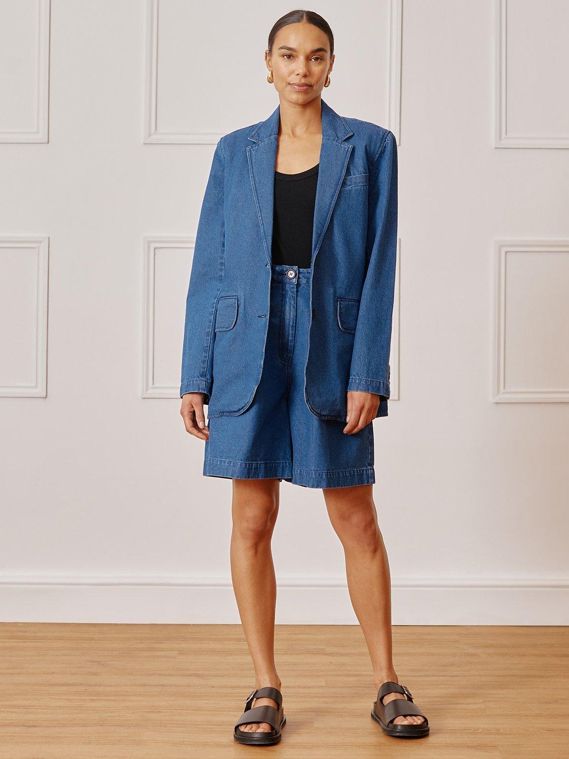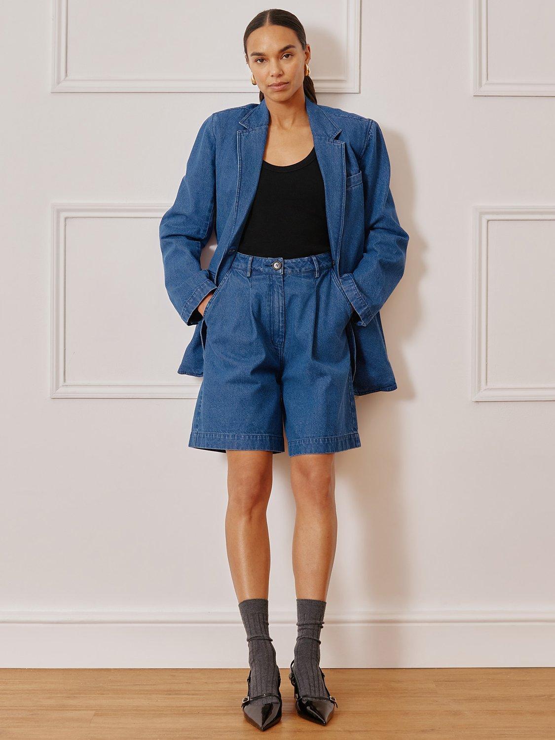 Designed in a longer leg length, these Bermuda denim shorts are a summer wardrobe must-have. With flattering pleats and functional pockets, they are a perfect blend of style and functionality.