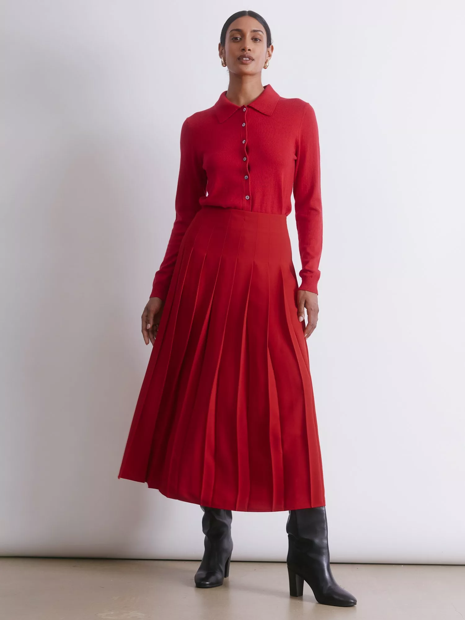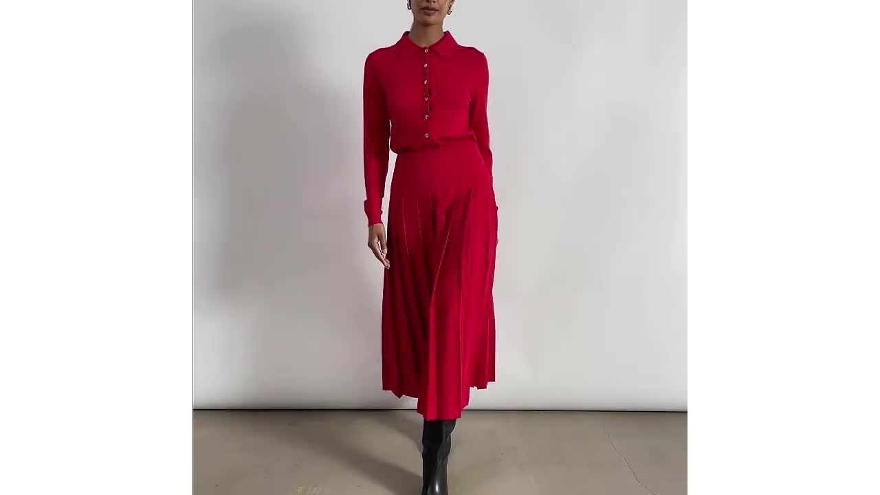 This midi skirt features a fitted waist and a flowing pleated design that flatters your figure.